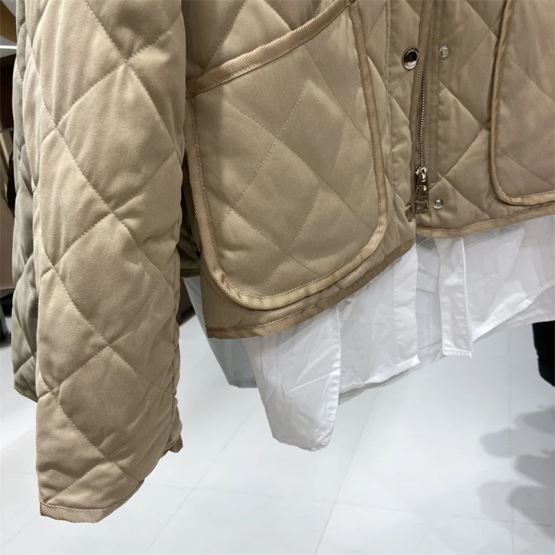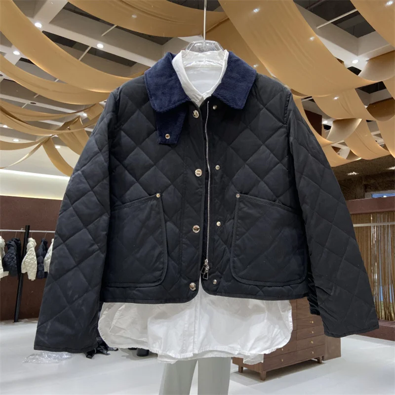 2025 Fashion Women Down Jacket Diamond Grid 90% White Duck Down Warm Short Coat Casual Loose Winter Parkas Black Khaki