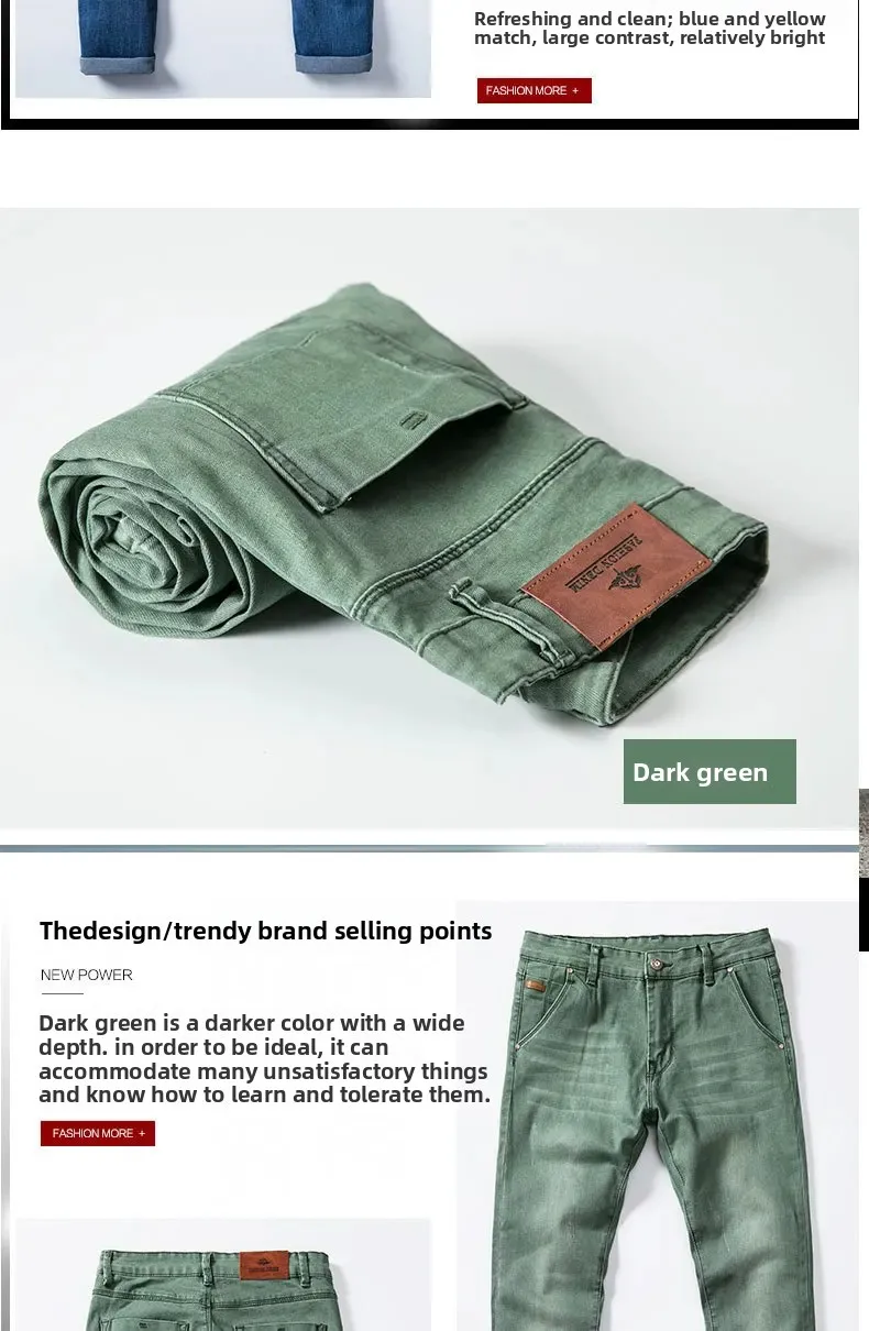 Colorful Elastic Slim Fit Men's Jeans Fashionable Casual Trousers Korean Style Long Pants for Men Summer New Arrival