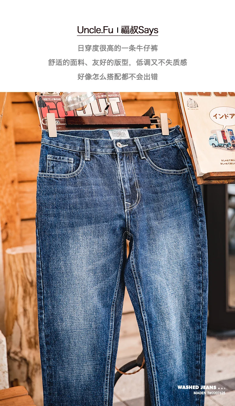Maden Workwear American Retro Heavyweight Paris Button Denim Wash Straight Leg Jeans Mid Waist Long Pants Men's Autumn