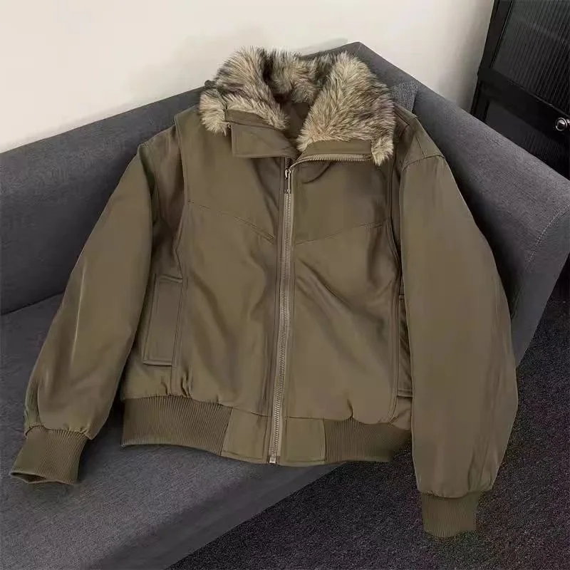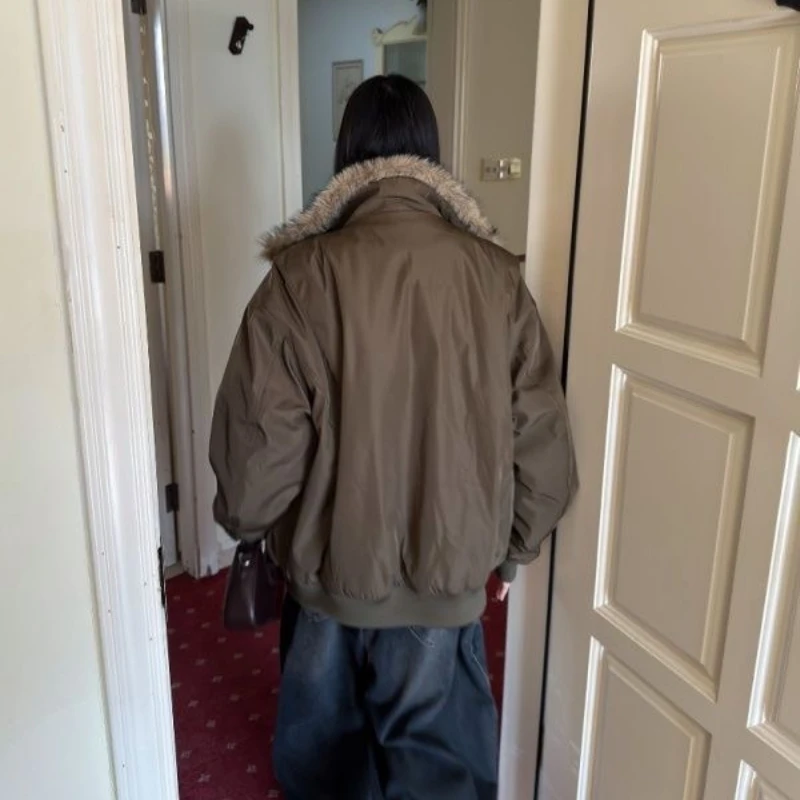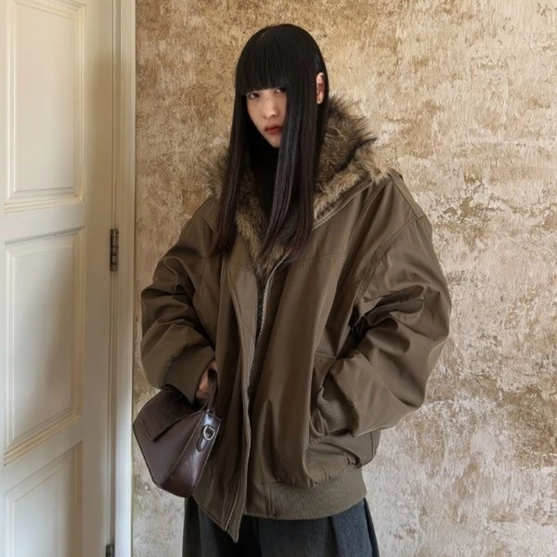 Vintage Solid Fur Collar Hooded Sweatshirt Autumn Winter Zipper Y2K Retro Fleece Jacket Harajuku Plush Dark Fashion Outfits 2025