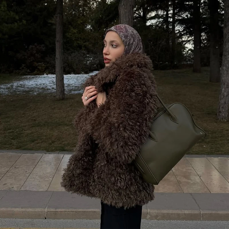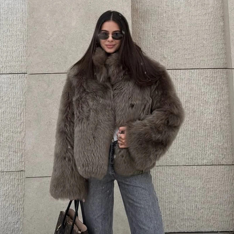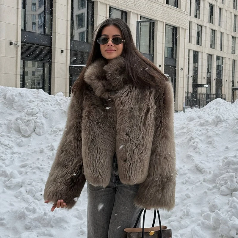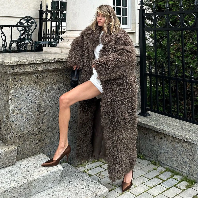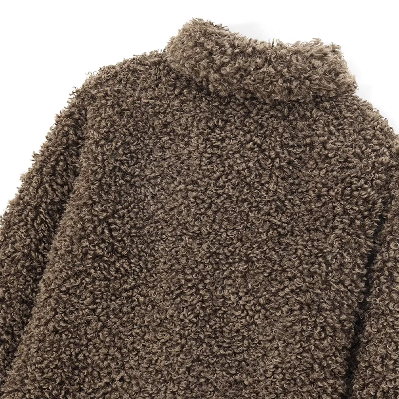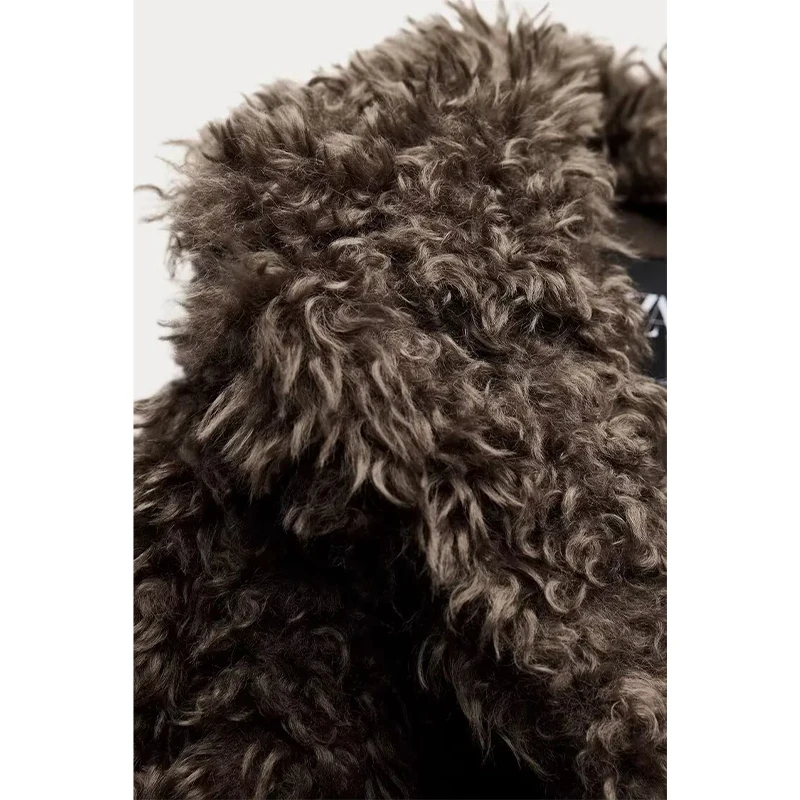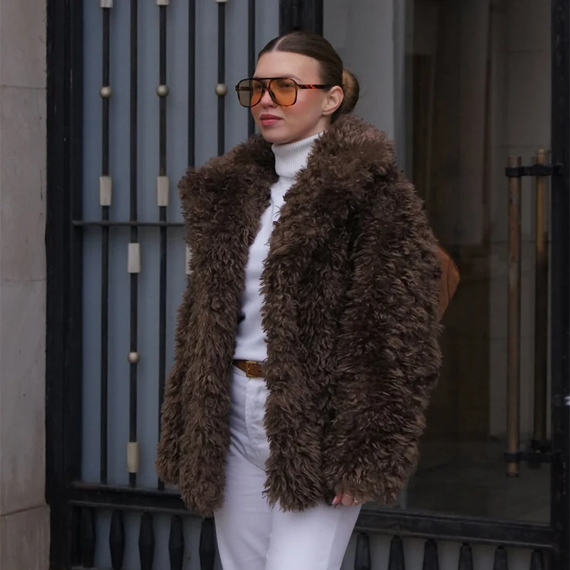 Women Solid Lamb Fur Long Coat Elegant Fashion Lapel Full Sleeve Warm Coats Lady Chic High Street Casual Winter Outerwear 2025