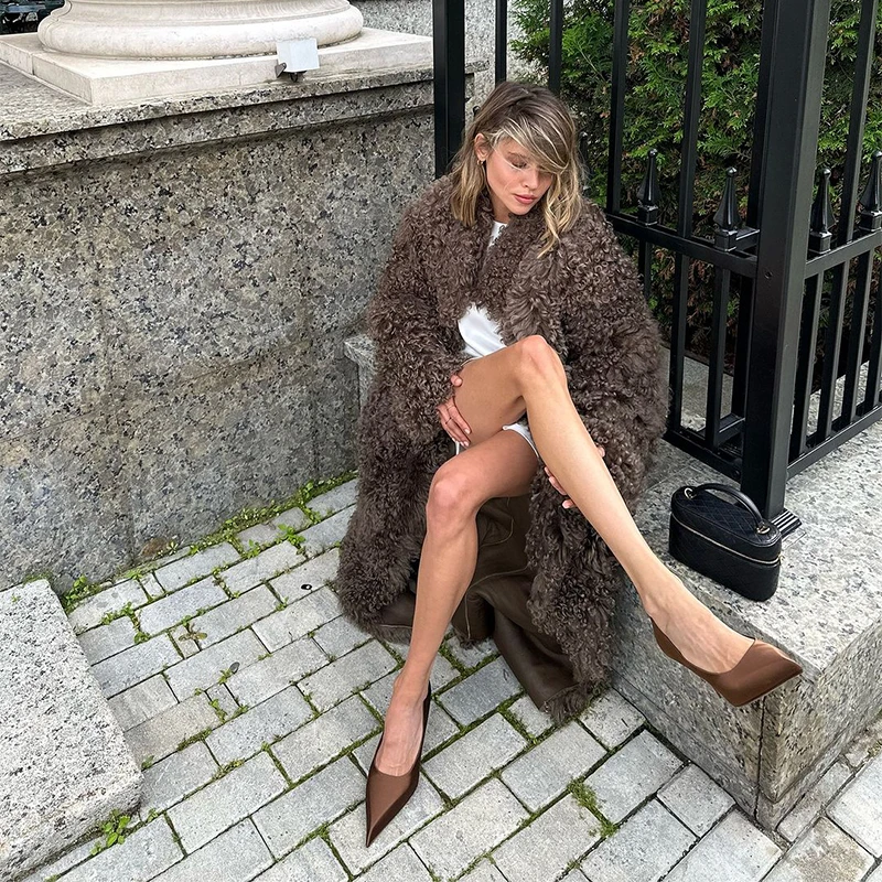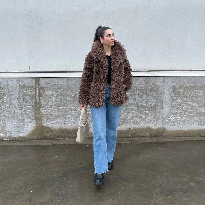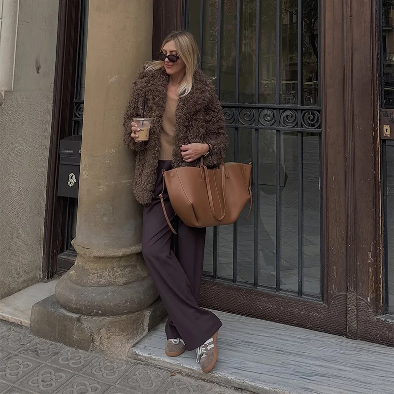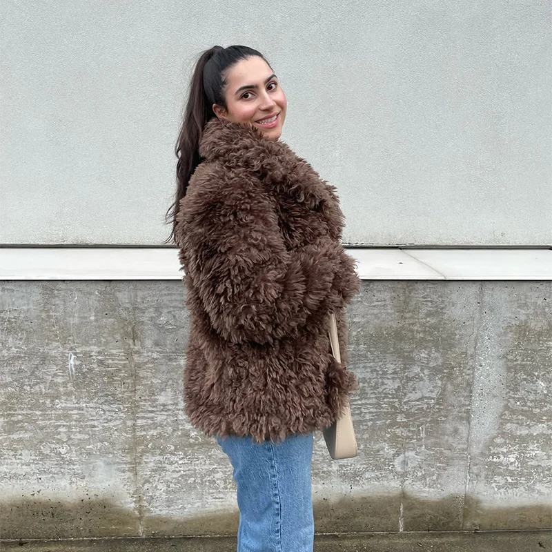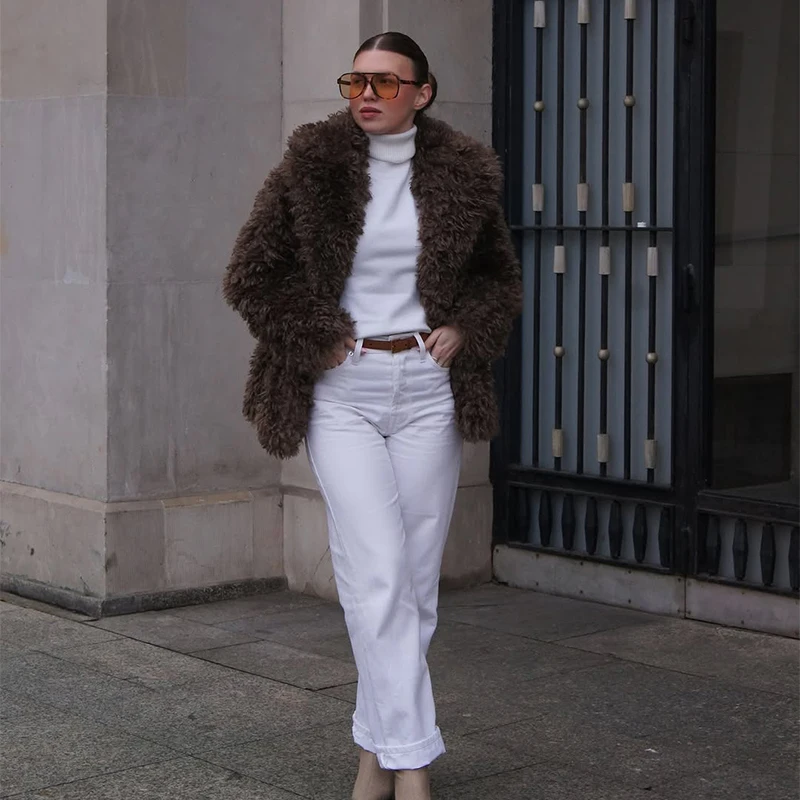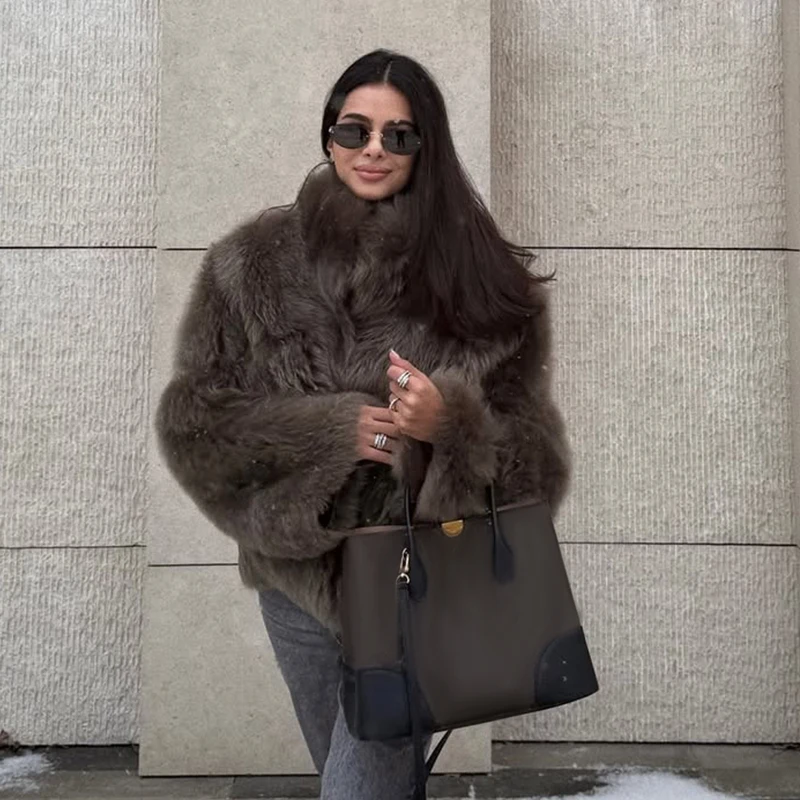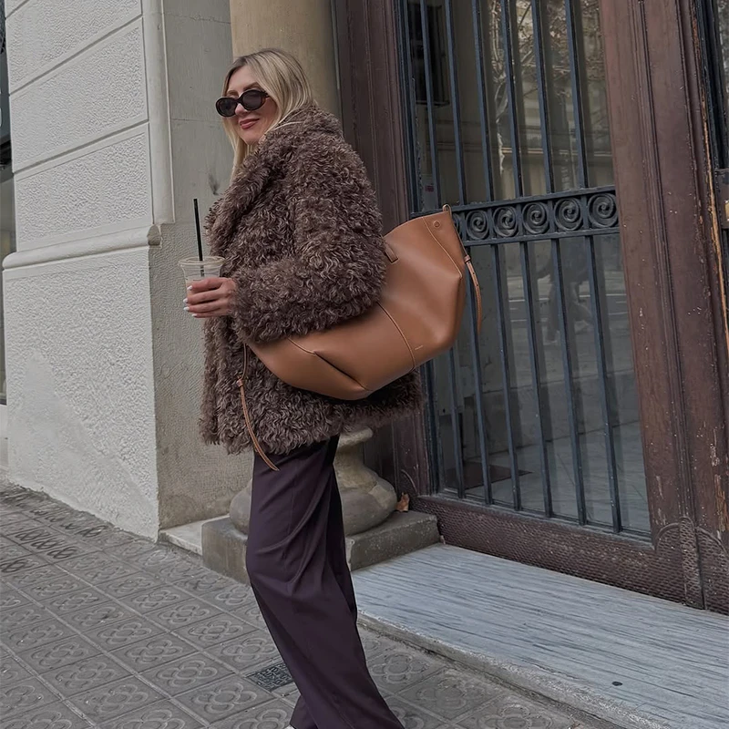 Women Solid Lamb Fur Long Coat Elegant Fashion Lapel Full Sleeve Warm Coats Lady Chic High Street Casual Winter Outerwear 2025