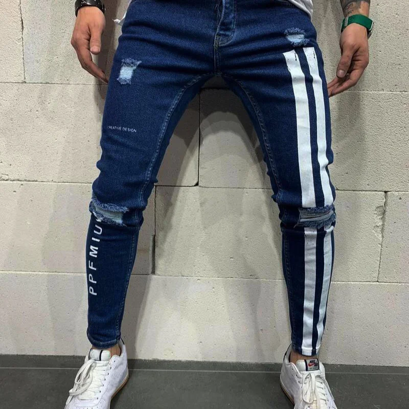 2026 Fashion Streetwear Men Jeans Vintage Blue Color Thin Destroyed Ripped Jeans Broken Punk Pants Homme Hip Hop Jeans Men