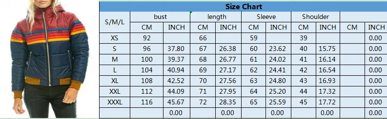 2025 Autumn Winter New Fashion Stripe Zipper Hooded Parkas Women Cotton Clothes Rainbow Jacket Splicing Pocket Ladies Outerwear
