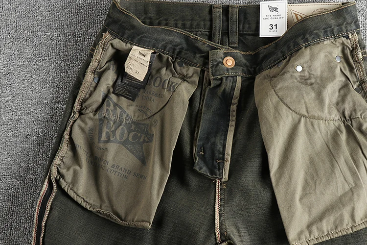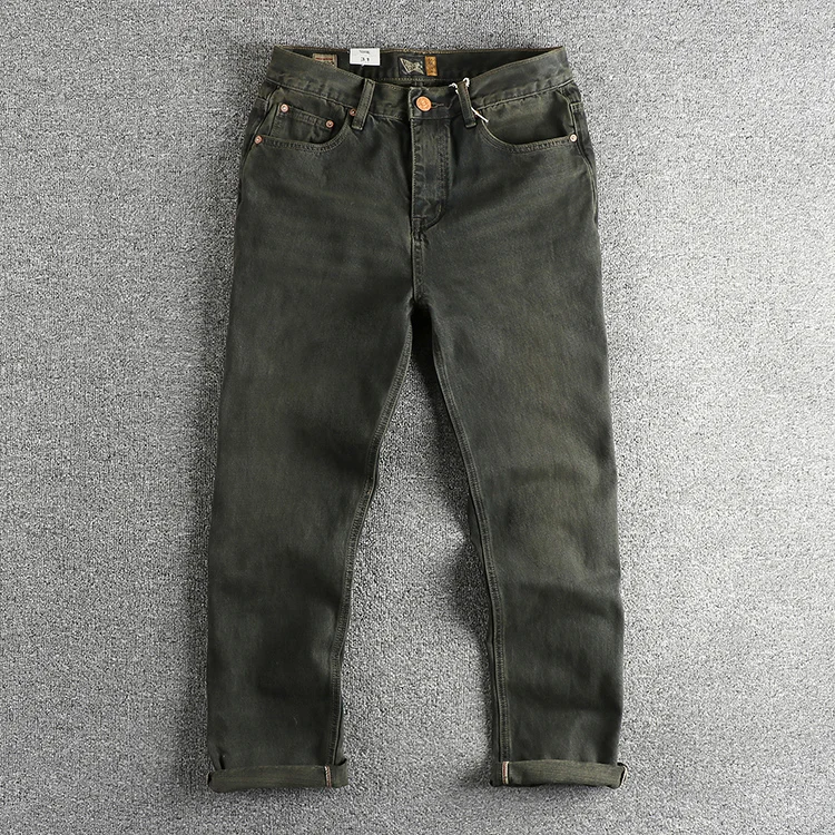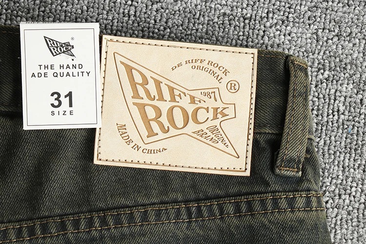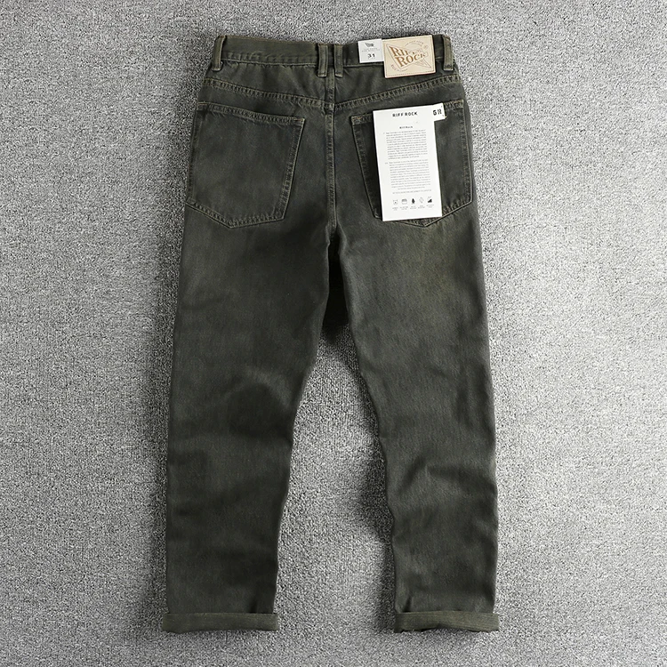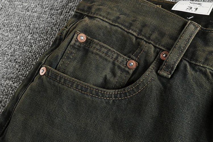 2025 new American high-end heavy wash to do old retro blue jeans men straight leg trend youth pants
