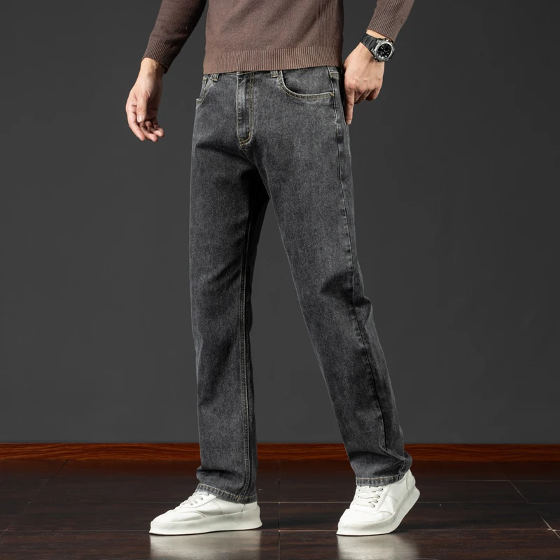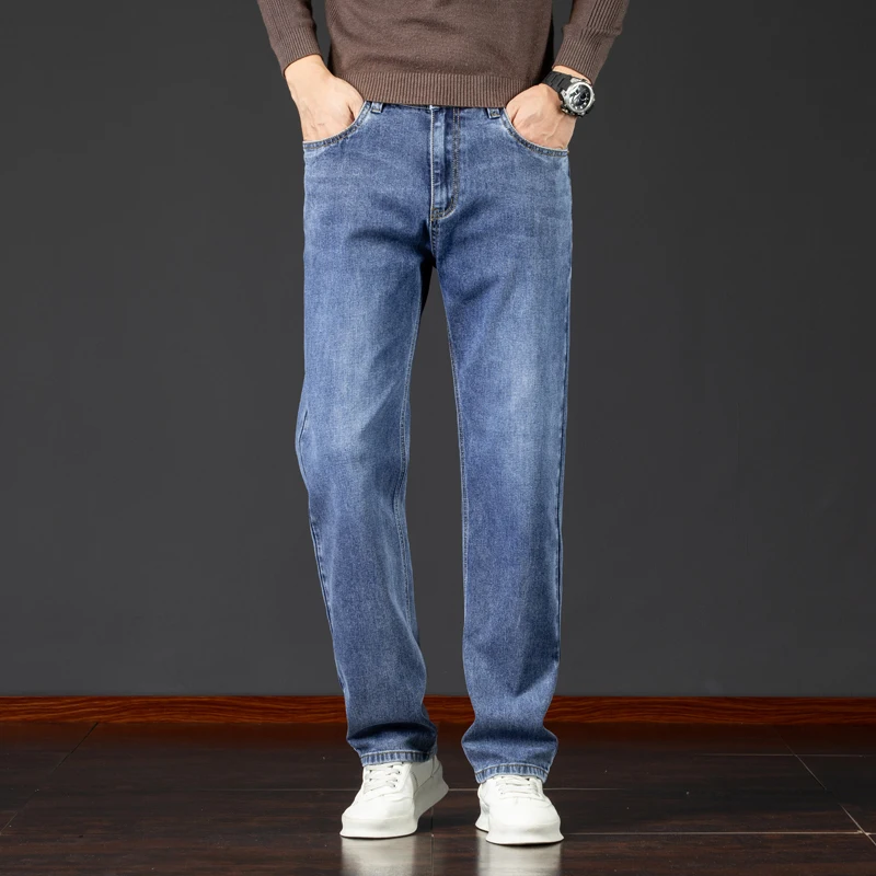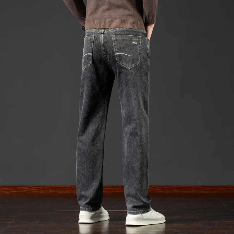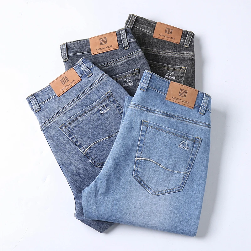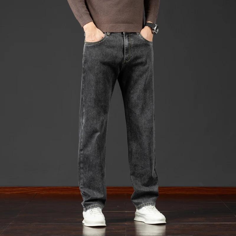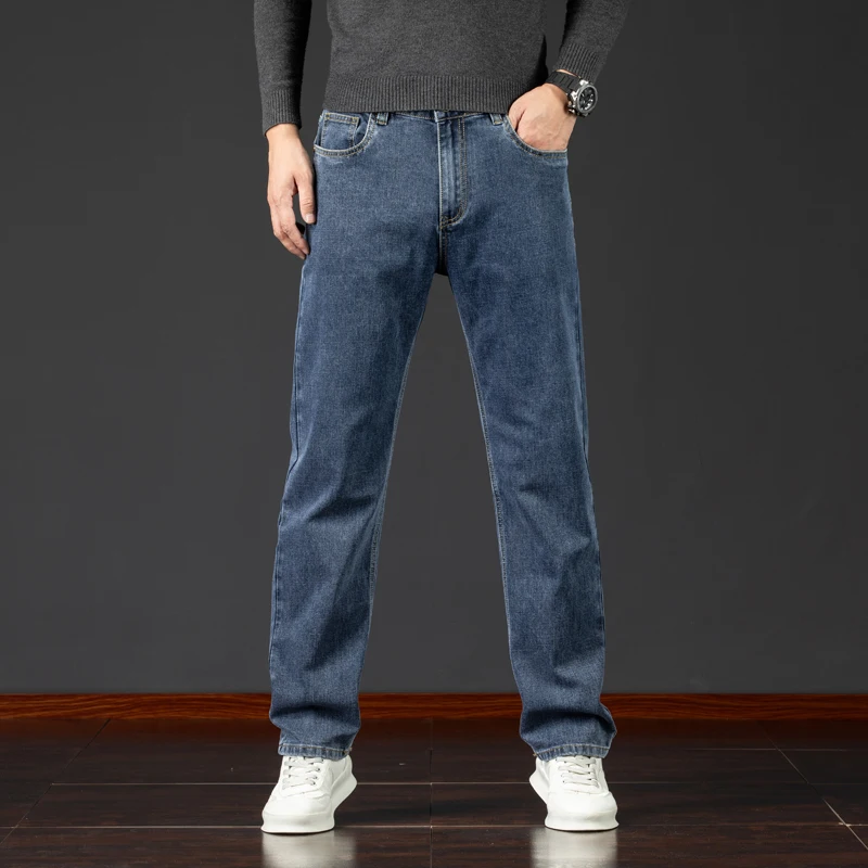 40 42 44 Size Men's Loose Jeans Autumn New Classic Straight Elastic Cotton Wash Denim Pants Fashion Casual Male Trousers