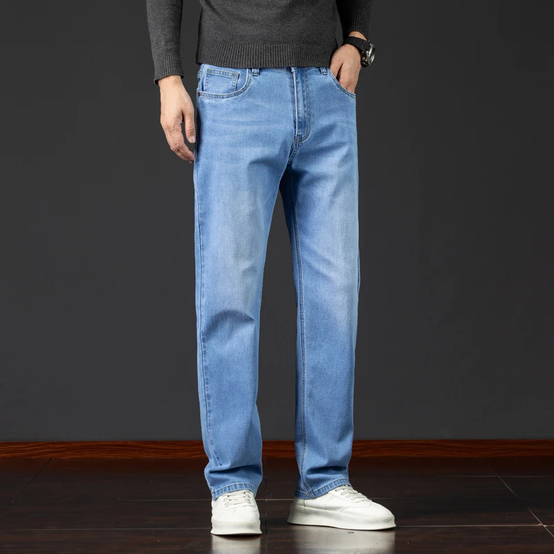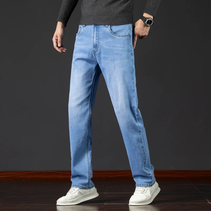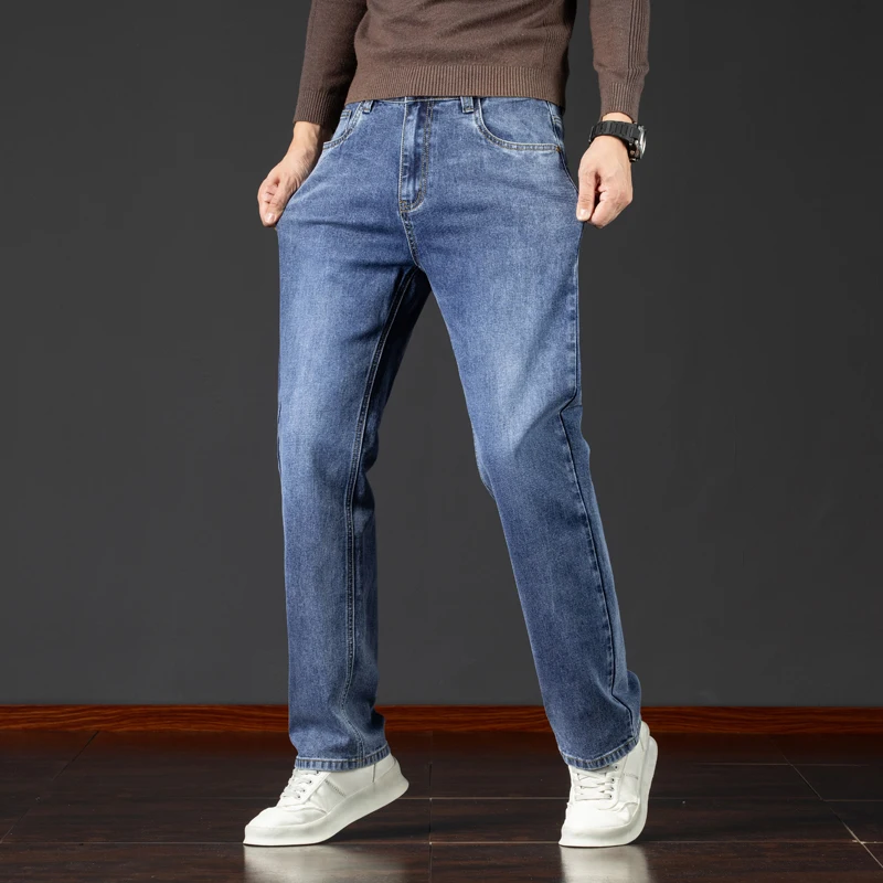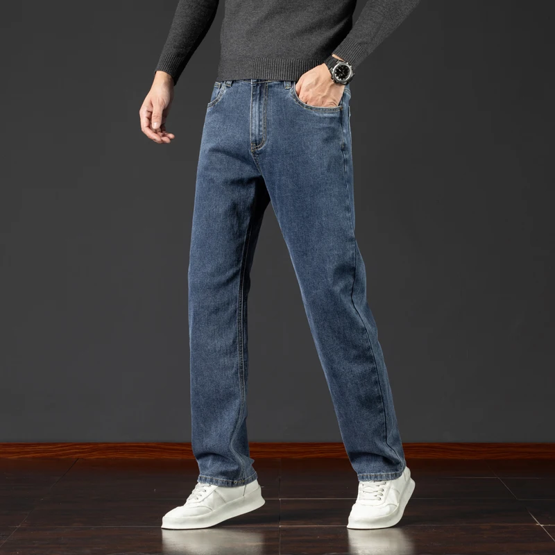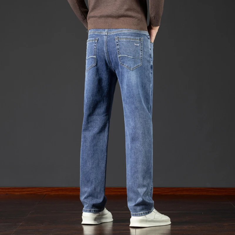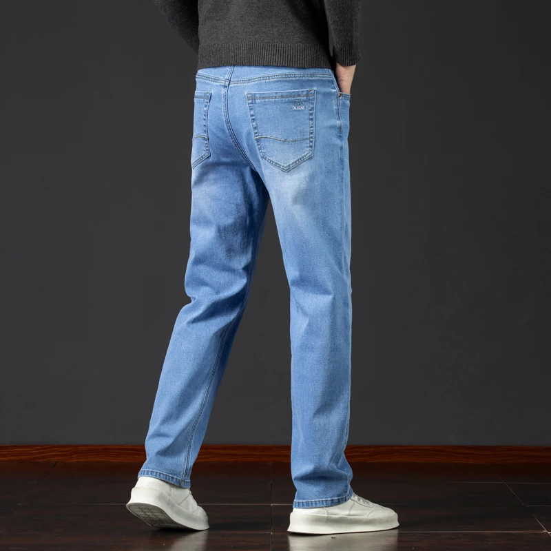 40 42 44 Size Men's Loose Jeans Autumn New Classic Straight Elastic Cotton Wash Denim Pants Fashion Casual Male Trousers