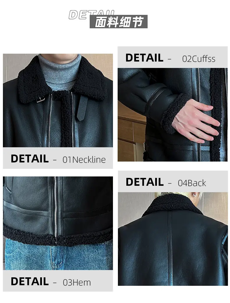 Autumn and winter warm thick leather jacket for men's trendy slim fit lapel motorcycle suit men's leather jacket