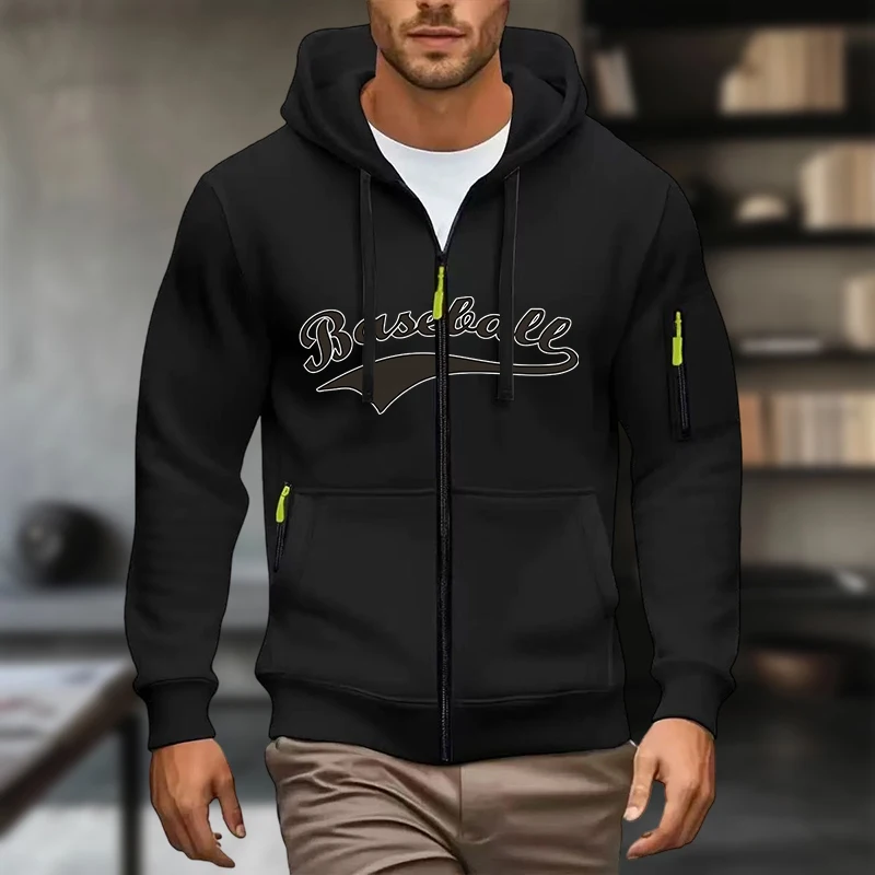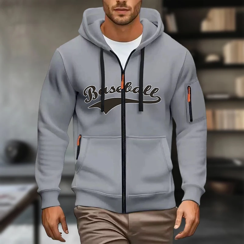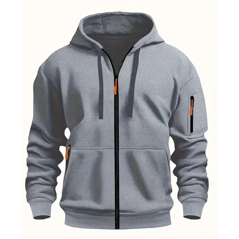Autumn Men's Casual Zipper Hoodie with Multi Pocket Fashion Sports Street Hoodie Jacket for Men
