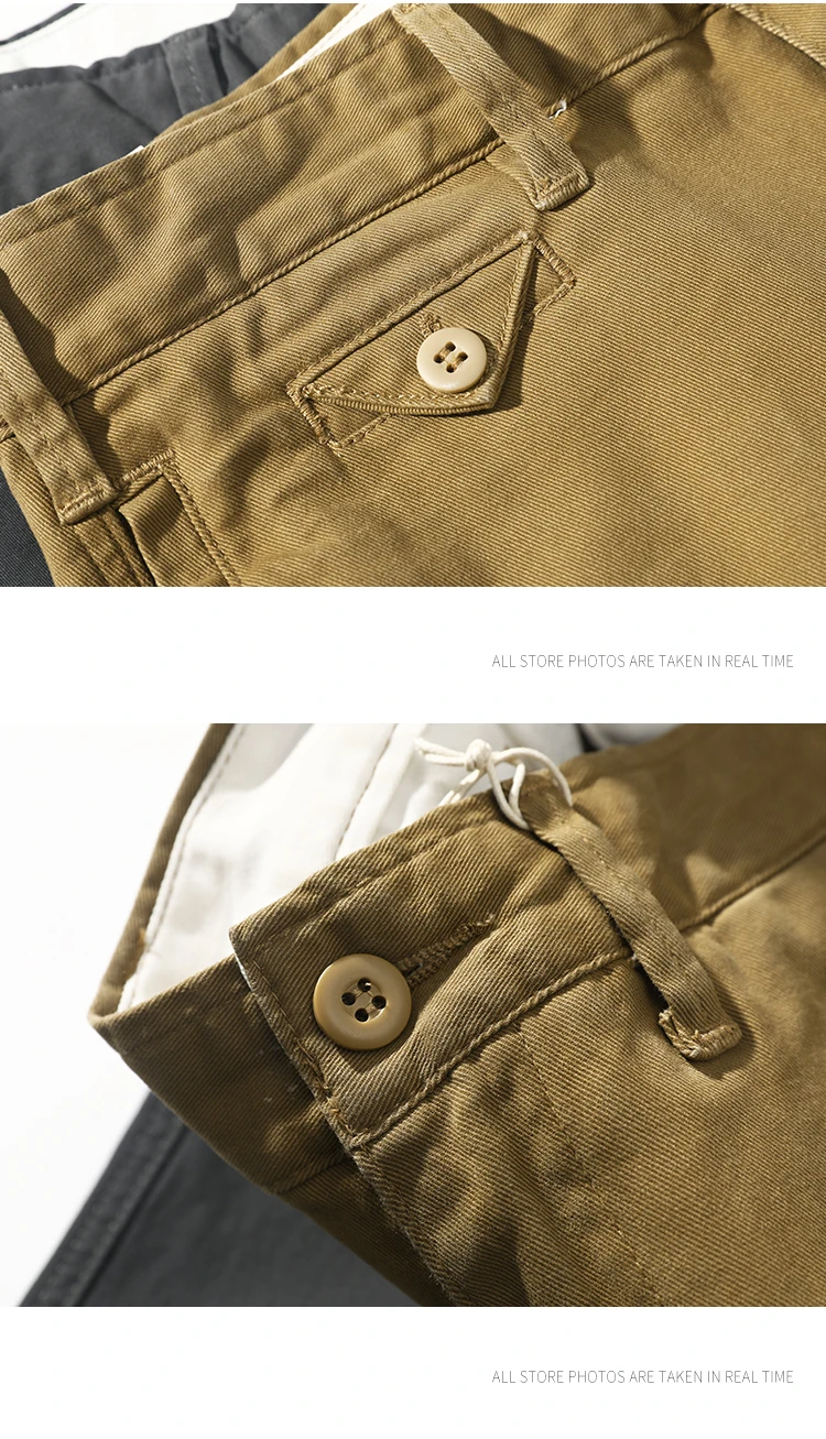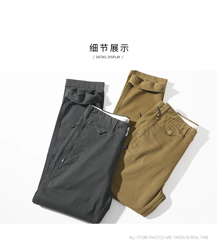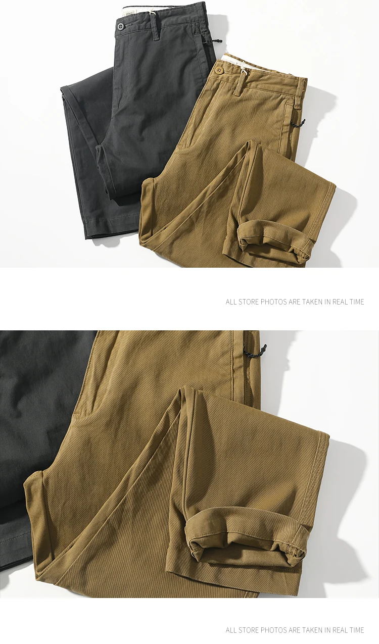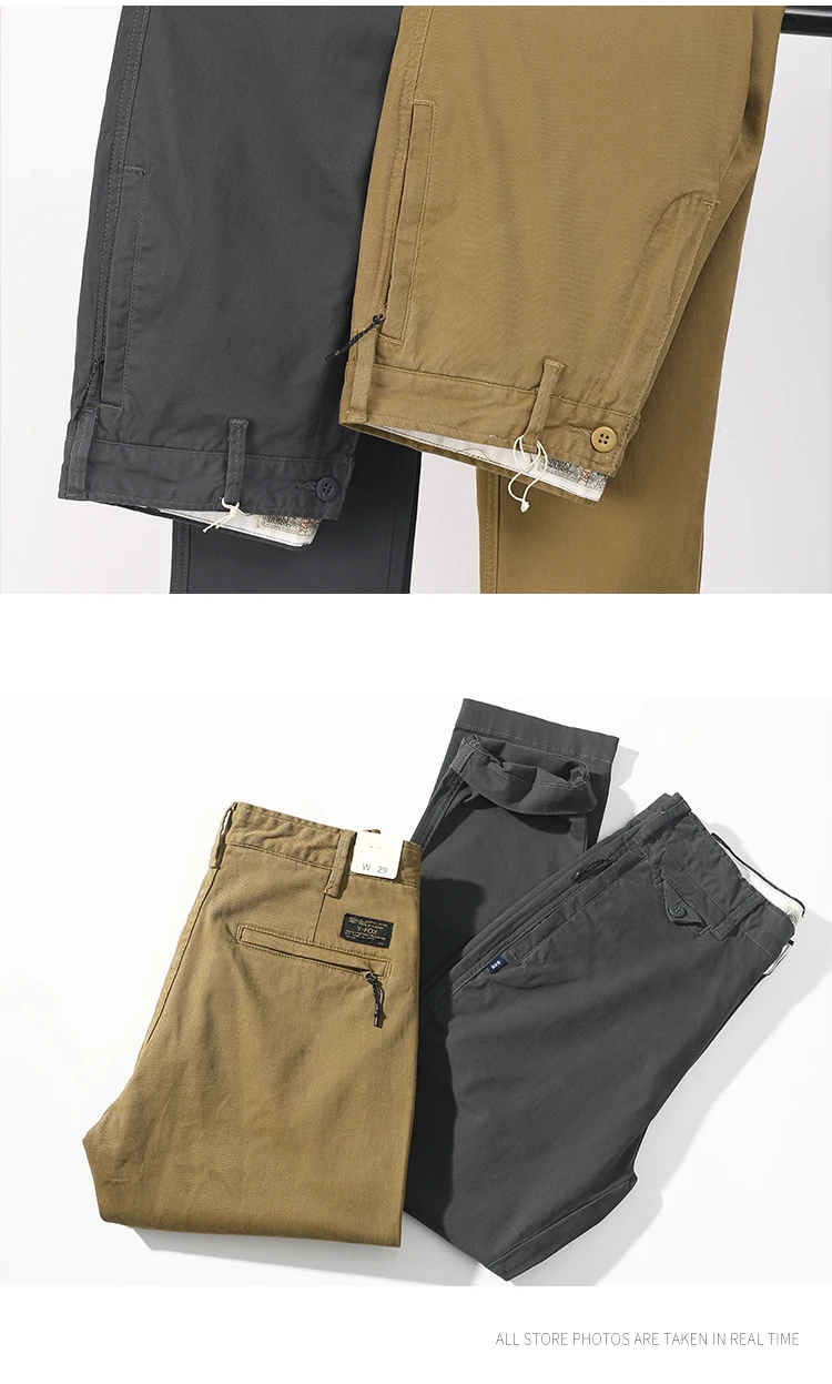 Autumn New American Retro Heavyweight Men's Solid Color Overalls 97% Cotton Loose Straight Leg Woven Twill Casual Trousers