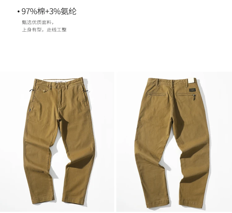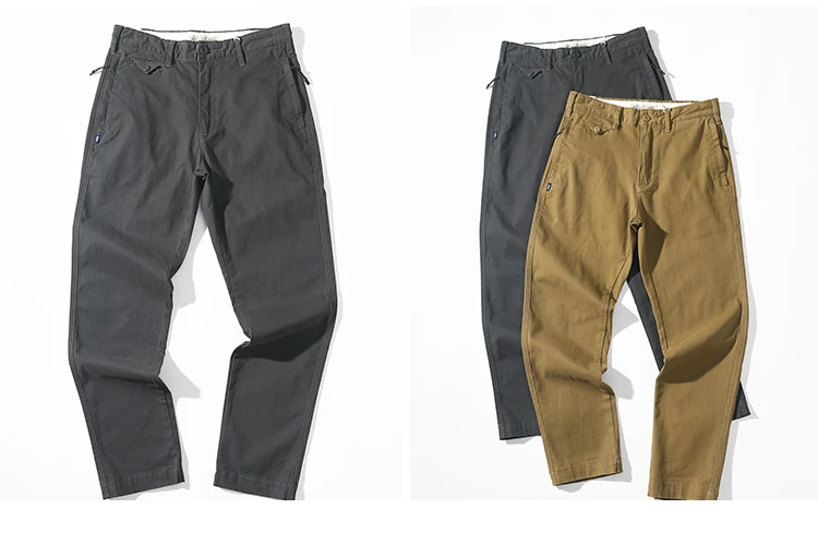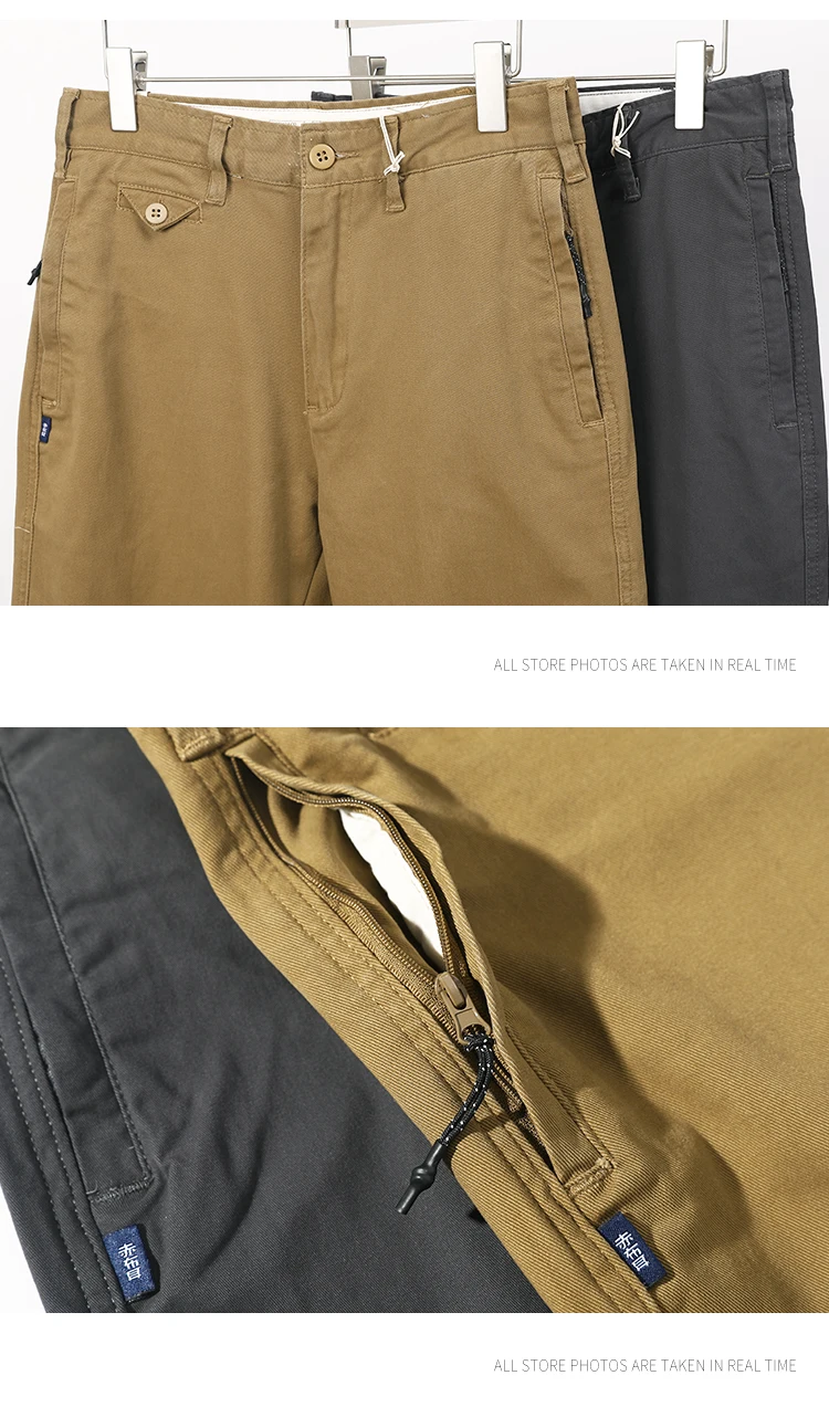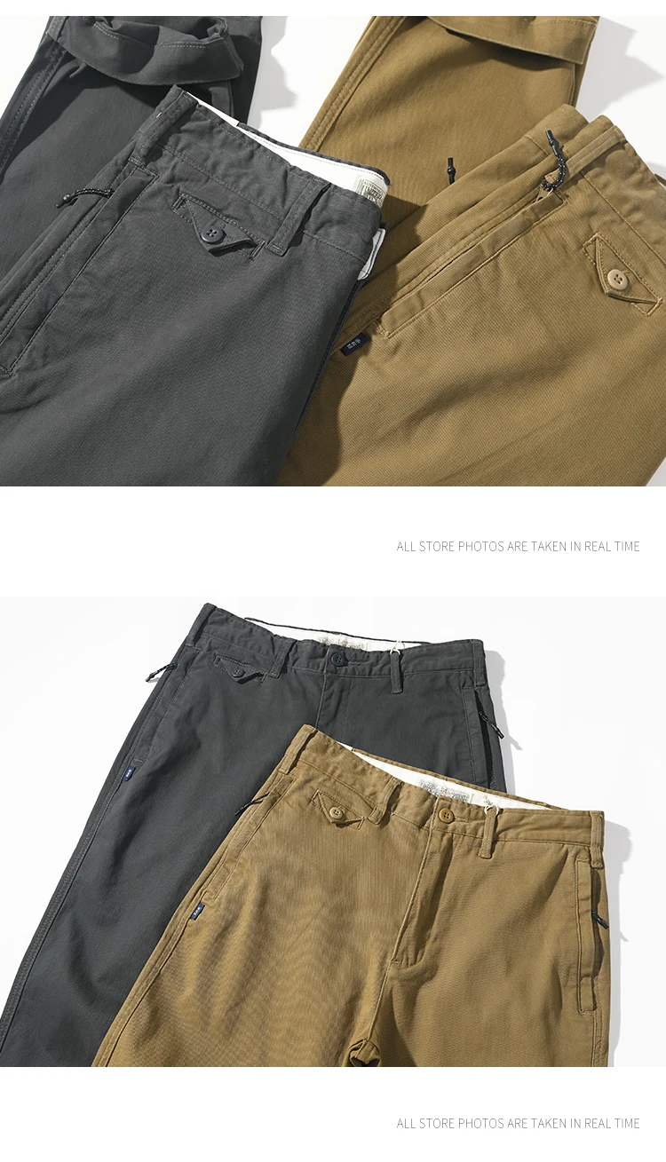 Autumn New American Retro Heavyweight Men's Solid Color Overalls 97% Cotton Loose Straight Leg Woven Twill Casual Trousers