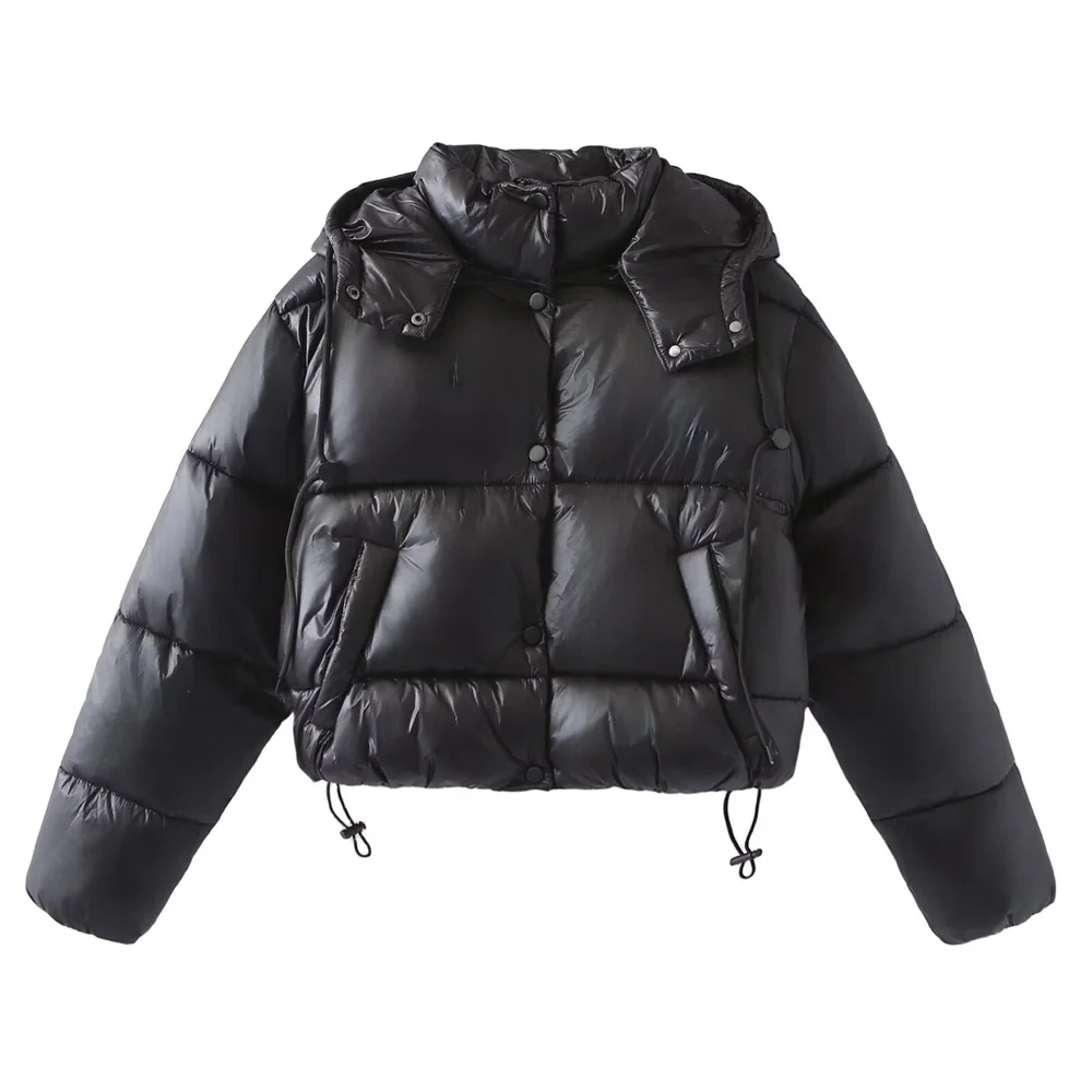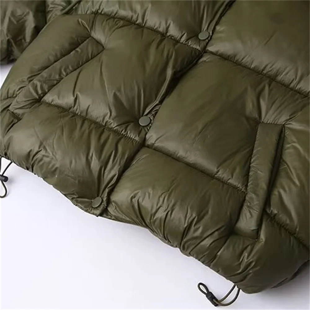 Autumn/Winter New Product Women's Standing Neck Hooded Long Sleeve Side Pocket Short Cotton Coat Jacket