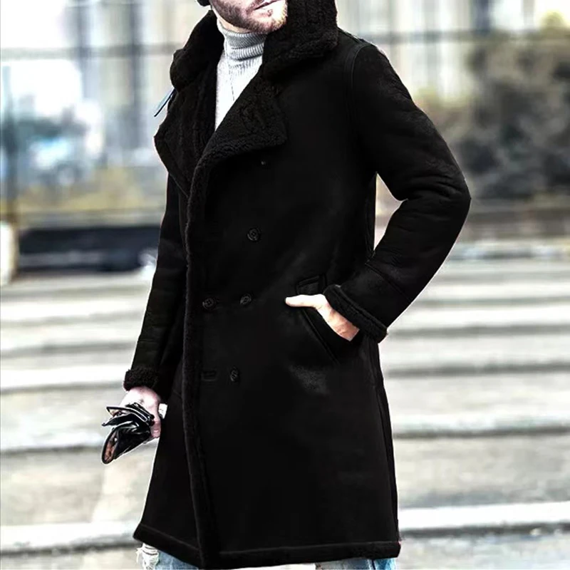 Autumn Winter New Warm Long Jacket Men's Casual Solid Retro Fur Coat Fashion Men Fleece Jacket For Male Keep Thick Overcoat