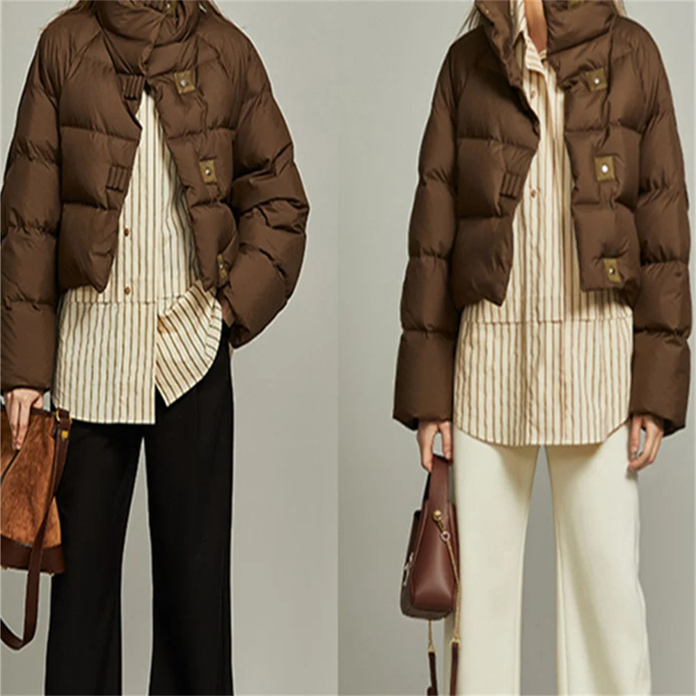Autumn Winter Women Parkas Jackets 2025 Fashion Turn Down Collar Single Breasted Short Jackets Thick Warm Female Jackets Coats