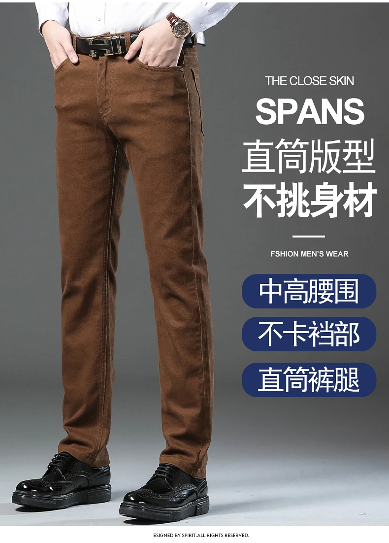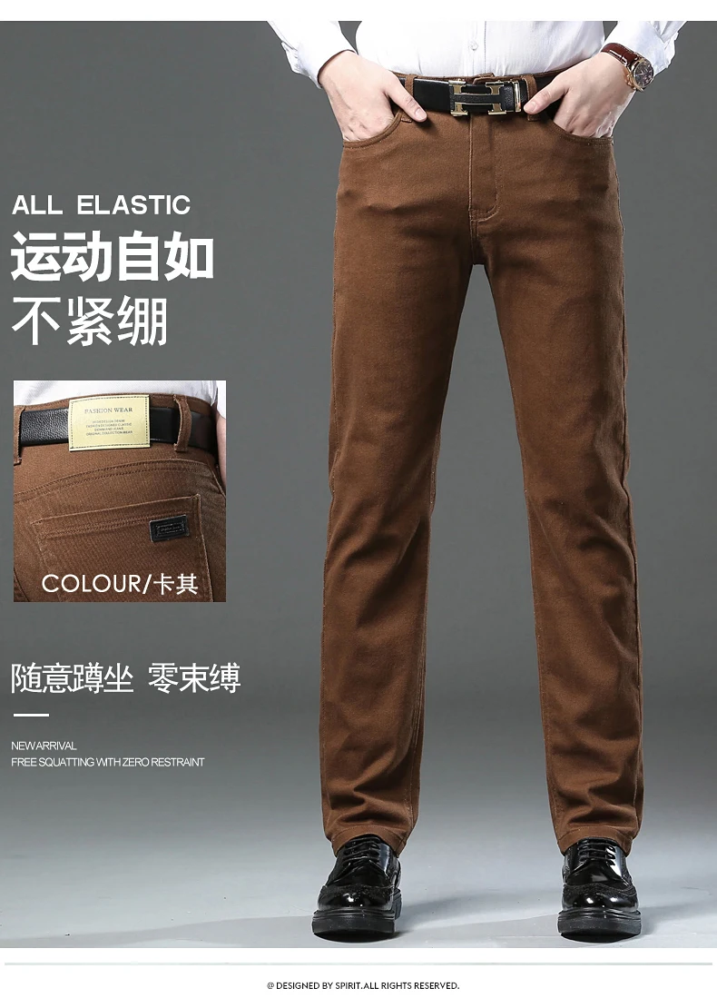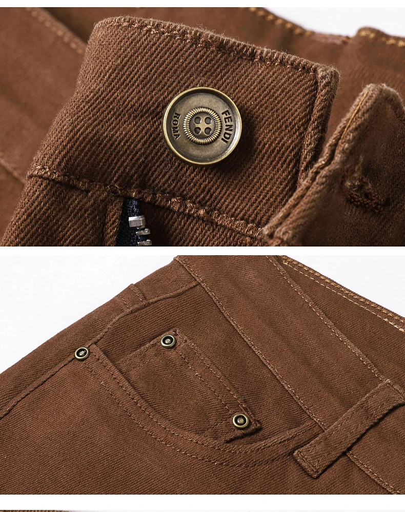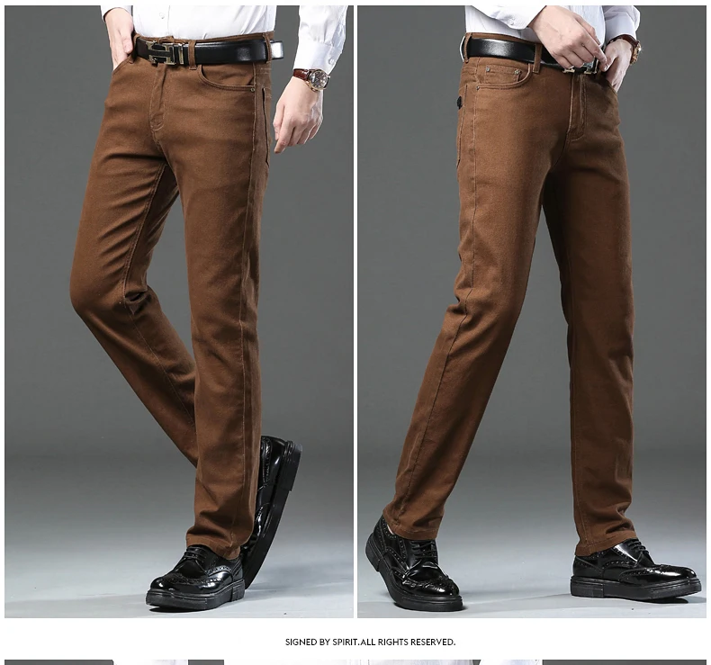 Classic Style 3 Colors Autumn Men's Slim Brown Jeans High Quality Business Casual High Stretch Denim Pants Male Brand Trousers