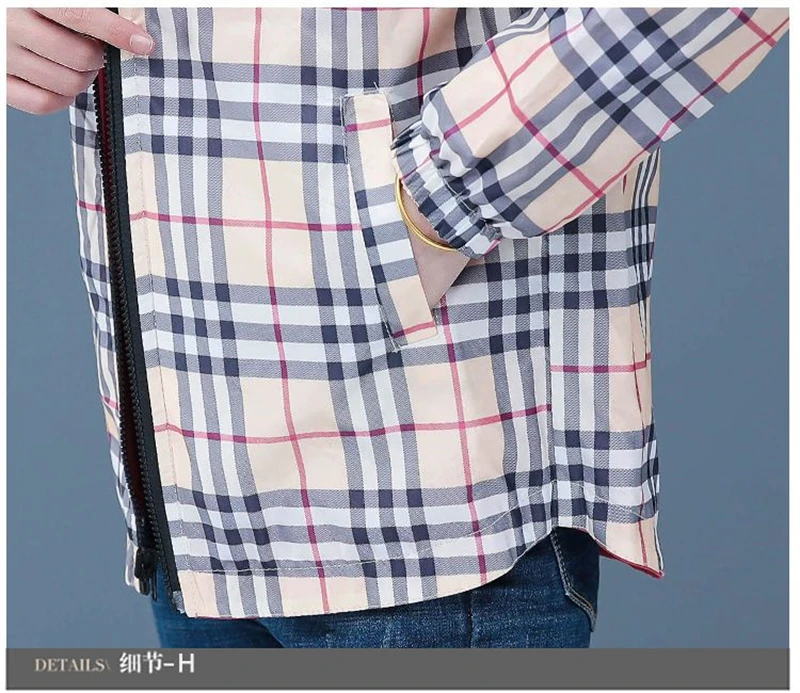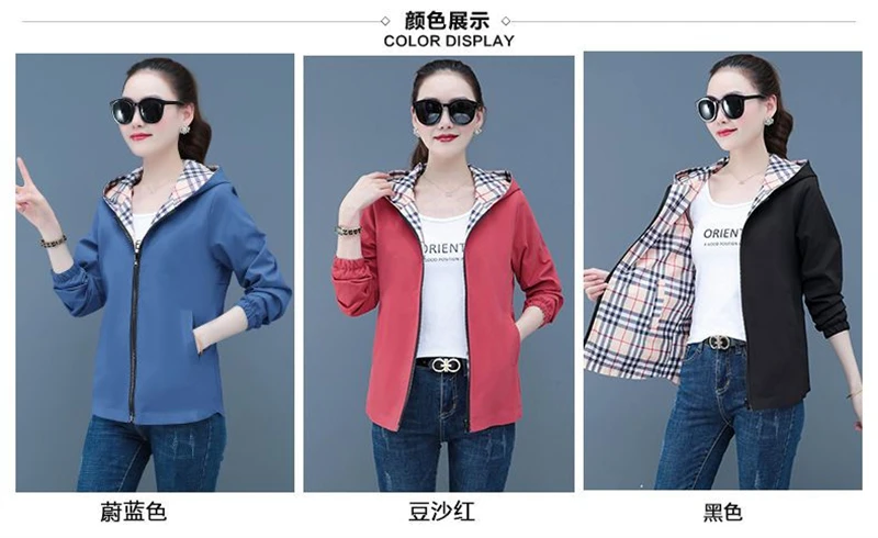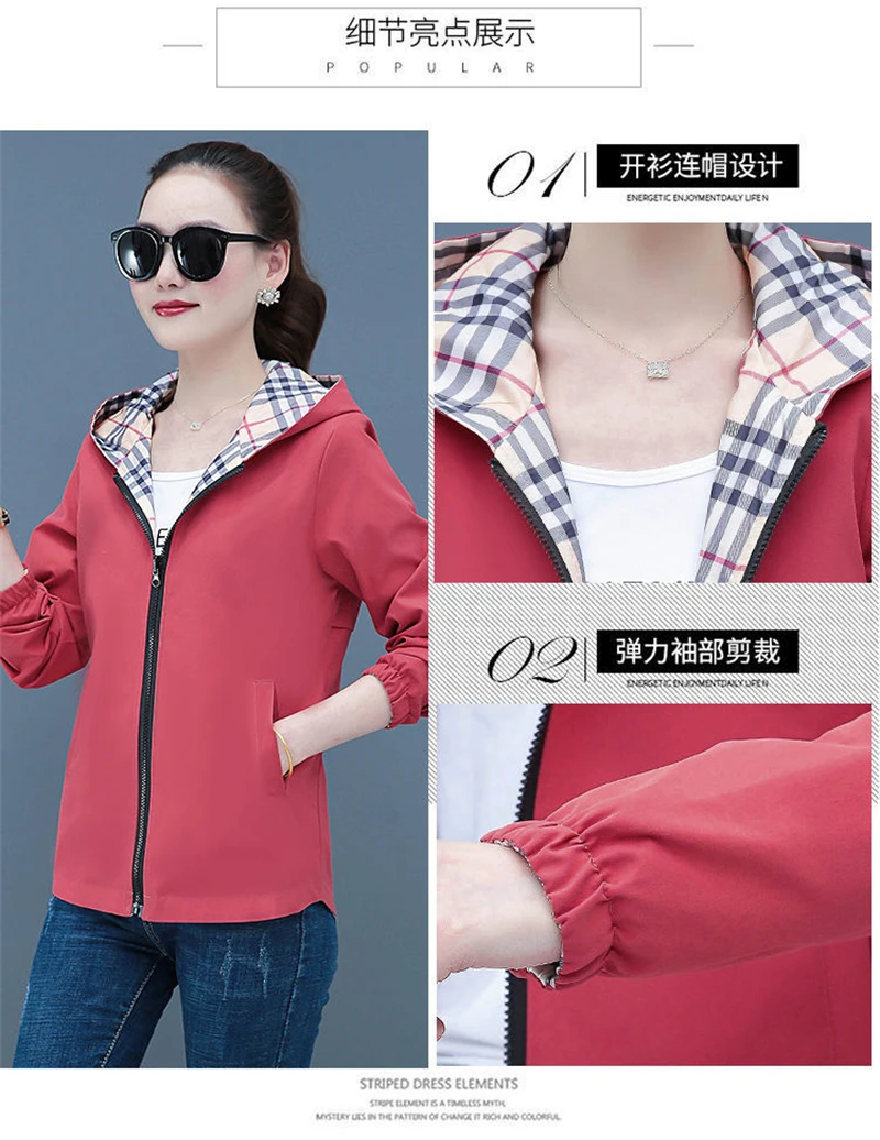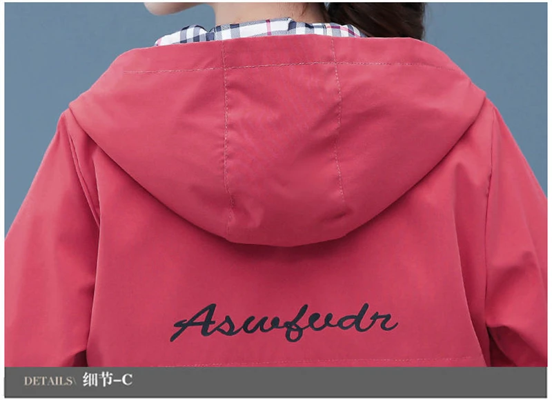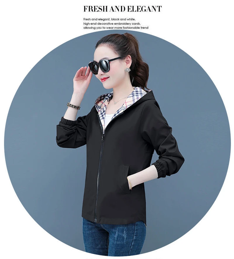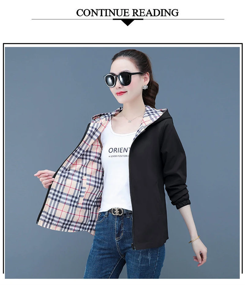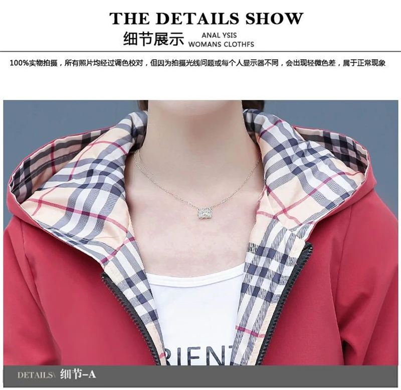 Double-Sided Trench Coat Women 2025 New Spring Autumn Clothes Letter Plaid Hooded Short Windbreaker Jacket Female Outerwear Tops