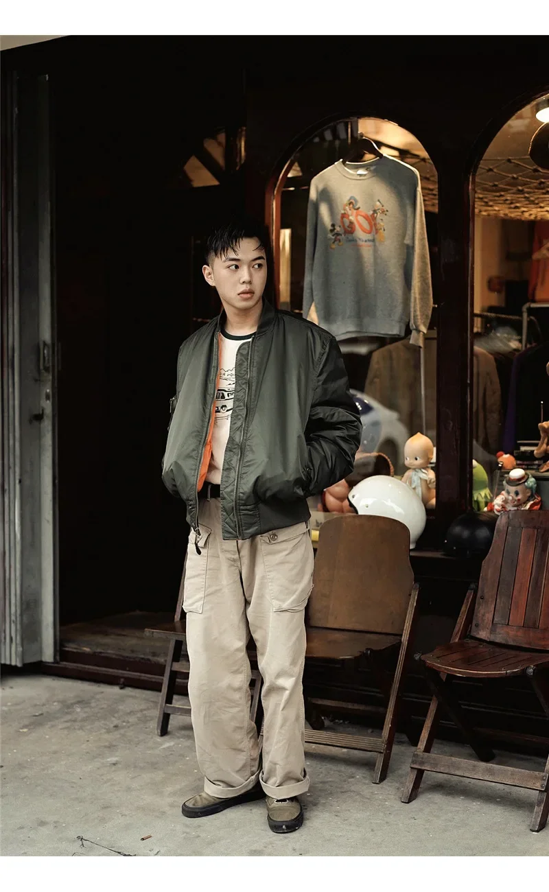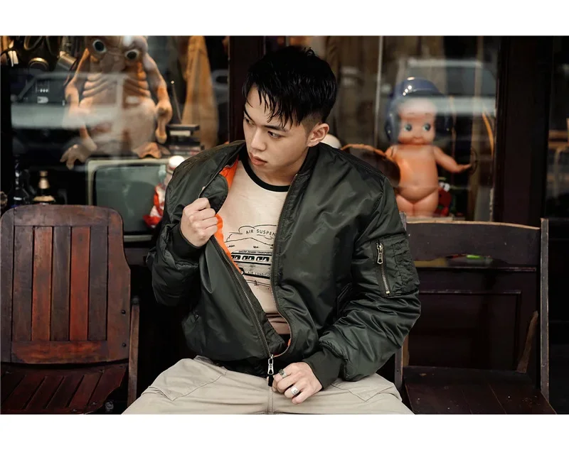 Fighter Pilot Flight Jacket Thick Warm Orange Lining Bomber Jackets Fall Winter Casual Windproof Coats Cotton Lining Chaquetas