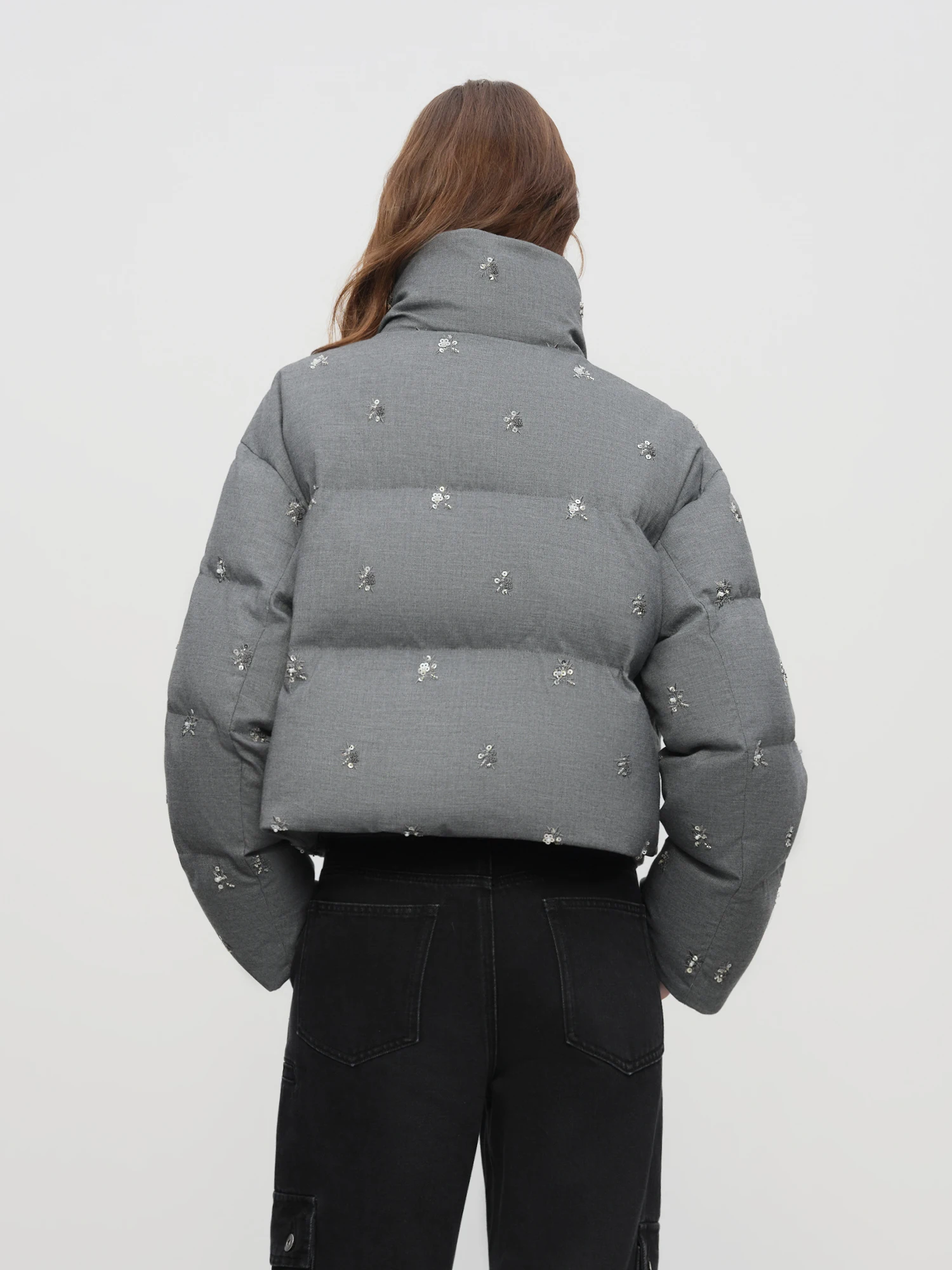 FSLE【Premium Series】Beaded Short Puffer Down Vest Women Autumn Winter Quilted Down Jacket Down Gilet Coat Outdoor Streetwear