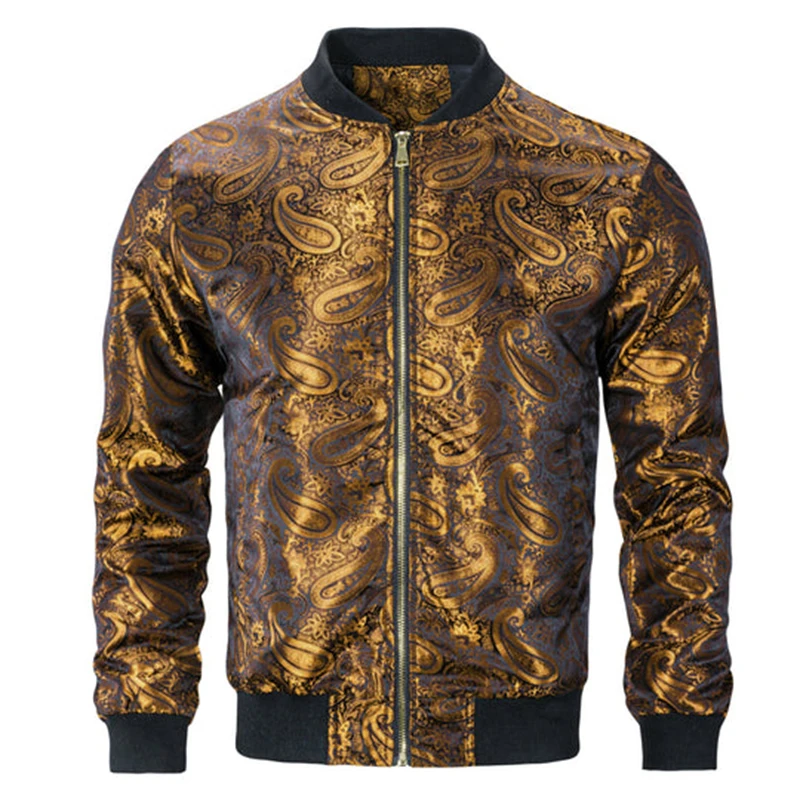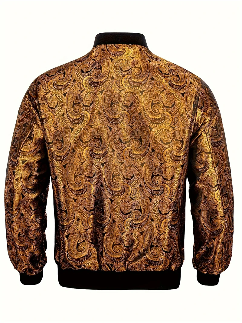Gold Paisley Jacket Men's Clothing 3D Printed Colorful Long Sleeve Zipper Jackets Luxury Graphic Street Trend Autumn Bomber Coat