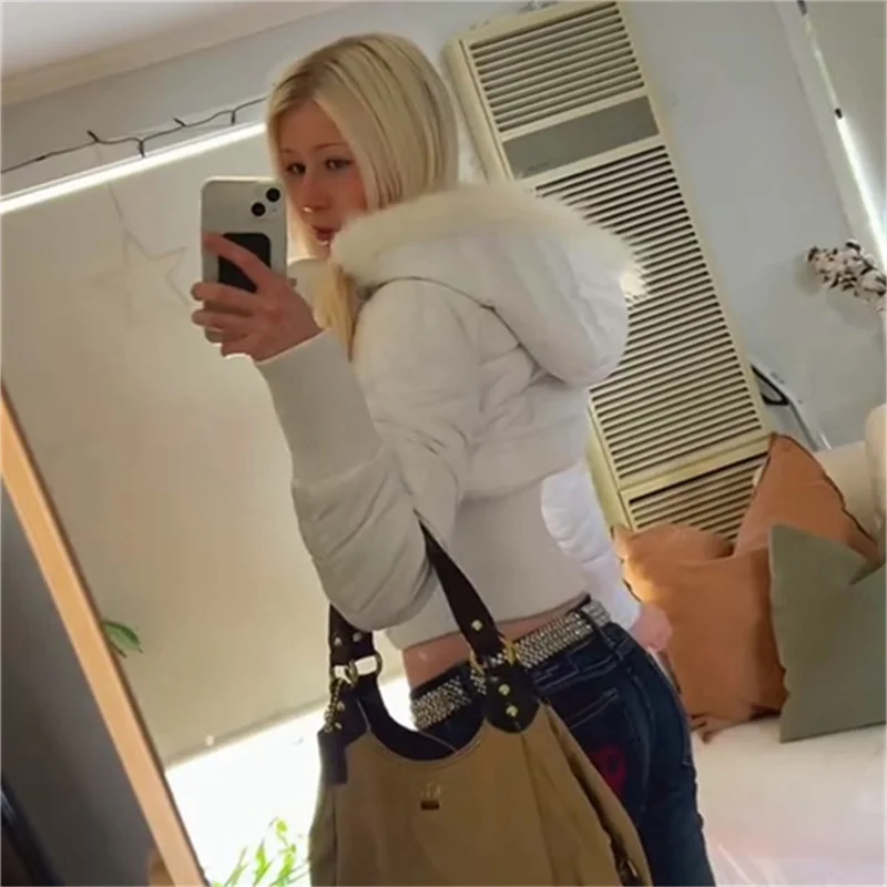 Hooded Down Jacket Women 's Cotton Padded Coats Zipper Full Sleeve Jackets Female Autumn Winter Thicken Streetwears 2025