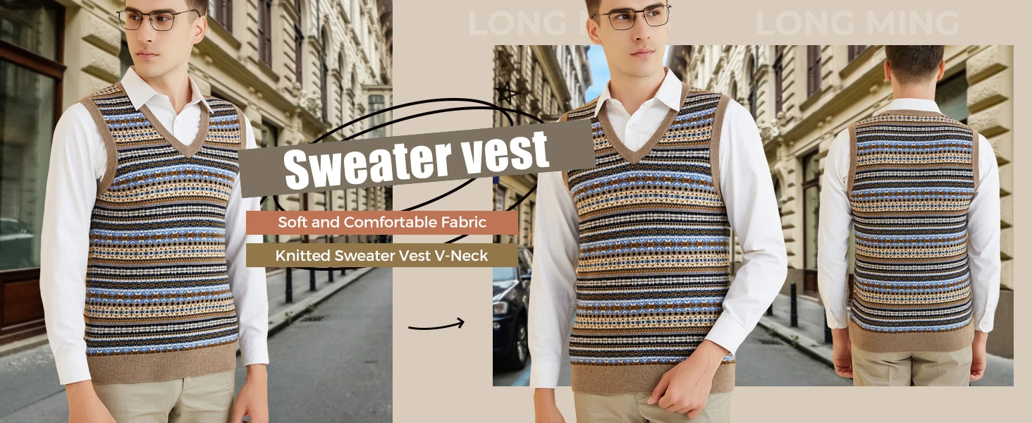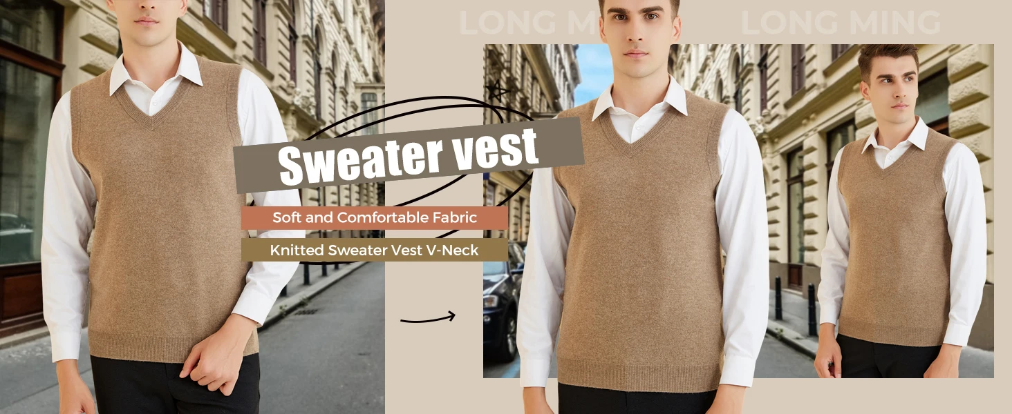 LONGMING Men's Knit Vest 100% Merino Wool Sweater for Mens Knit Vest Knitted Fall Winter Soft Sleeveless Top Warm Pullover Basic