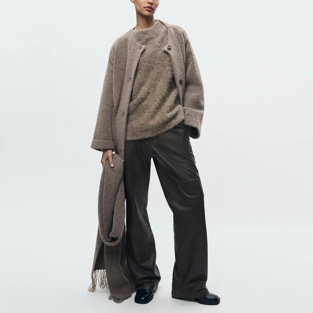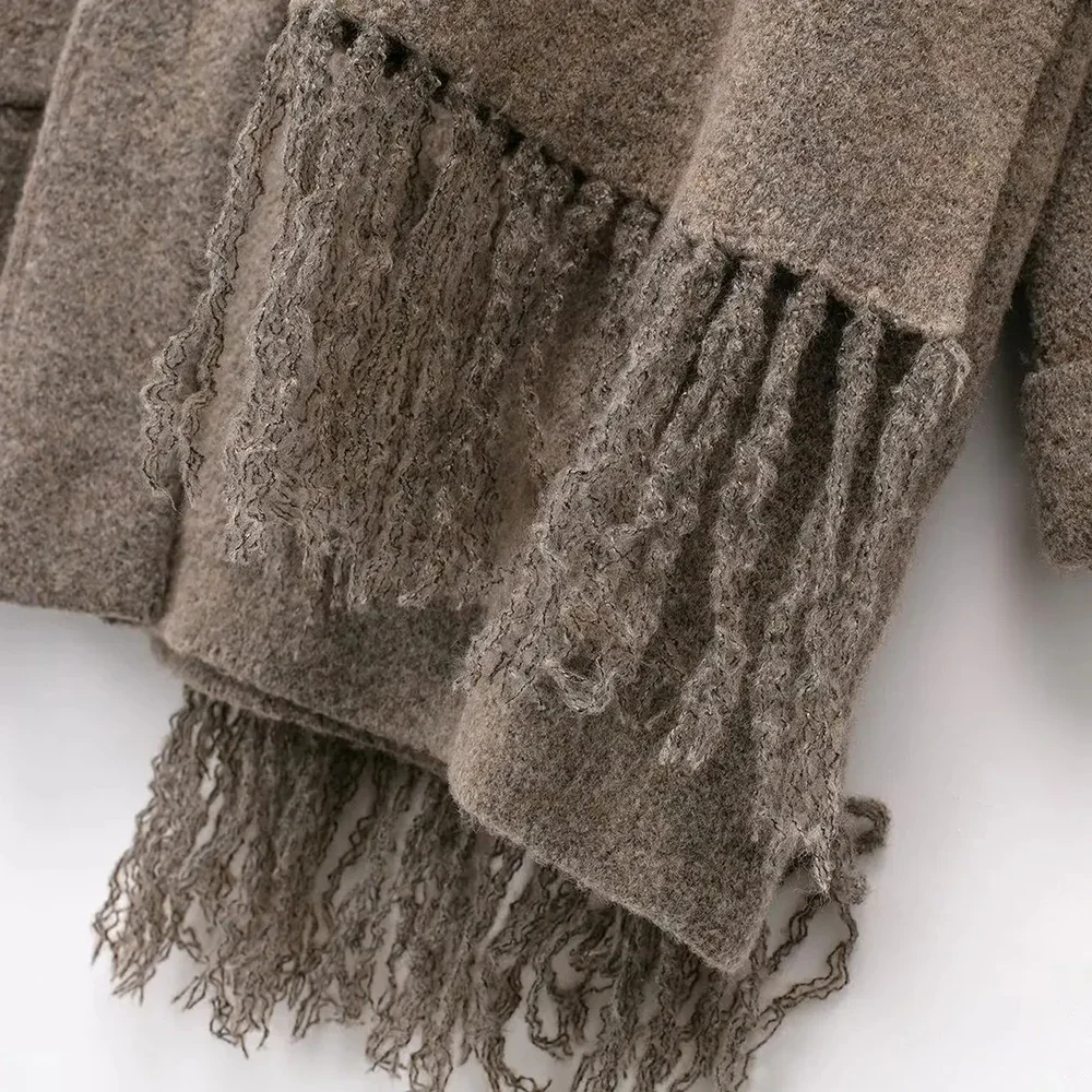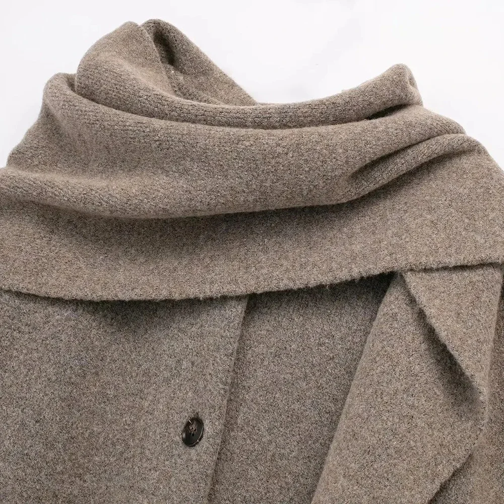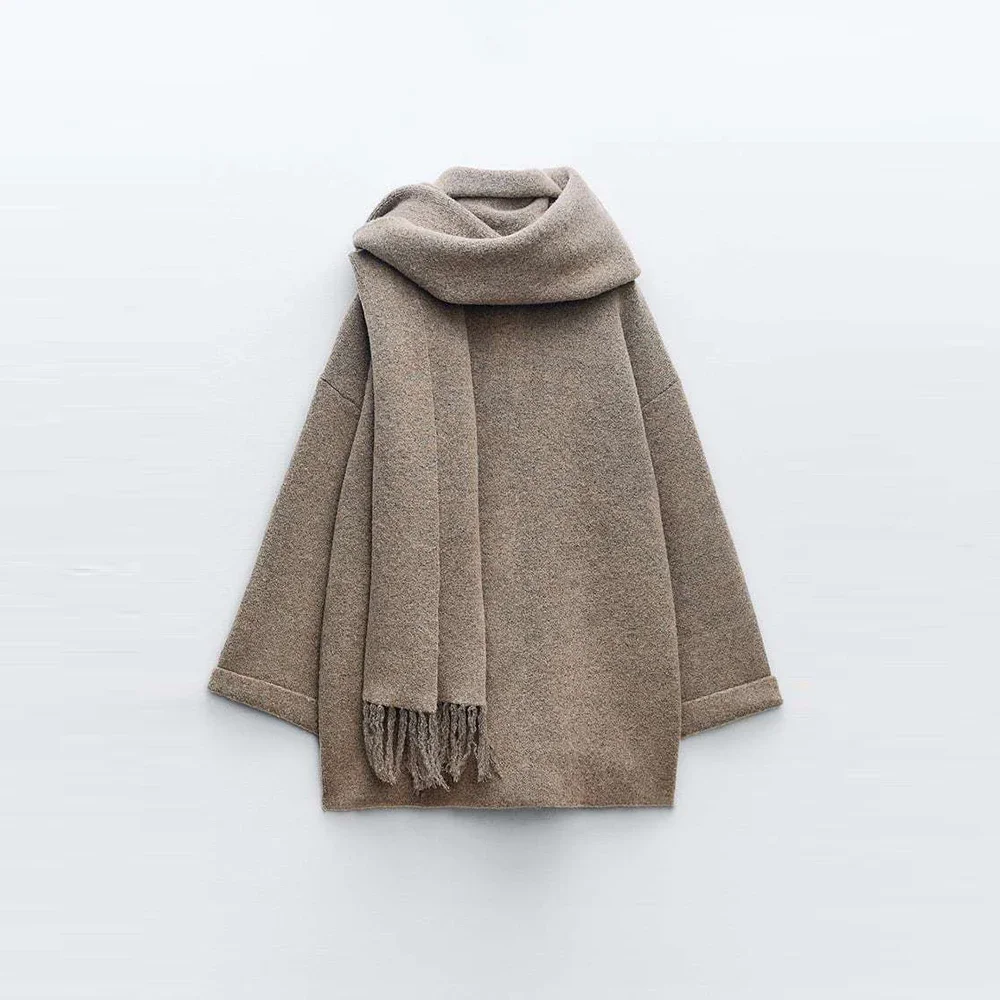 Loose Knitted Cardigan with Scarf Slim Casual Women's Jacket Long Sleeve Solid Pocket Jacket Elegant Office Women's Tops