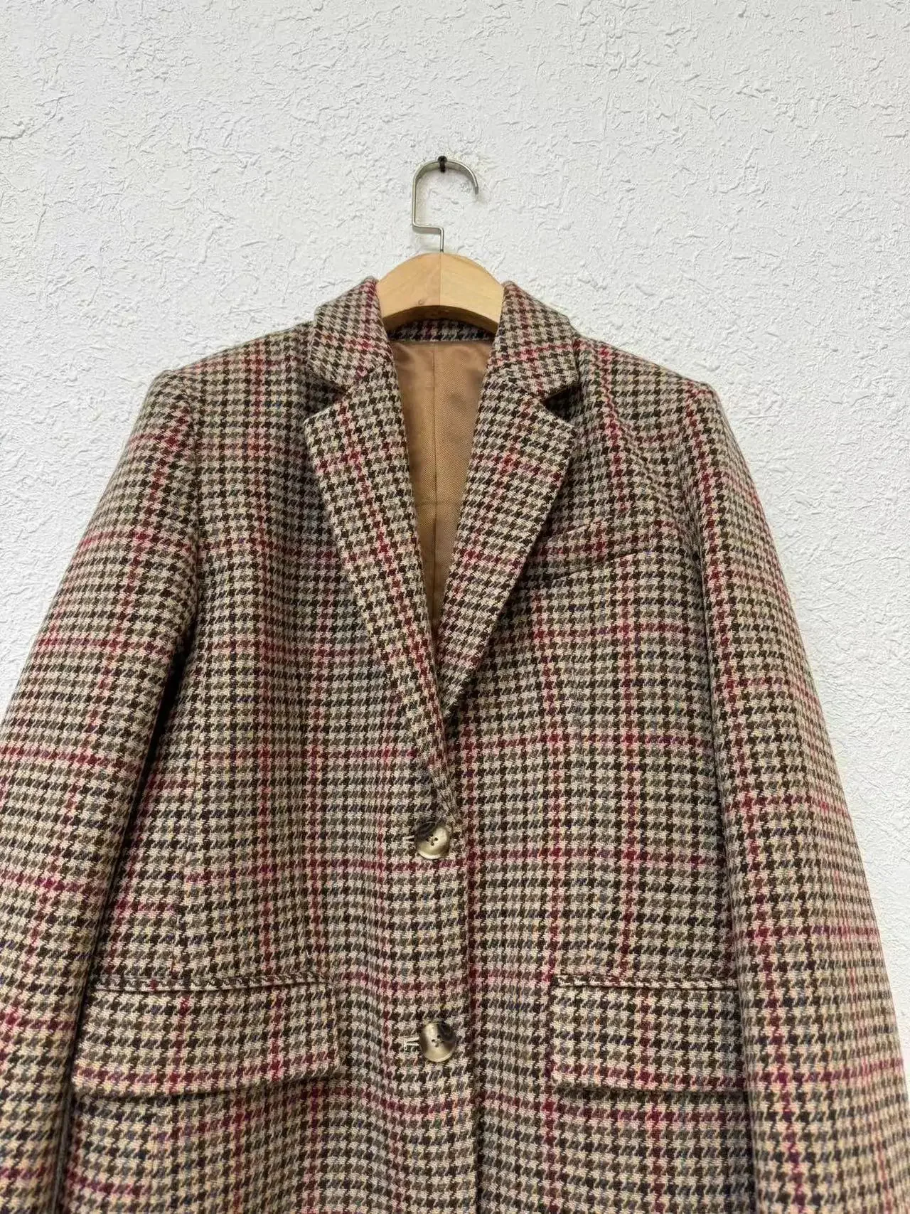 • Design & Style : Featuring a classic houndstooth plaid pattern, it adds a touch of sophistication to any outfit.