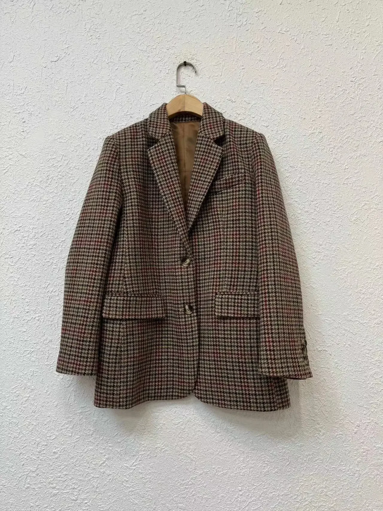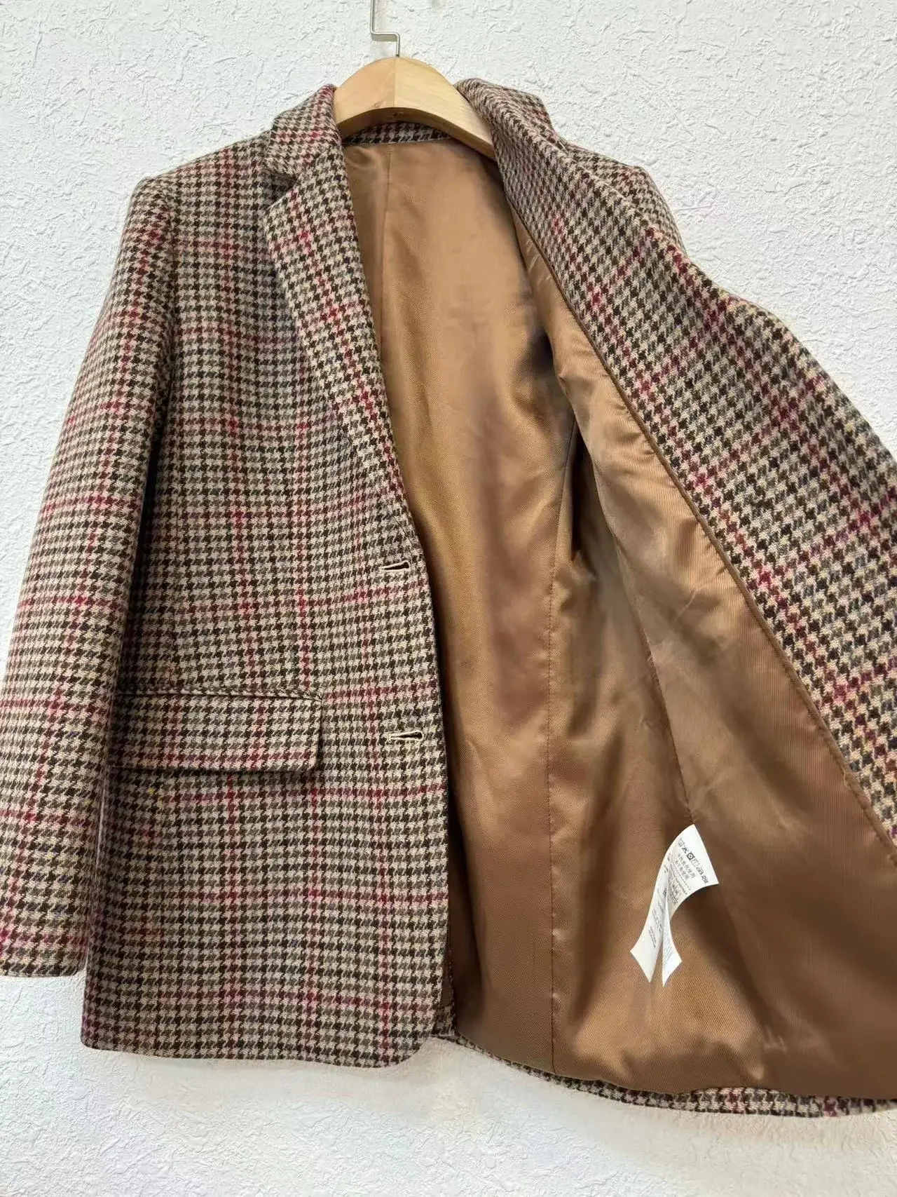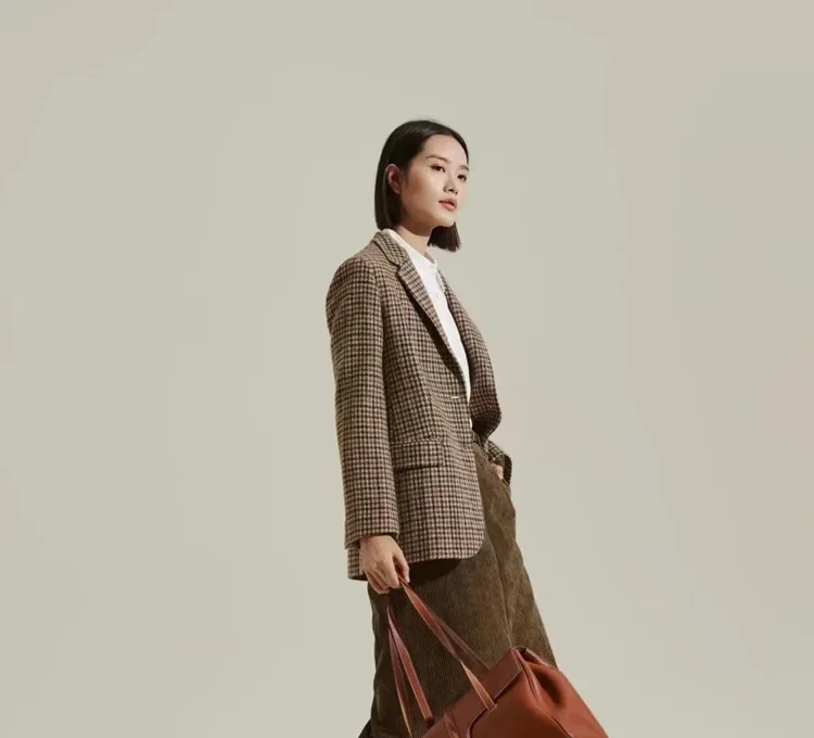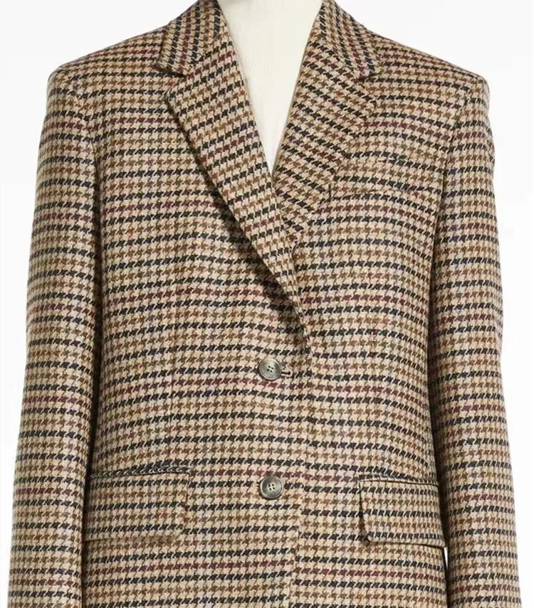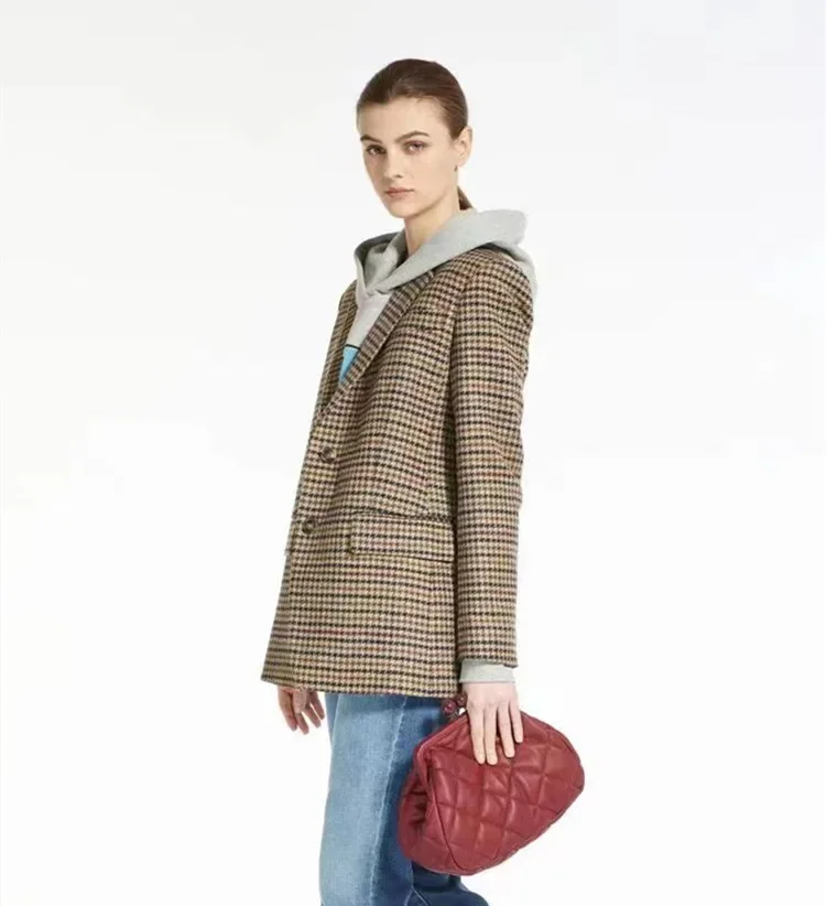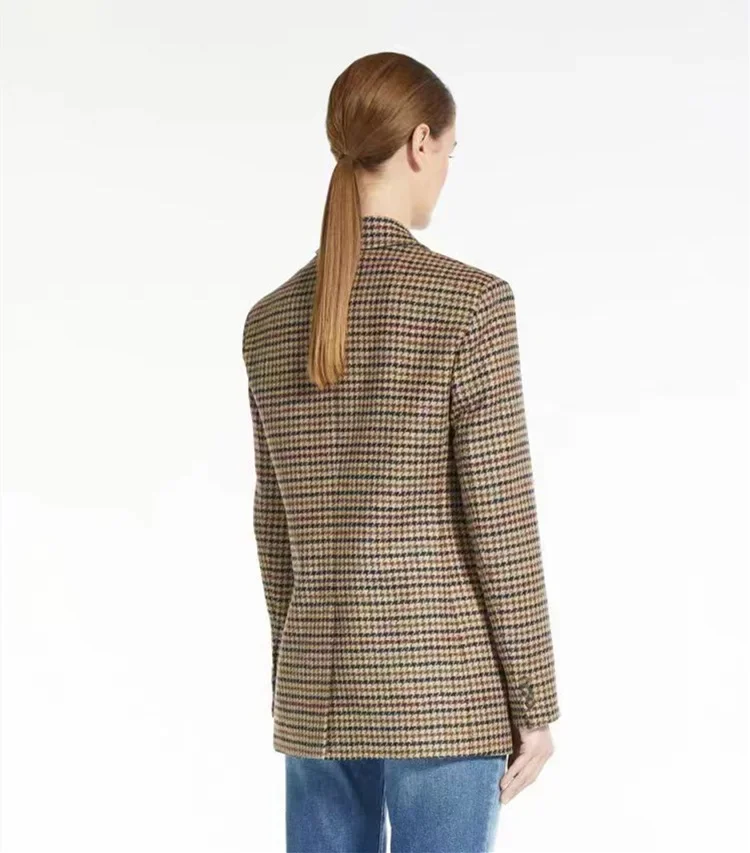 Max Women's Autumn/Winter New Coffee Color Thousand Birds Plaid Single Row Two-Piece Wool Suit Jacket Fashionable and Casual
