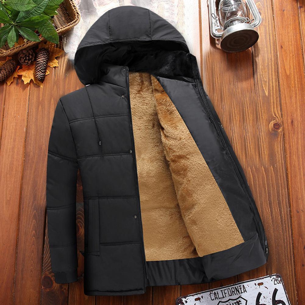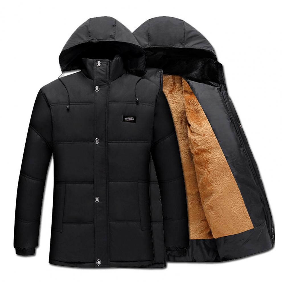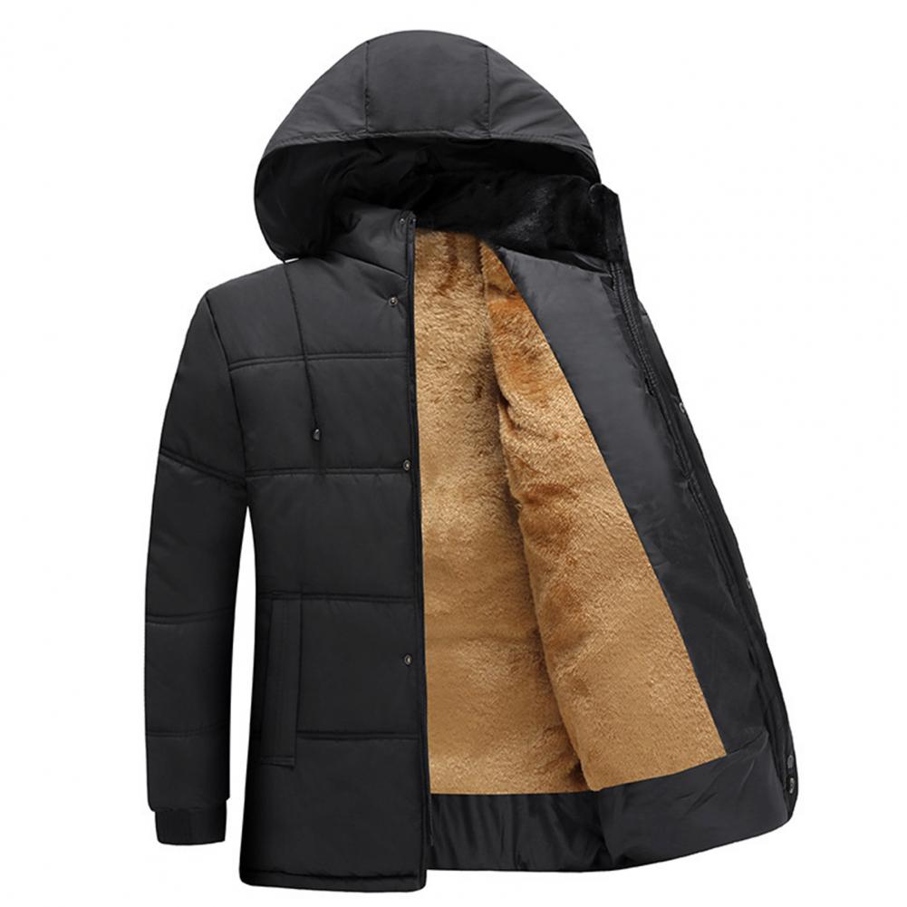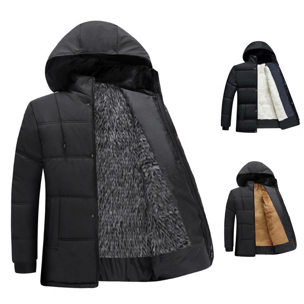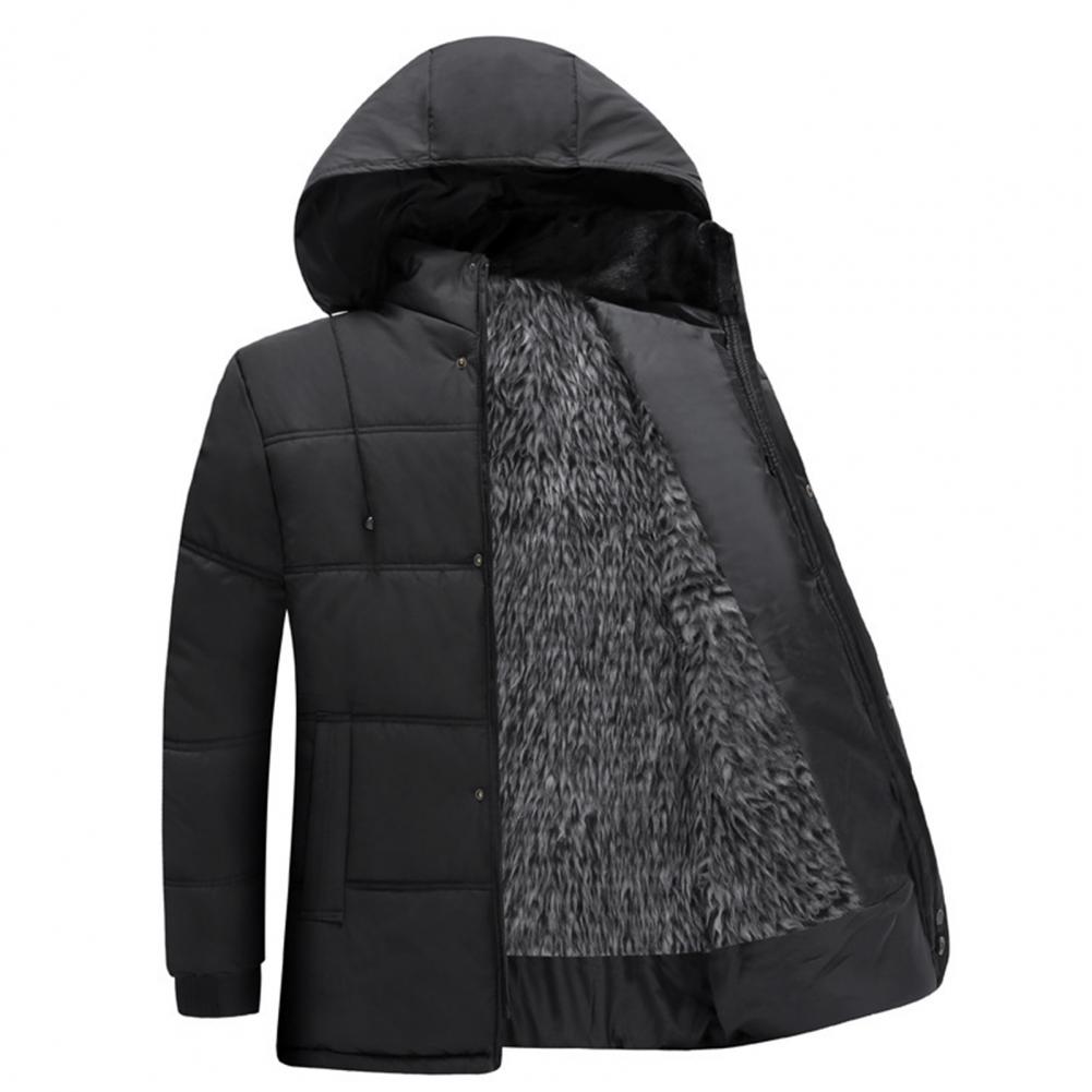 Men Coat Cotton Padded Long Sleeve Solid Plush Lining Single Breasted Keep Warm Drawstring Hood Formal Jacket Coat for Working