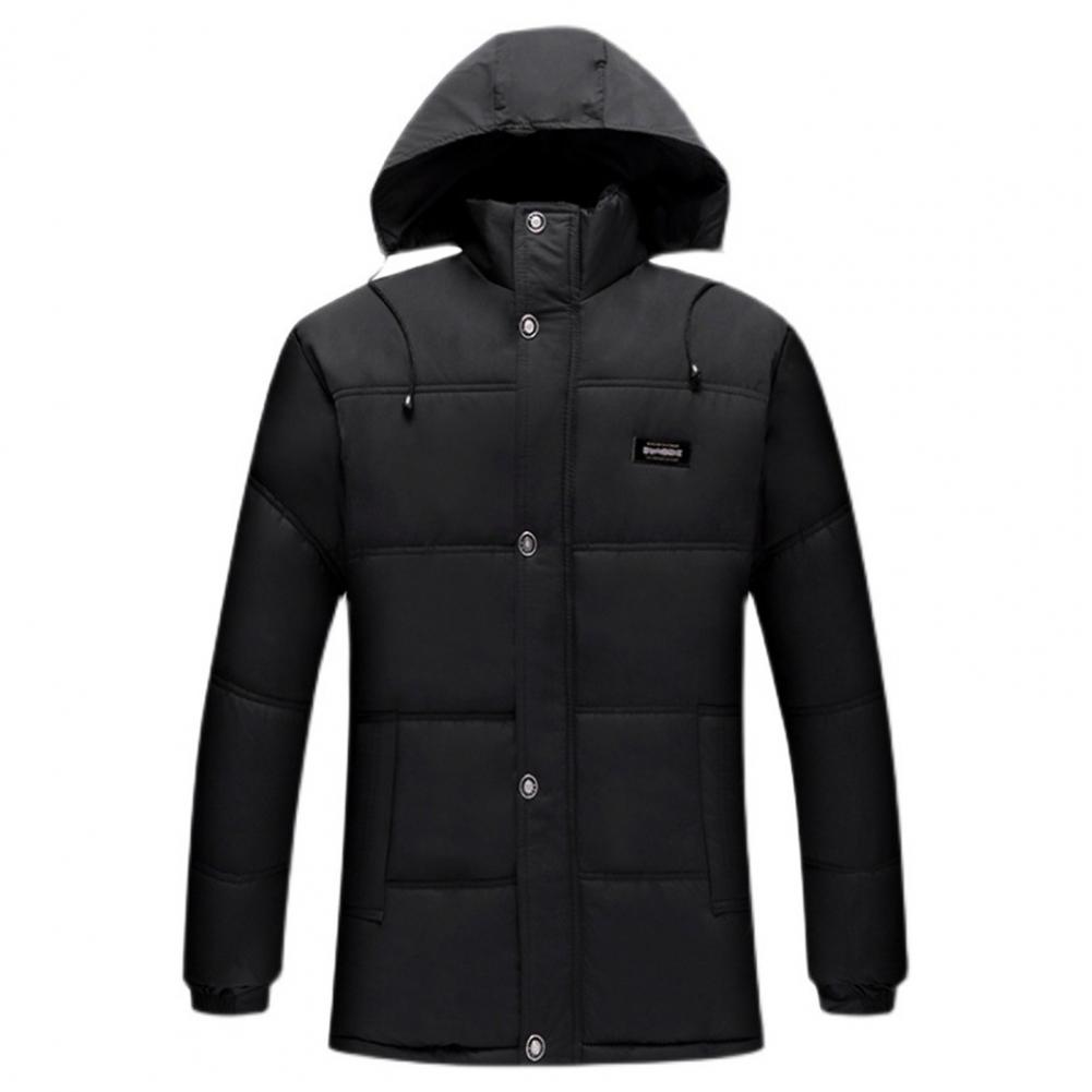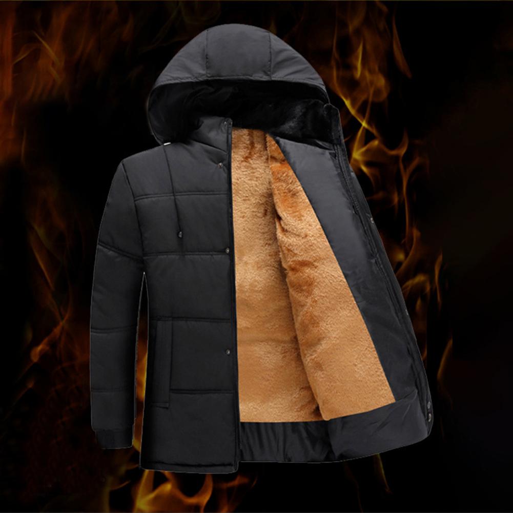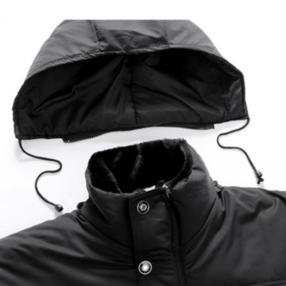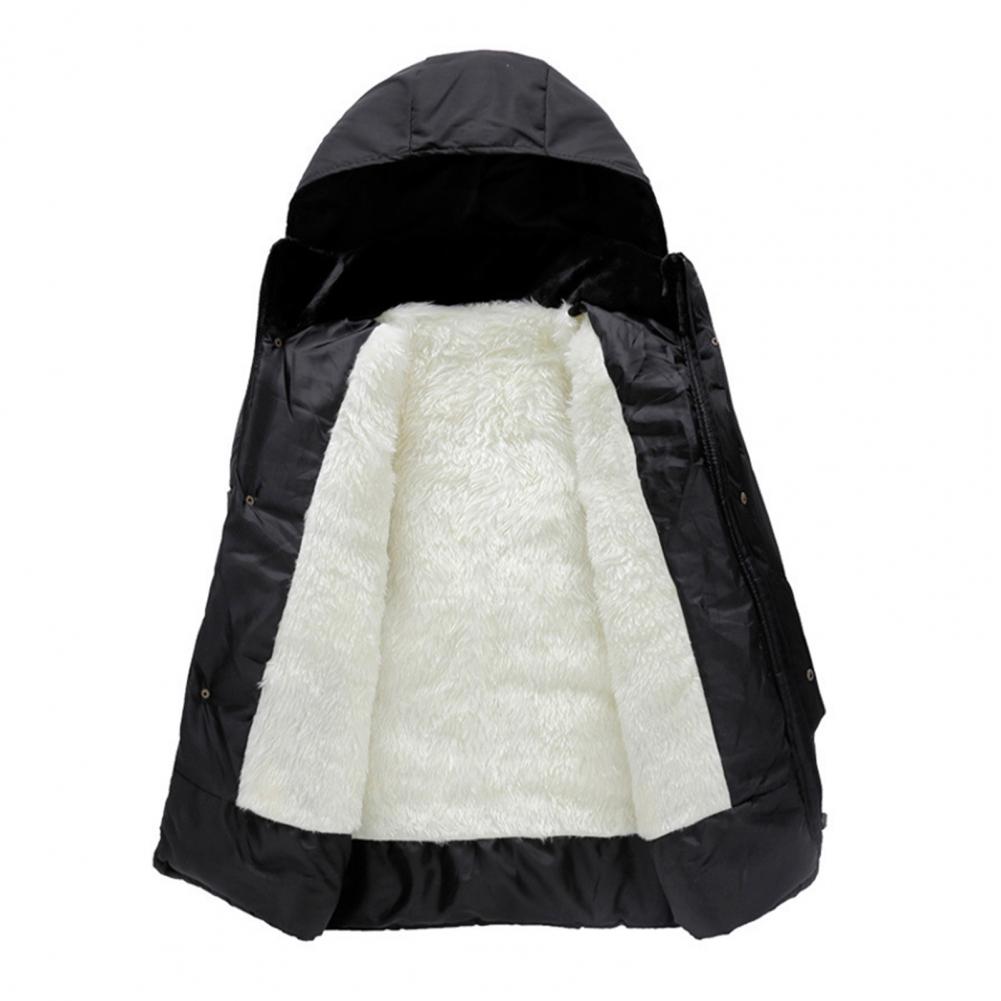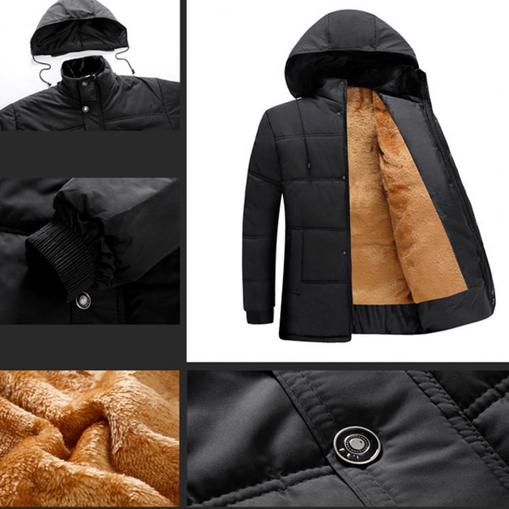 Men Coat Cotton Padded Long Sleeve Solid Plush Lining Single Breasted Keep Warm Drawstring Hood Formal Jacket Coat for Working