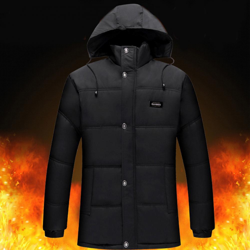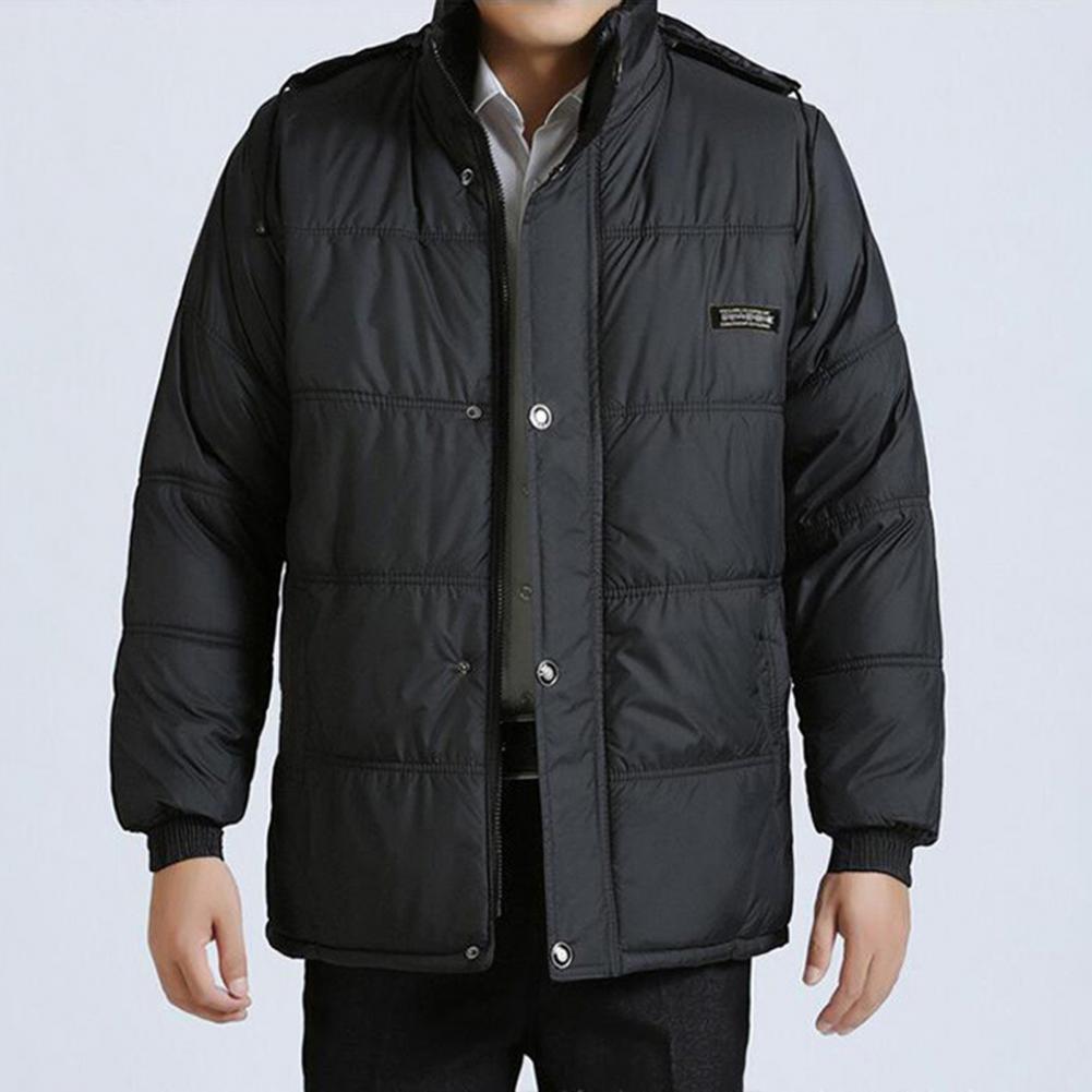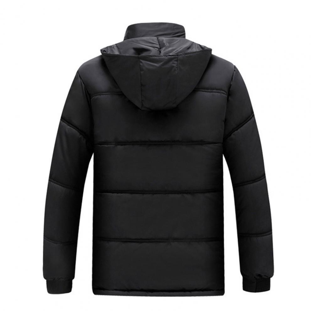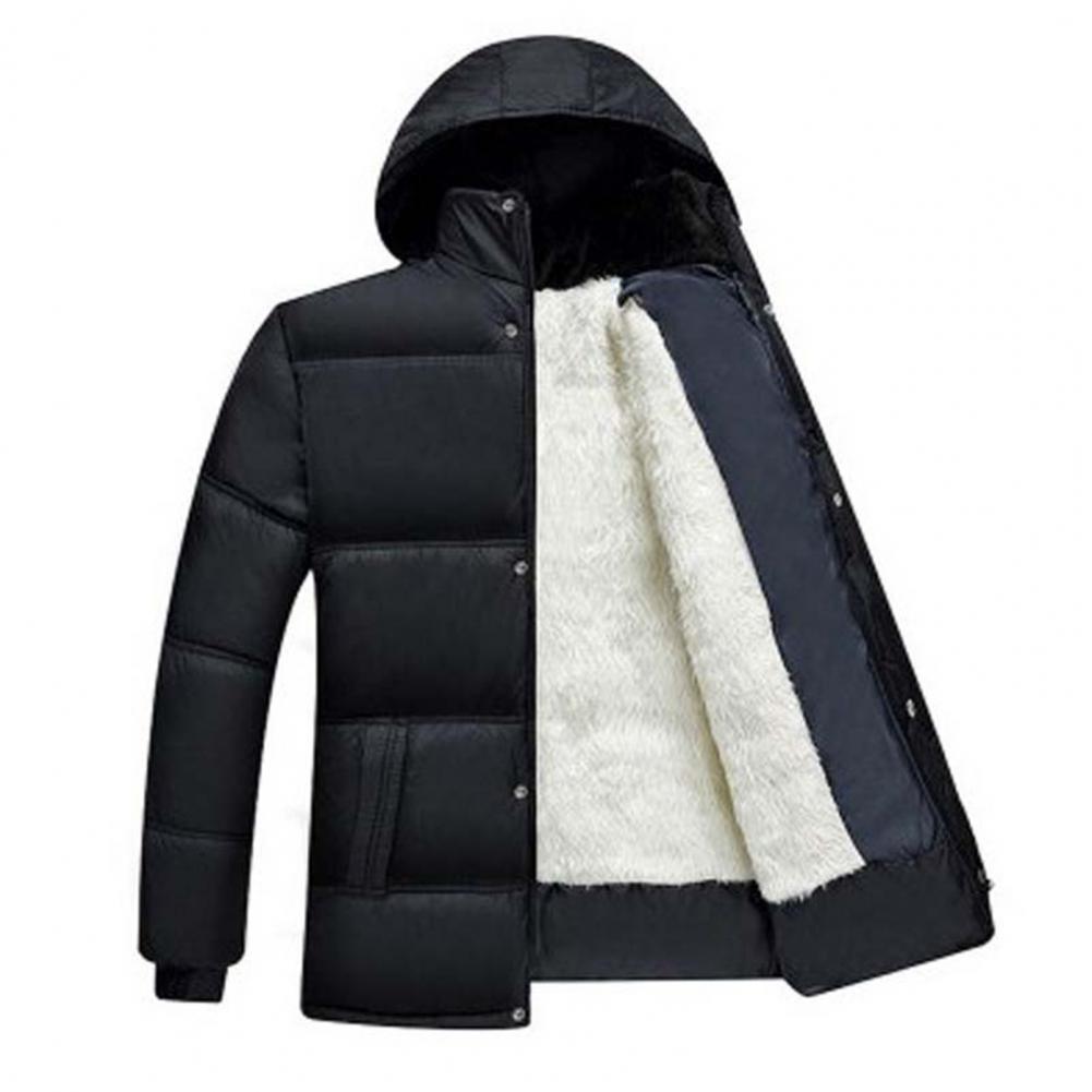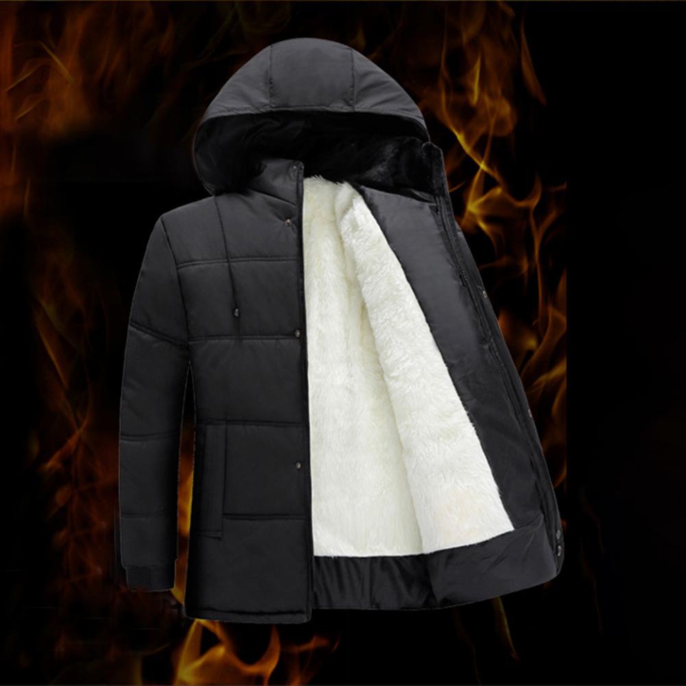 Men Coat Cotton Padded Long Sleeve Solid Plush Lining Single Breasted Keep Warm Drawstring Hood Formal Jacket Coat for Working