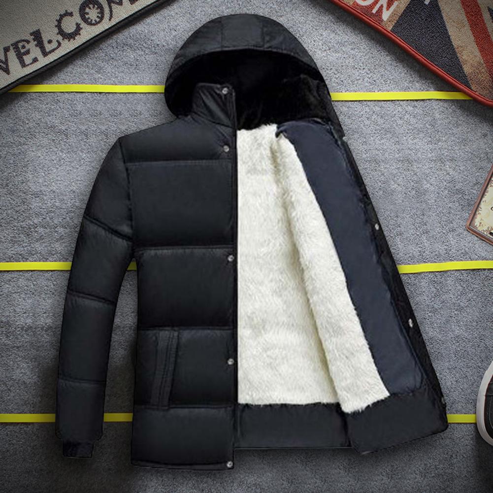 Men Coat Cotton Padded Long Sleeve Solid Color Plush Lining Single Breasted Keep Warm Plus Size Drawstring Hood Formal Jacket Coat for Working