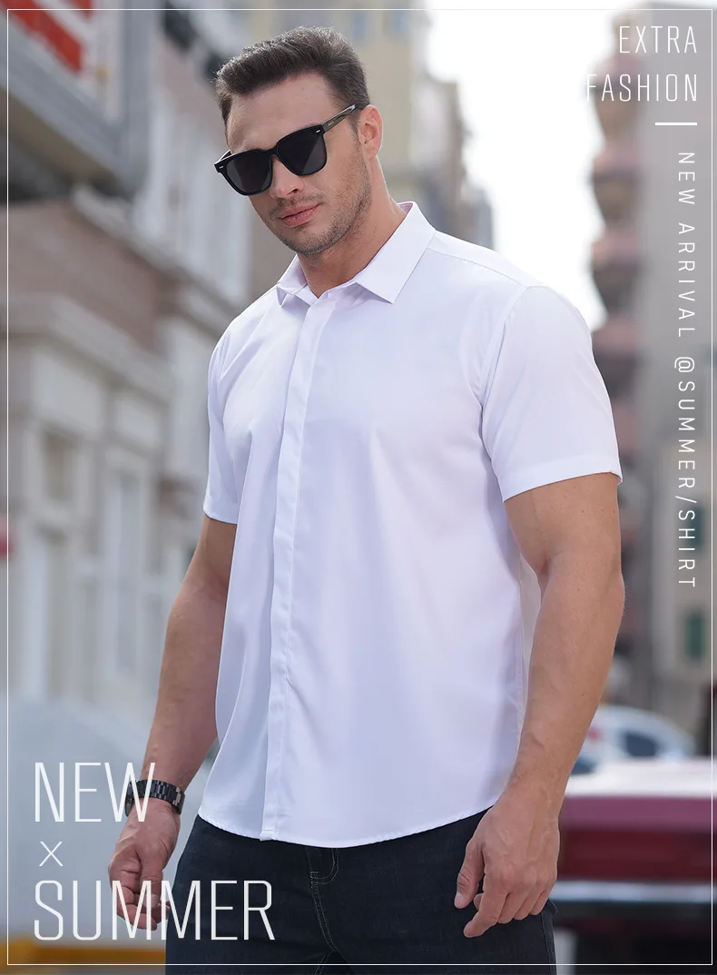 Men Shirt White Short Sleeve Oversize 6XL 7XL 8XL 10XL 12XL Plus Size Formal 2025 Summer Fashion Black Social Casual Dress Shirt