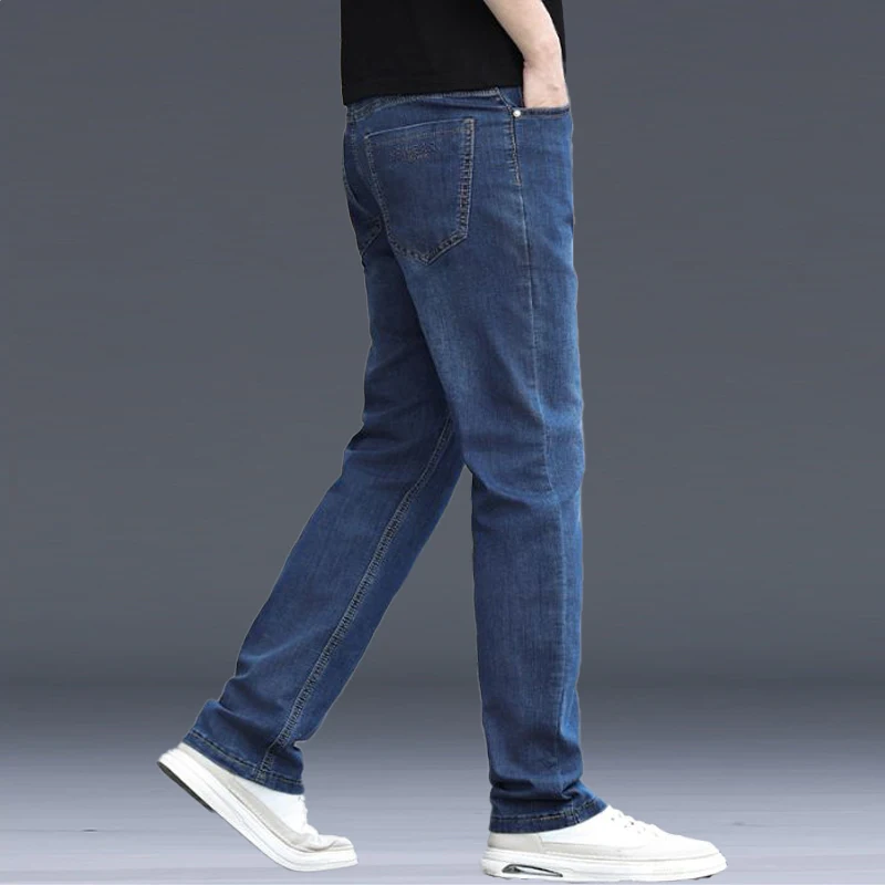 Men Thin Breathable Elasticity Jeans Autumn Daily Versatile Casual Blue-Gray Trousers Men Loose Straight Basic Style Denim Pants
