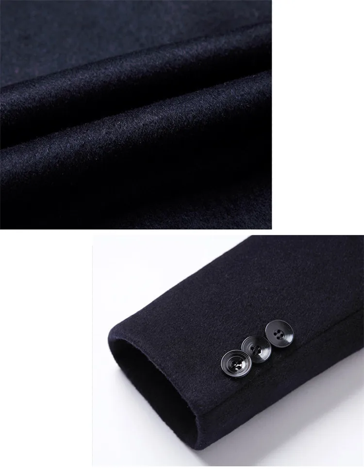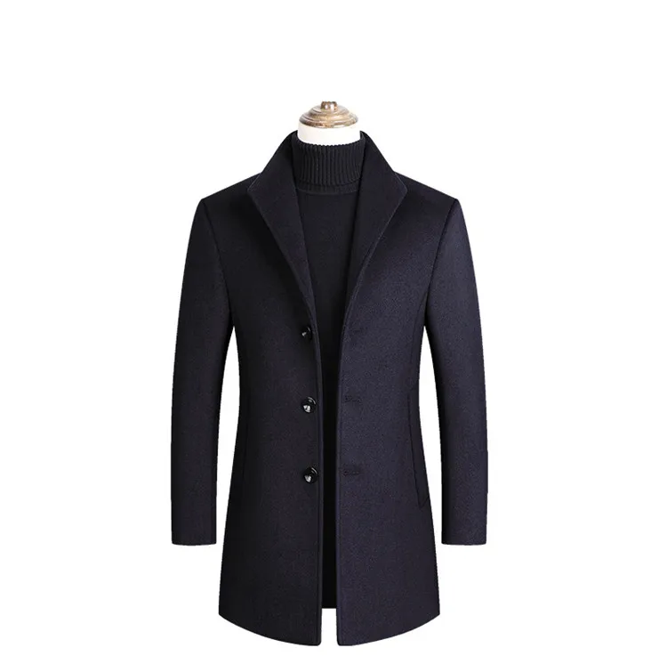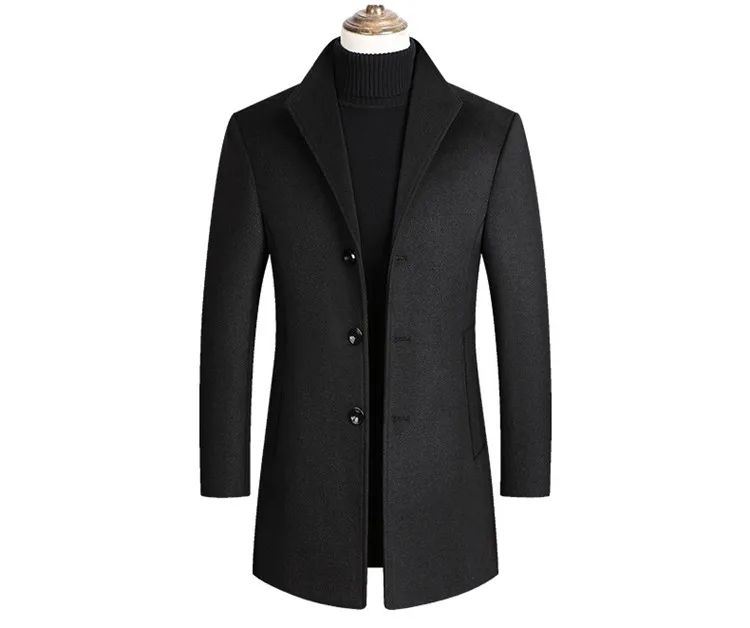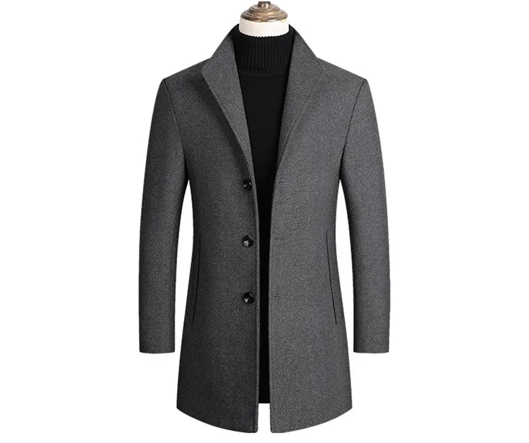 Men Wool Blends Coats Trench Pea Coat 2026 Spring Winter New Solid Color High Quality Men's Wool Jacket Luxurious Brand Clothing