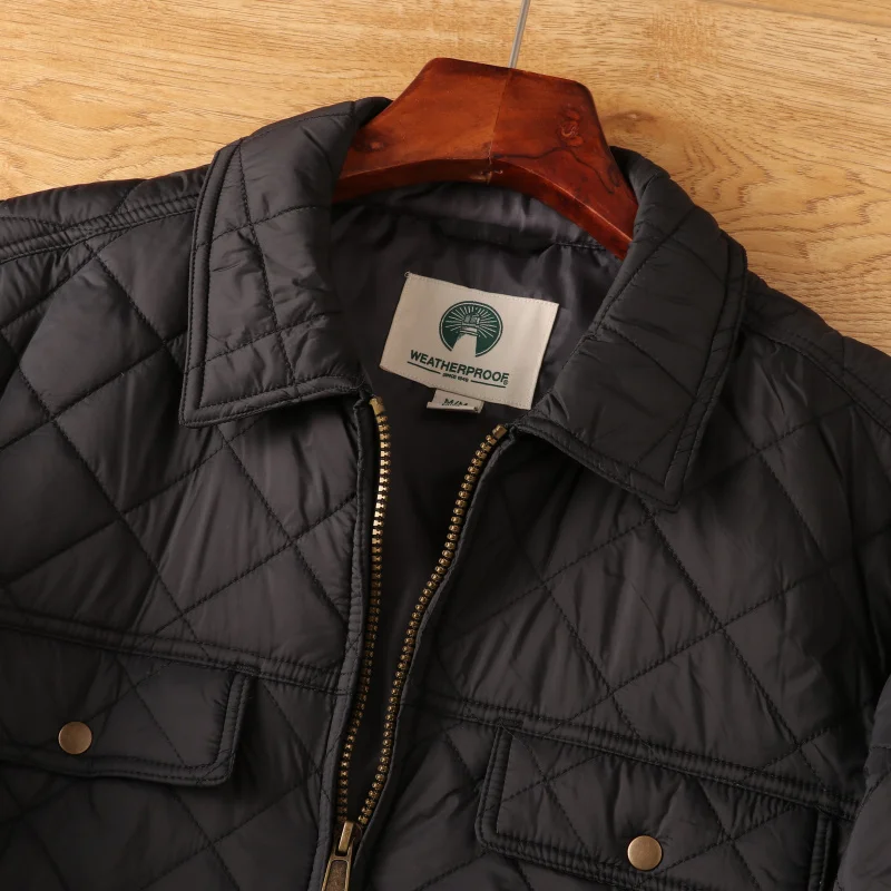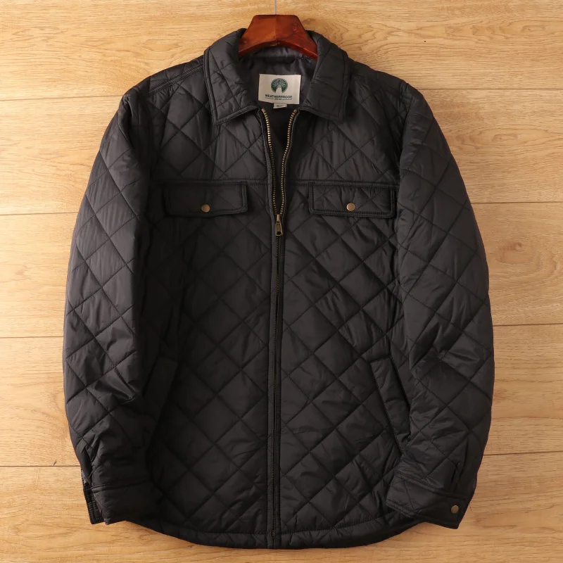 Mens Bomber Jackets Diamond Quilted Fall Winter Rib Varsity Lightweight Winter Coat Waterproof Thermal Outdoor Jacket