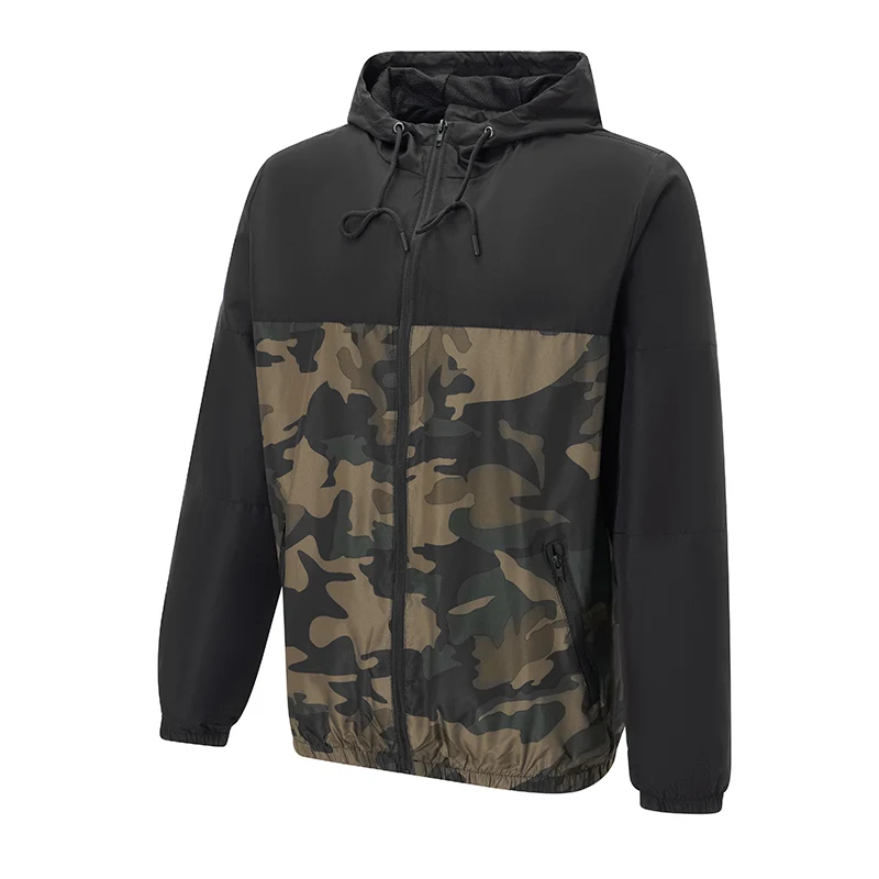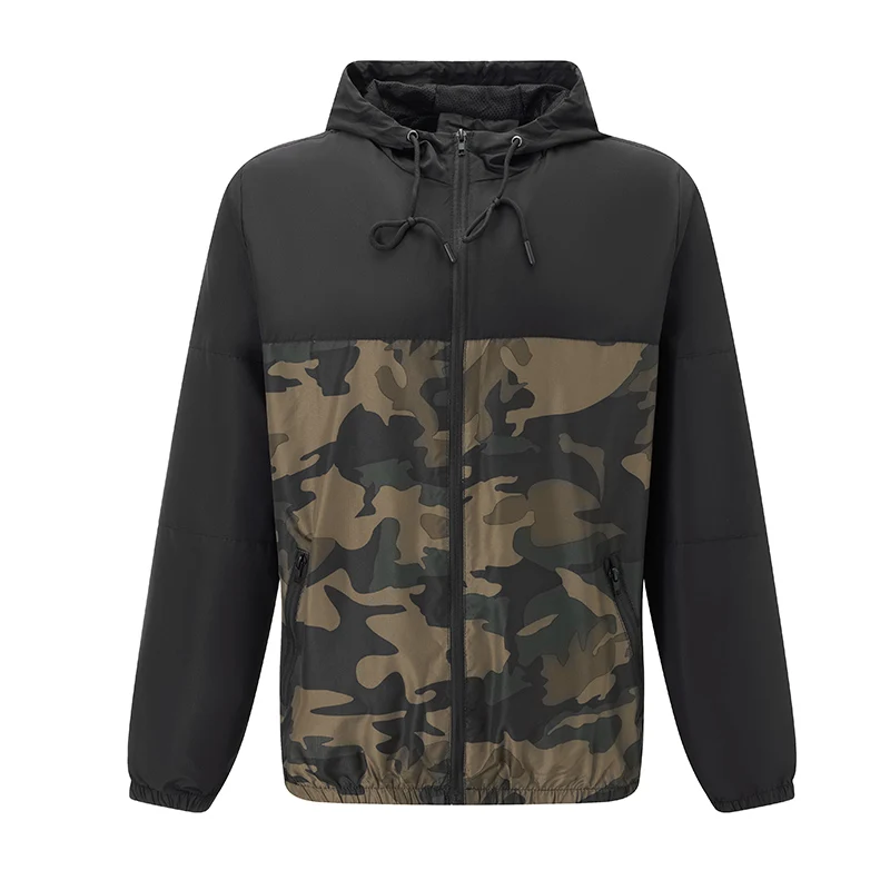 Mens Fall Camouflage Jackets Breathable Mesh Lined Long Sleeve Zipper Coat with Hood Athletic Tops Casual Streetwear