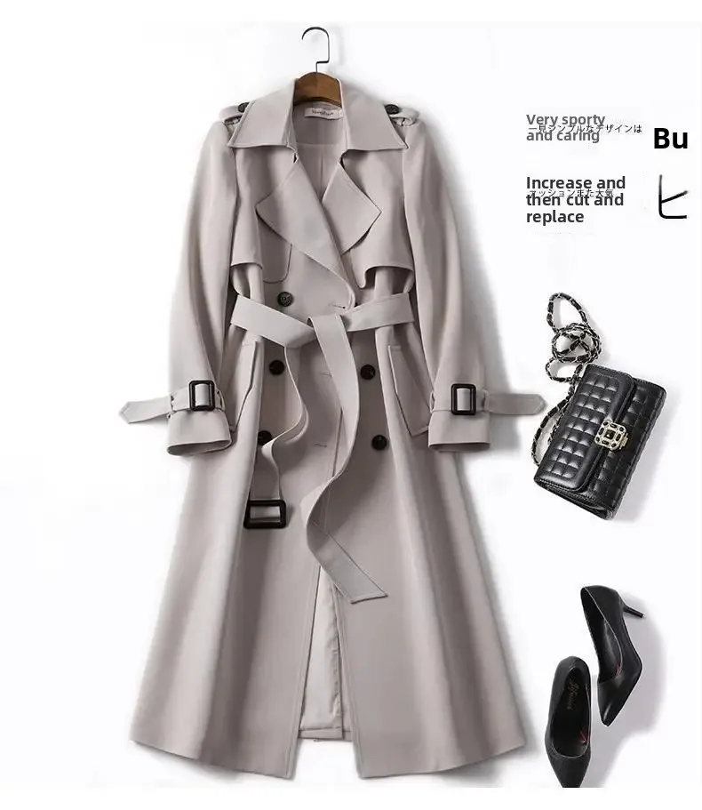 Mid-Length Women's Coat Over-Knee British Style Windbreaker Long Sleeve Zipper Closure Casual Fashion Outerwear Coat