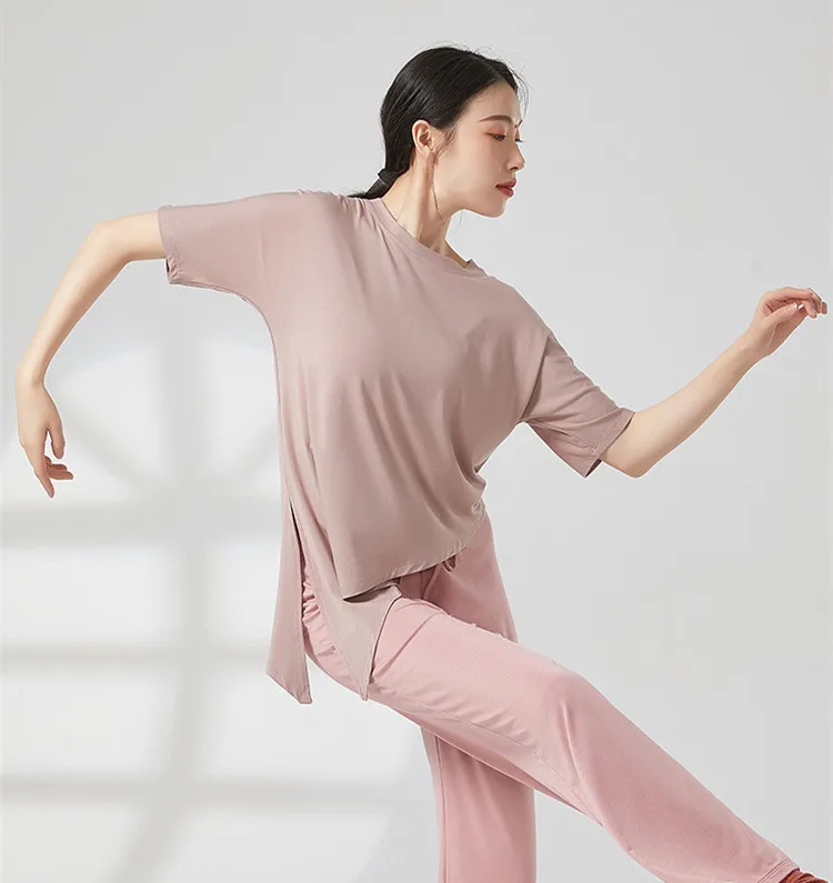 Modern Dance Training Top Clothes Women Soft Loose Irregular Short Sleeve Modal T-shirt Art Test Performance Basic Costume New
