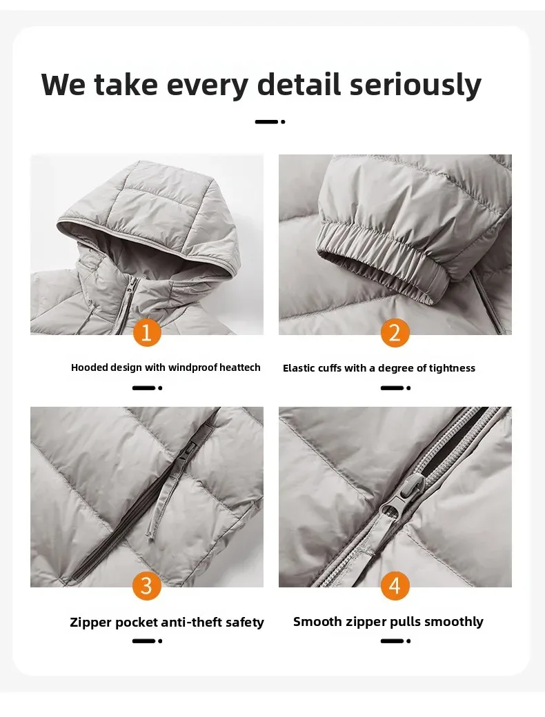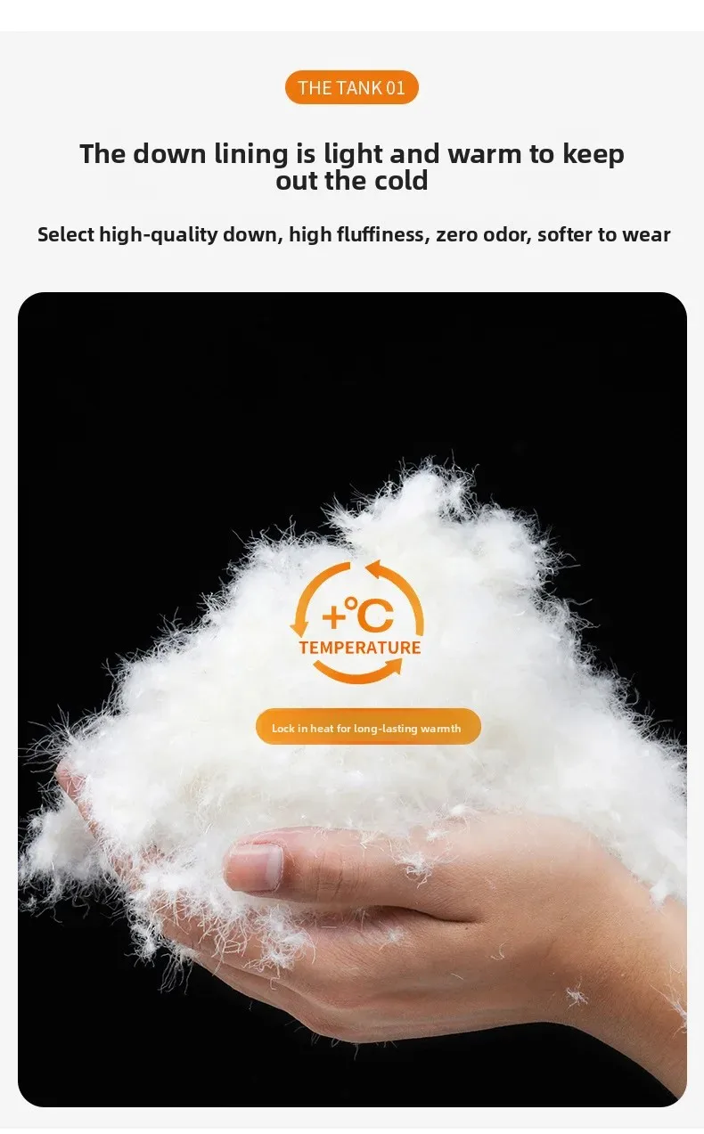 • White Duck Down Filling : Filled with high-quality white duck down, this jacket ensures maximum insulation and comfort, keeping you warm in the coldest weather.