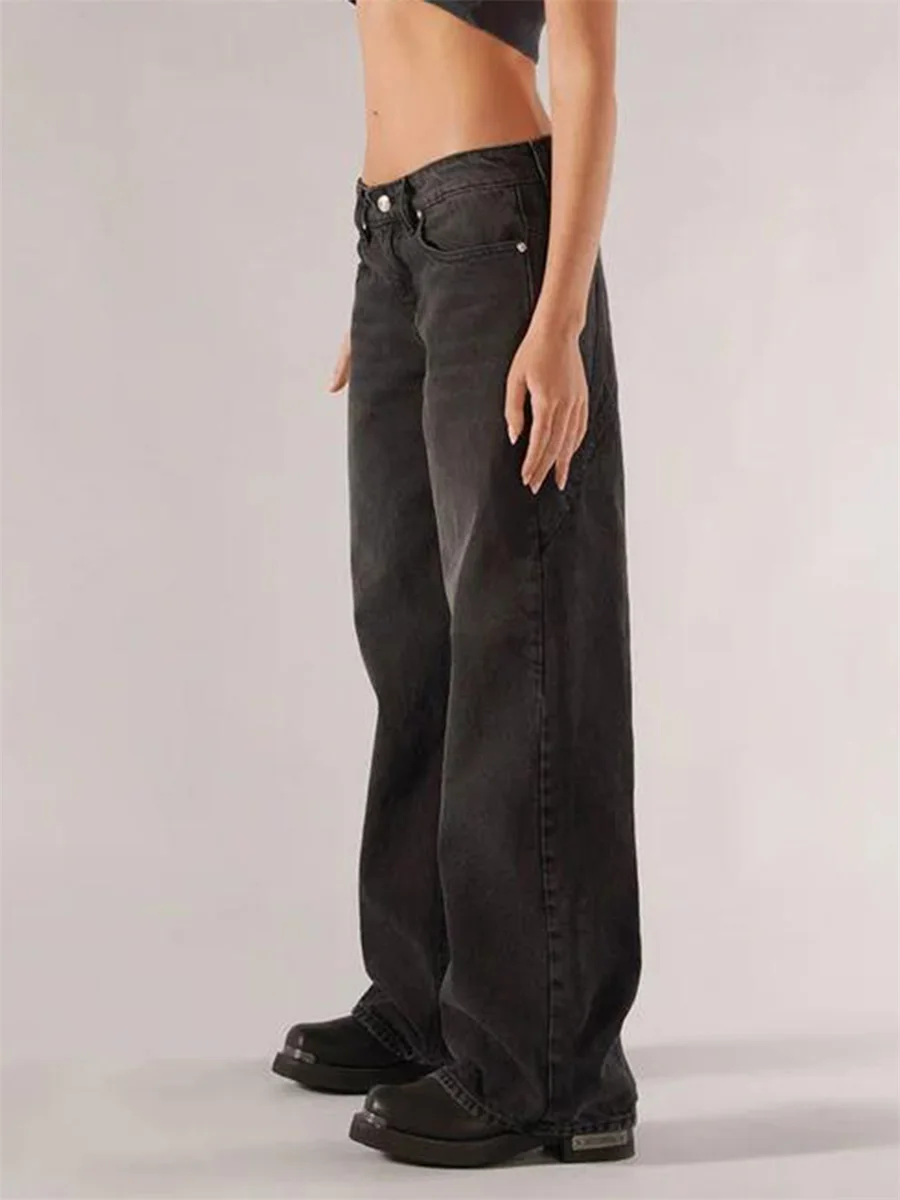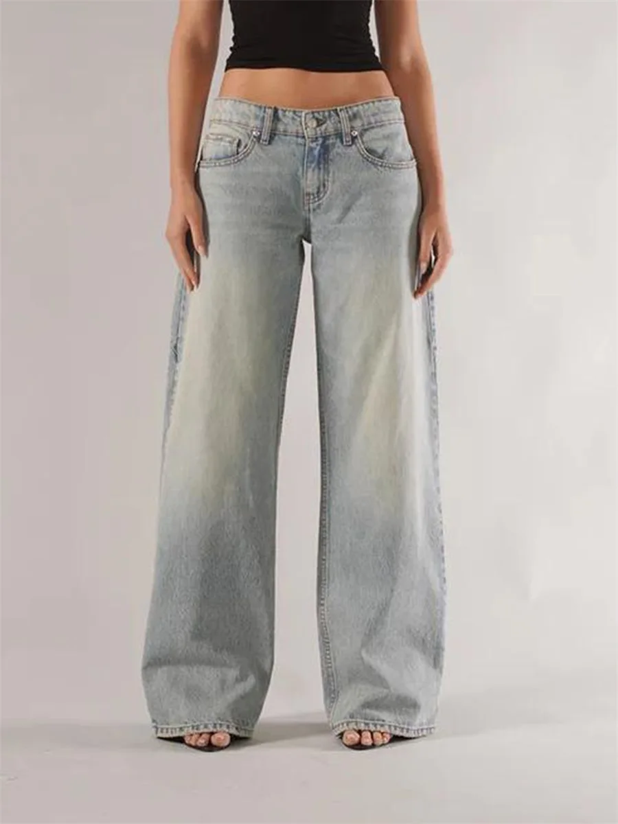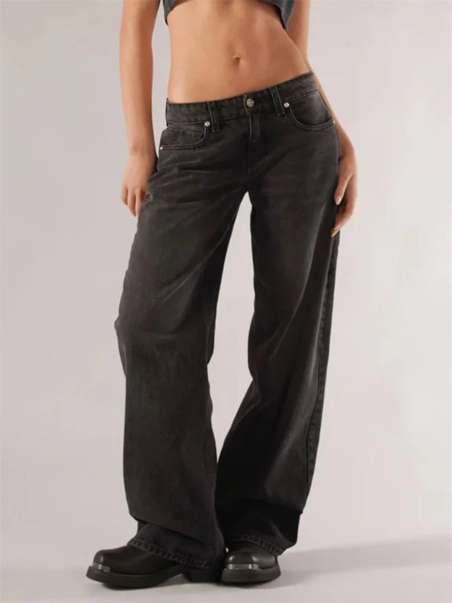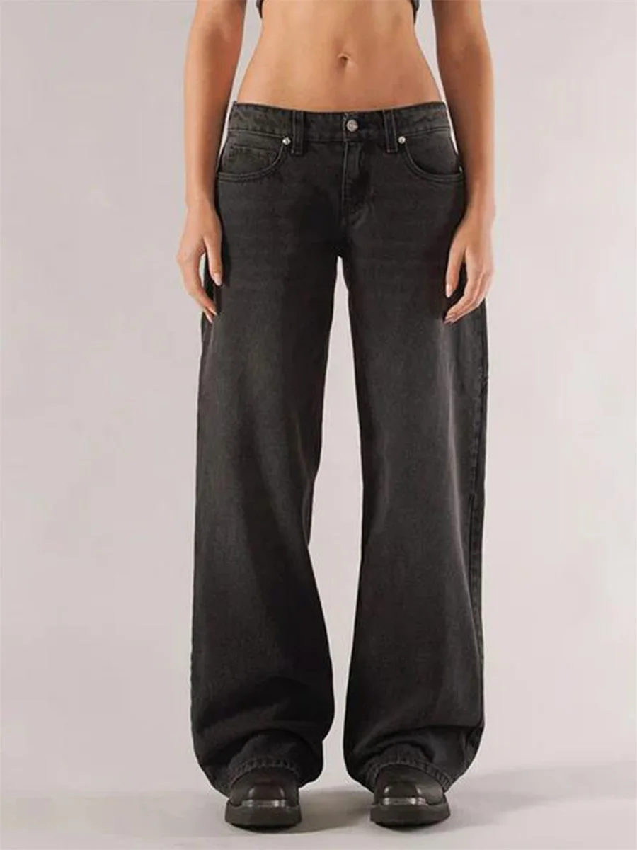 New Fashion Women Fall Jeans With Pockets Fashion Loose Fit Casual Solid Low Rise Wide Leg Denim Pants Hot Sale S-XL