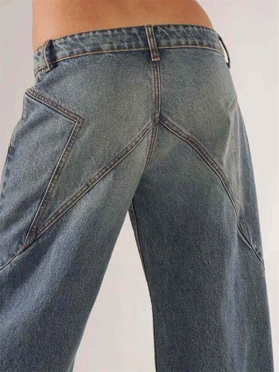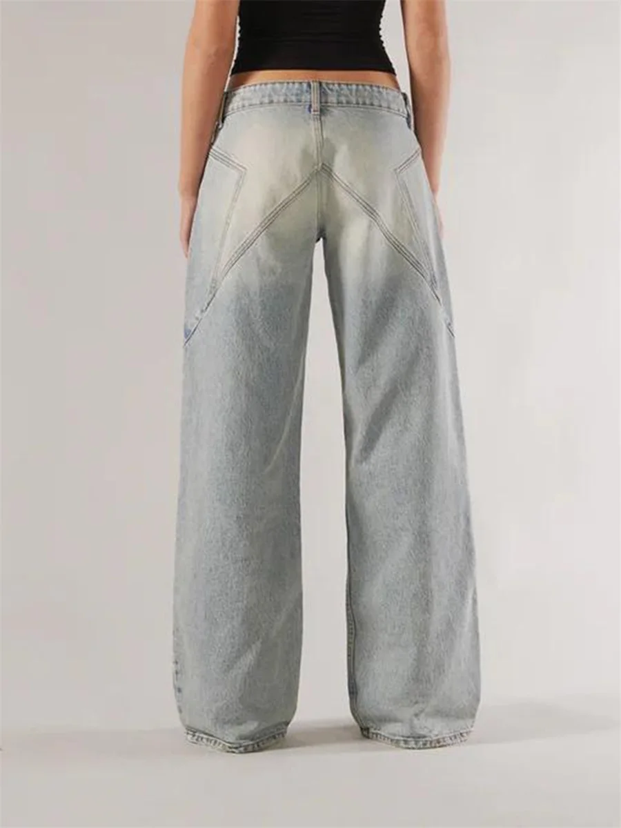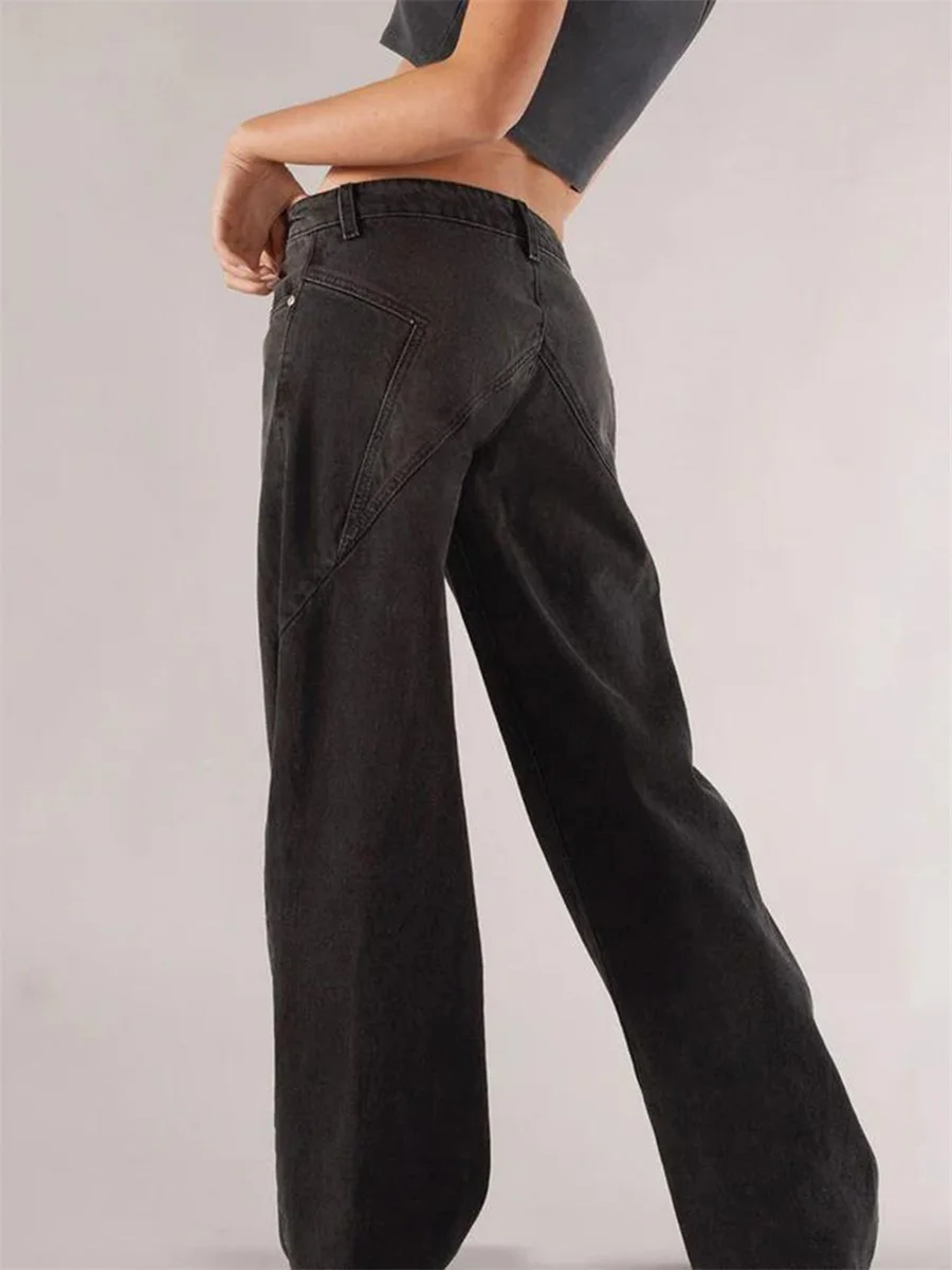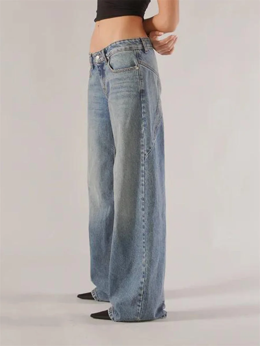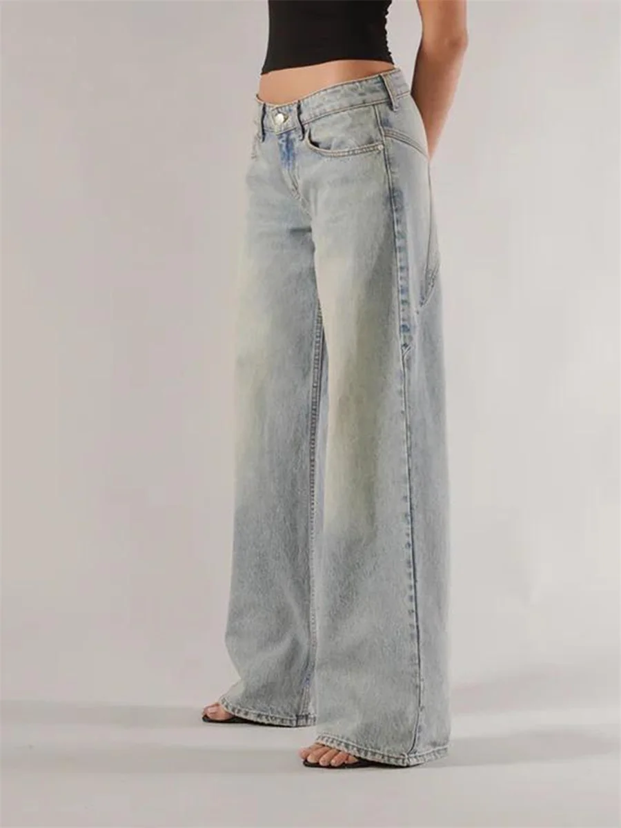 New Fashion Women Fall Jeans With Pockets Fashion Loose Fit Casual Solid Low Rise Wide Leg Denim Pants Hot Sale S-XL