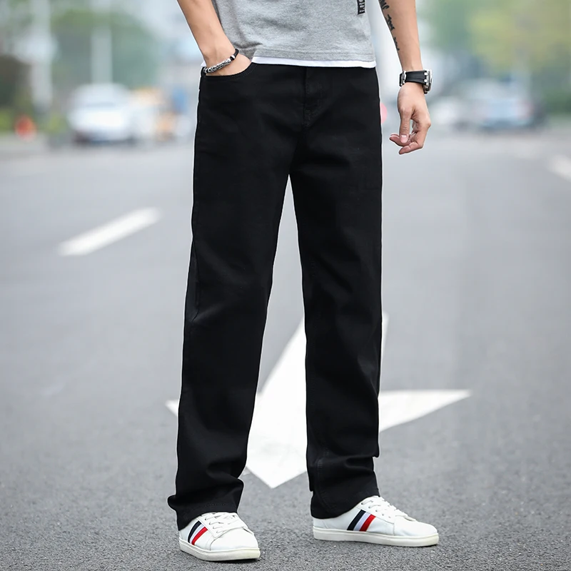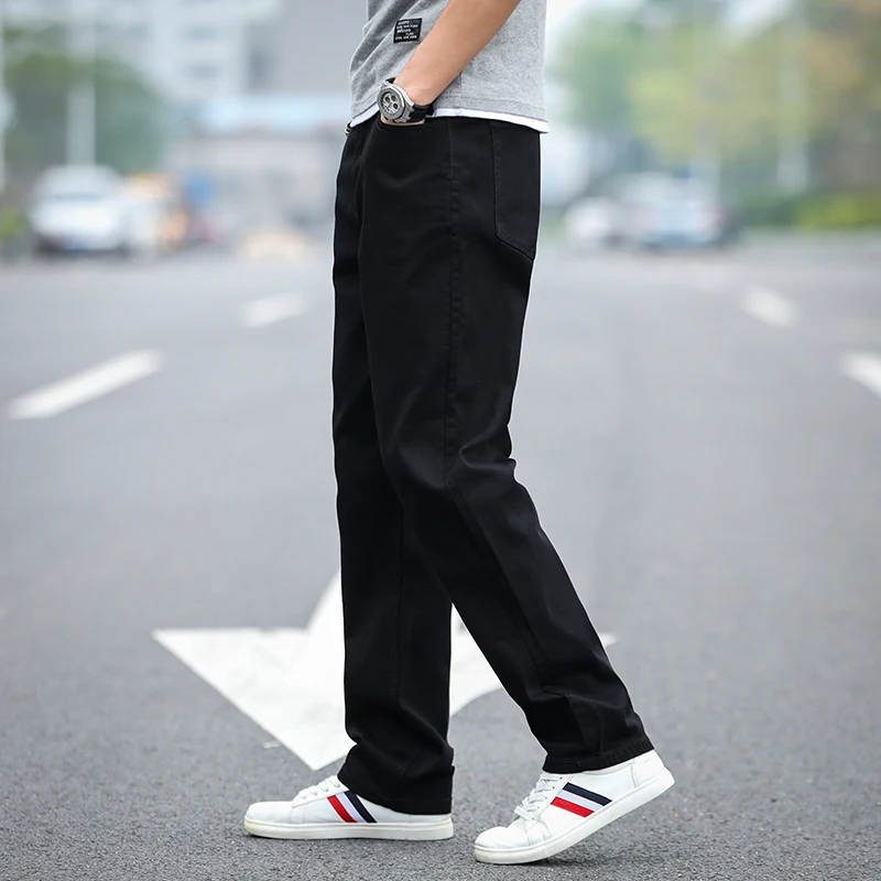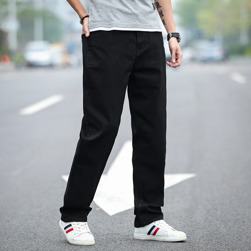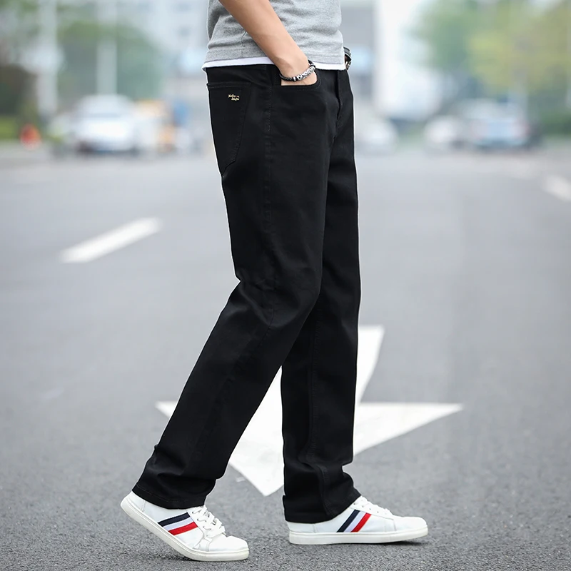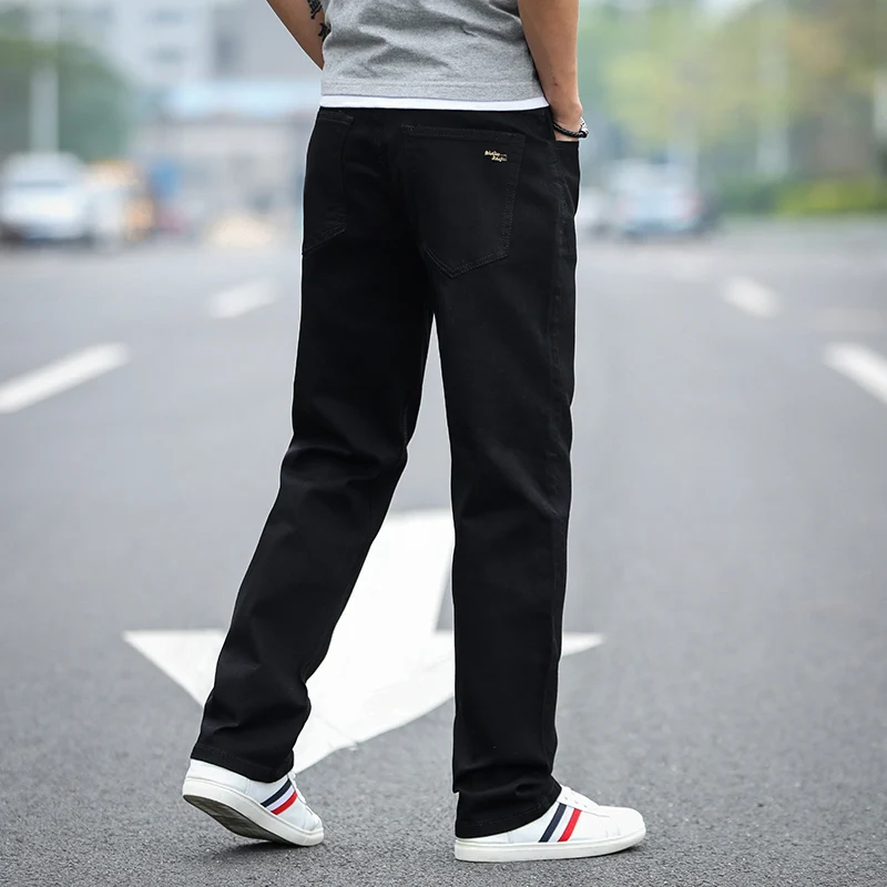 New Men's Classic Straight Black Jeans Fashion Business Casual Elastic Loose Trousers Male Brand Pants Plus Size 40 42 44