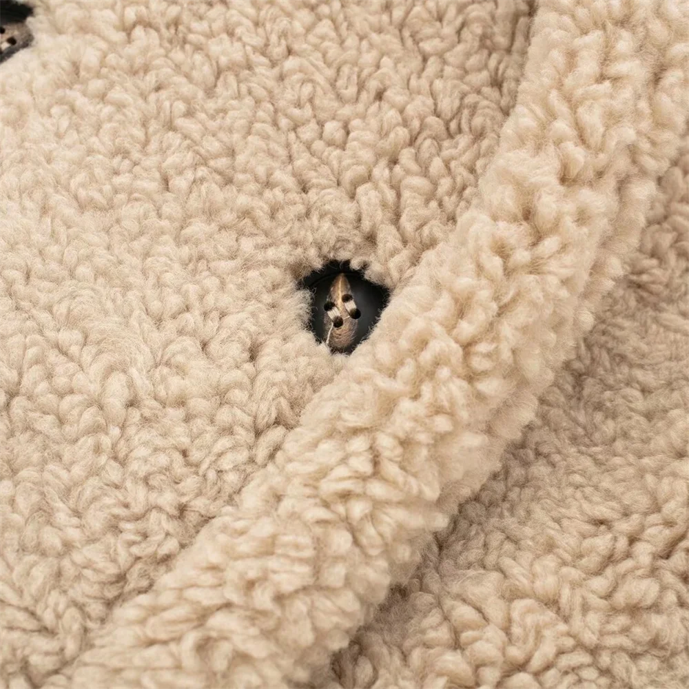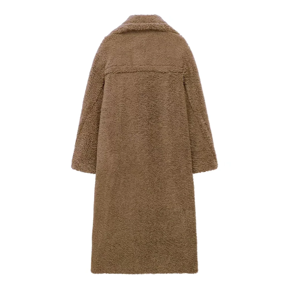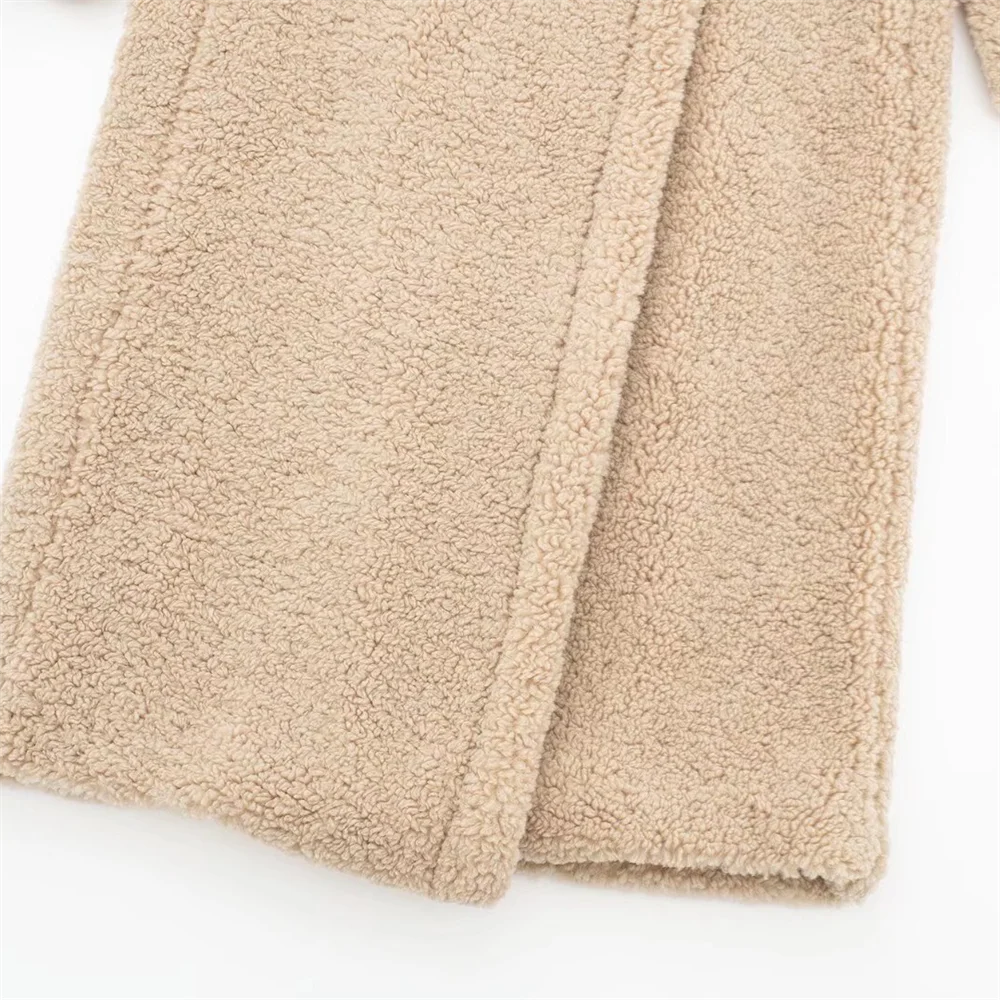 PB&ZA2026 Winter New Women's Clothing Style Simple and High end Sense Flip Collar Lamb Wool Fleece Thick Long Coat Coat
