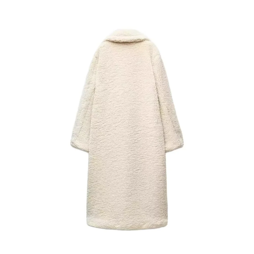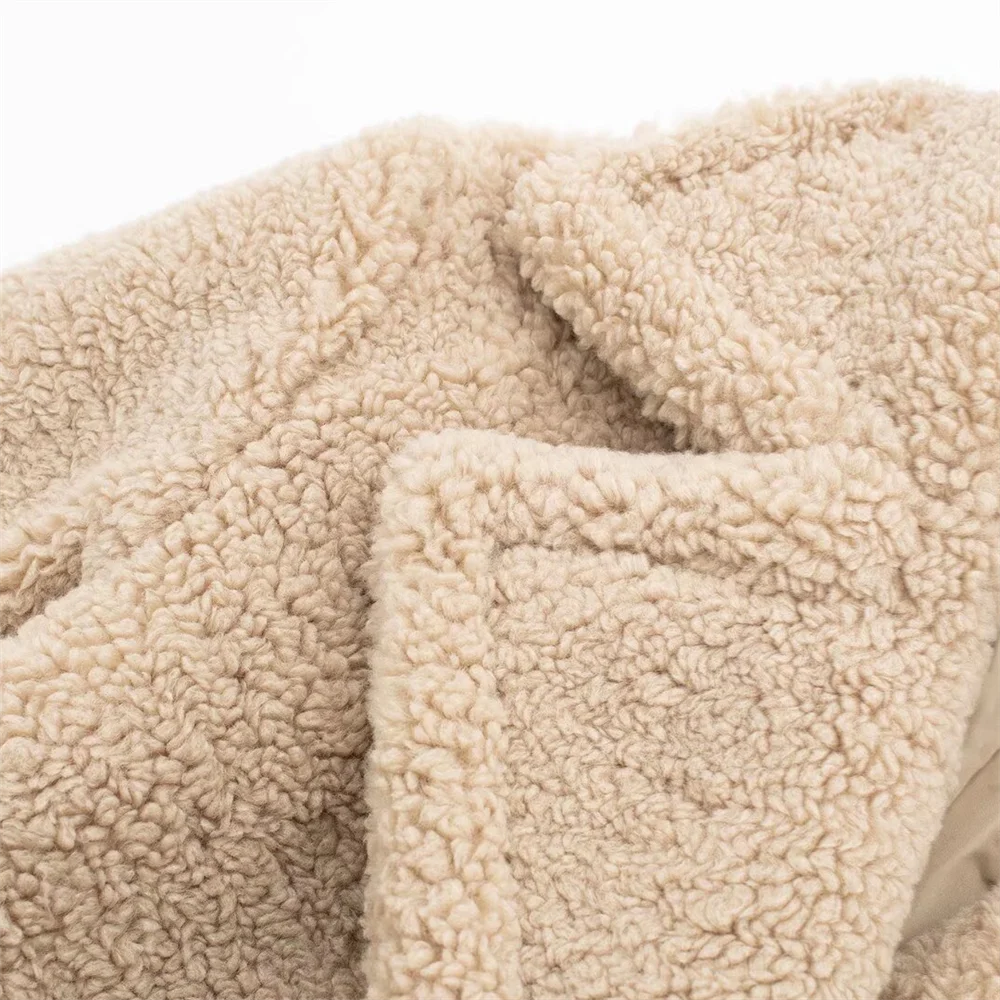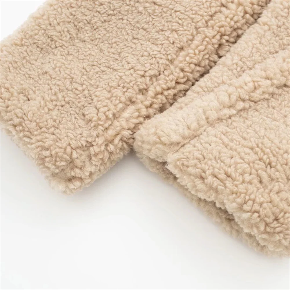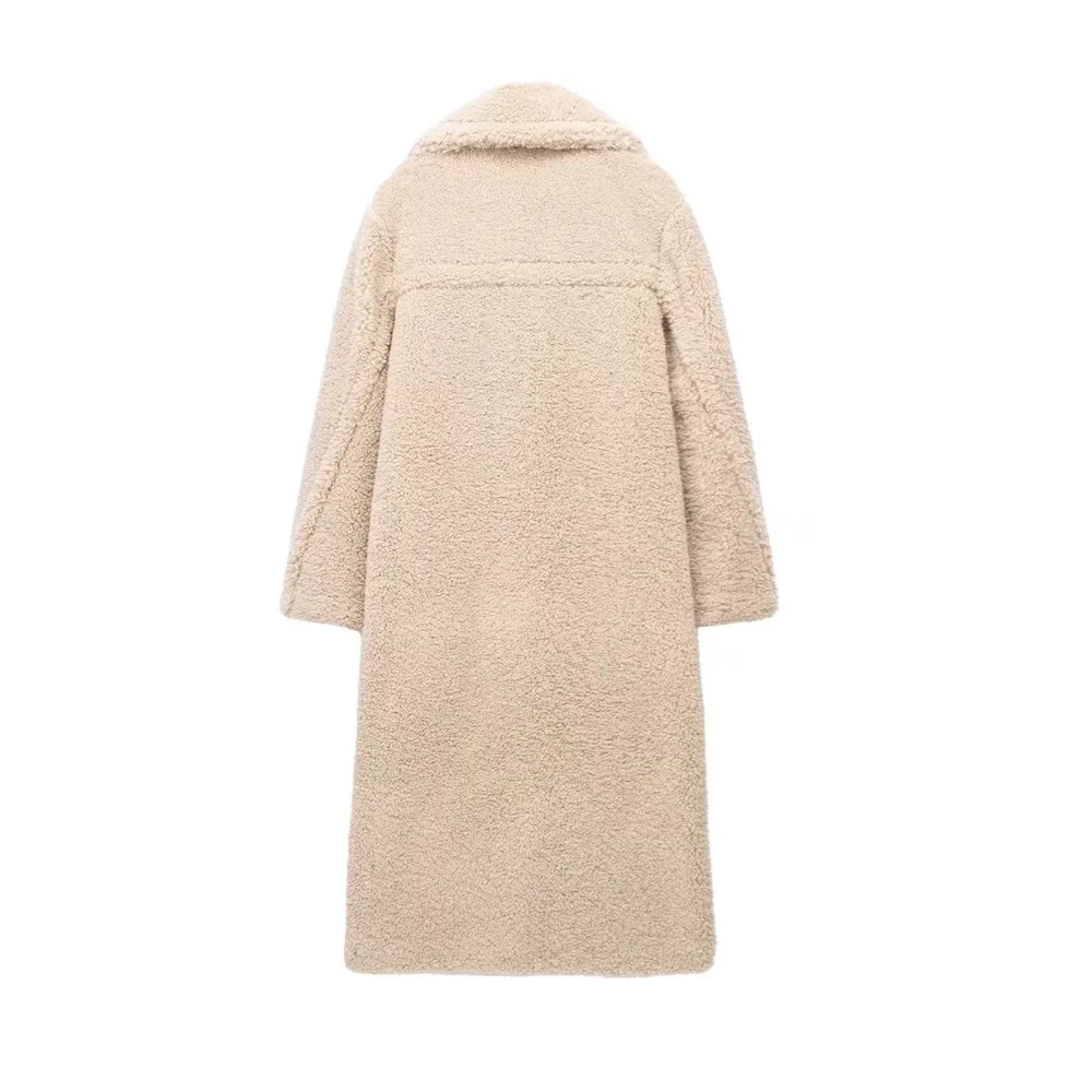 PB&ZA2026 Winter New Women's Clothing Style Simple and High end Sense Flip Collar Lamb Wool Fleece Thick Long Coat Coat