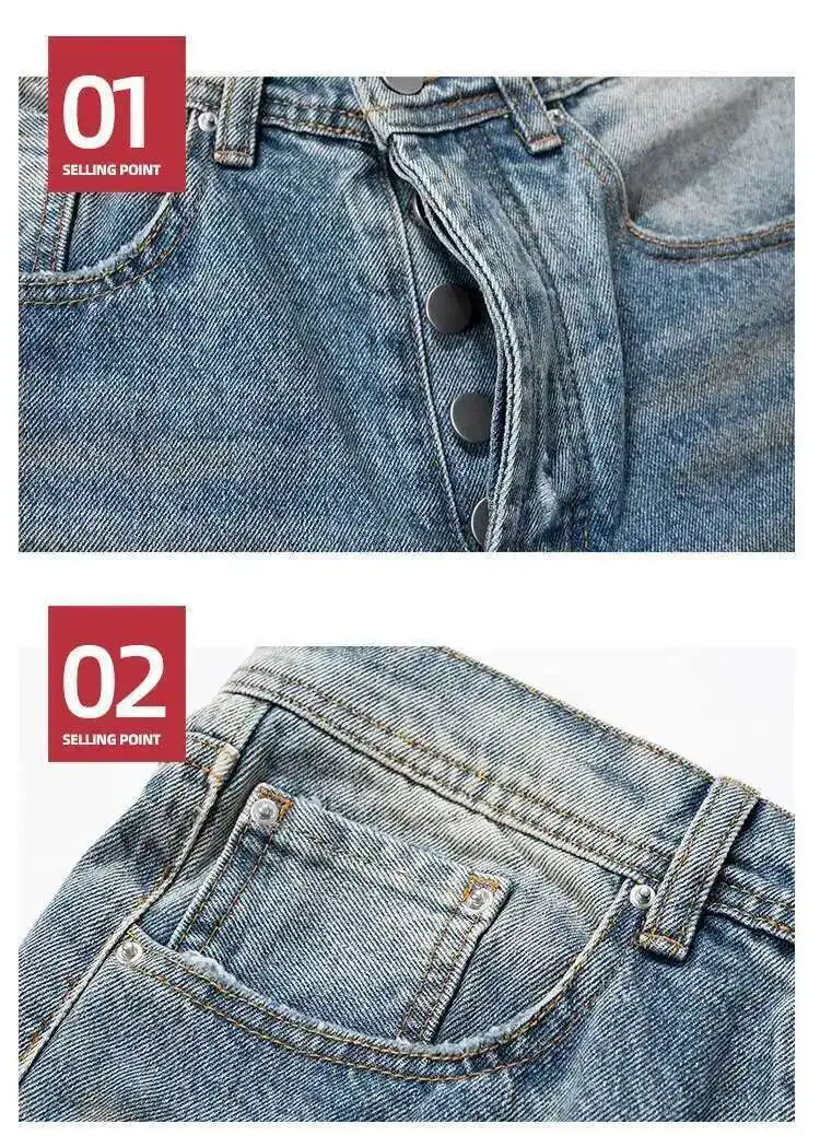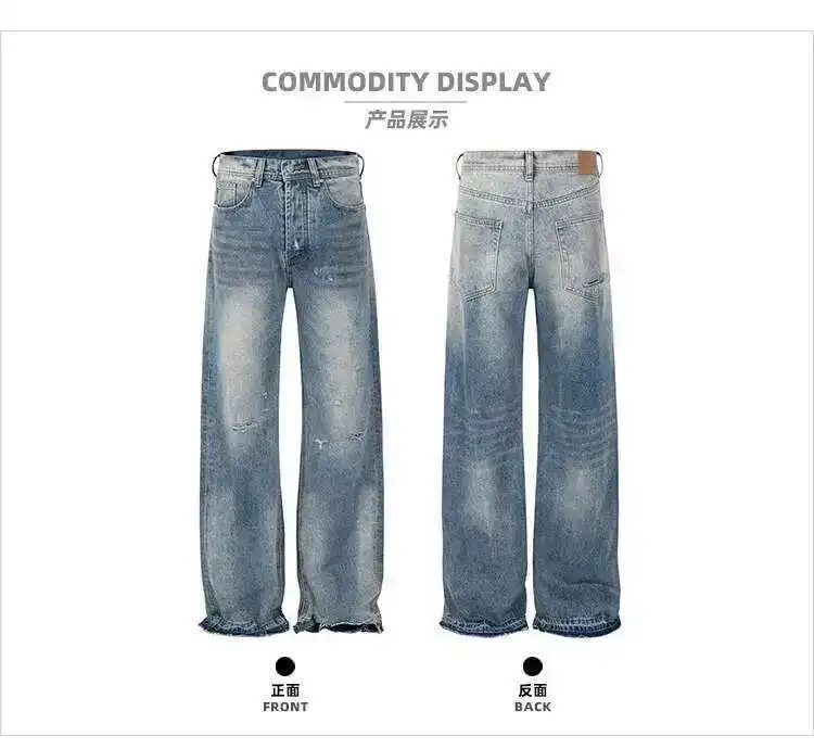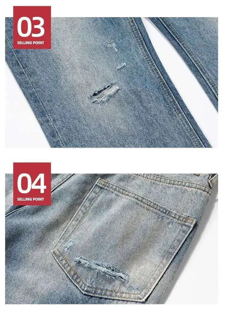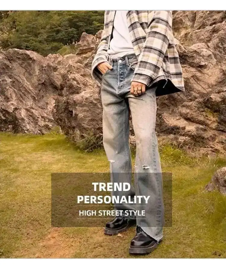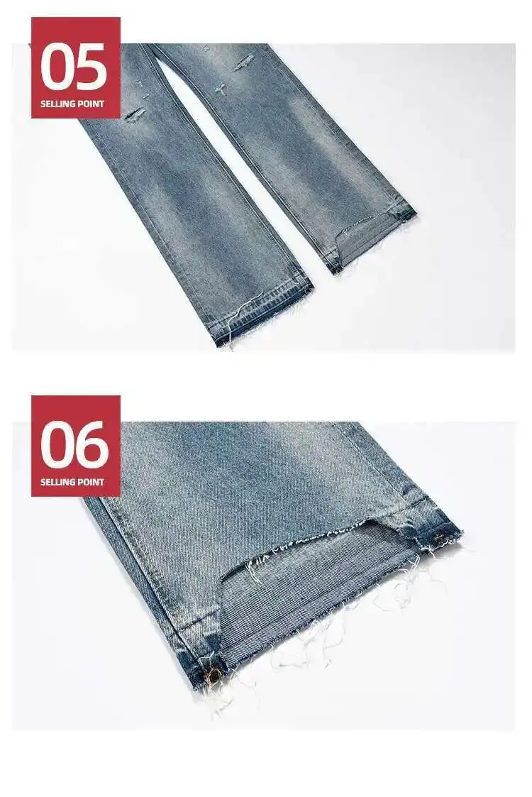 PFNW Men's Trousers Vintage Washed Distressed Pants Unisex Micro Jeans Moustache Effect Destroyed Leg Blue Denim Pants 8W5595