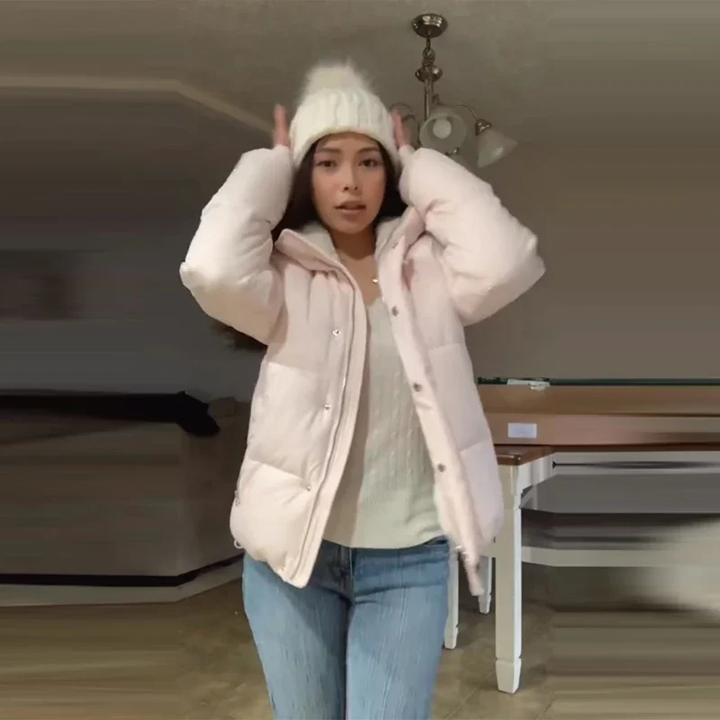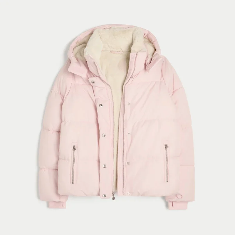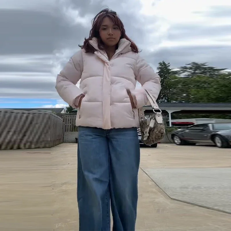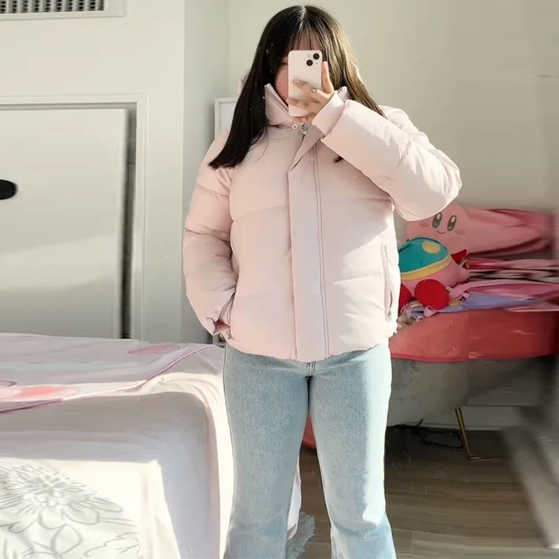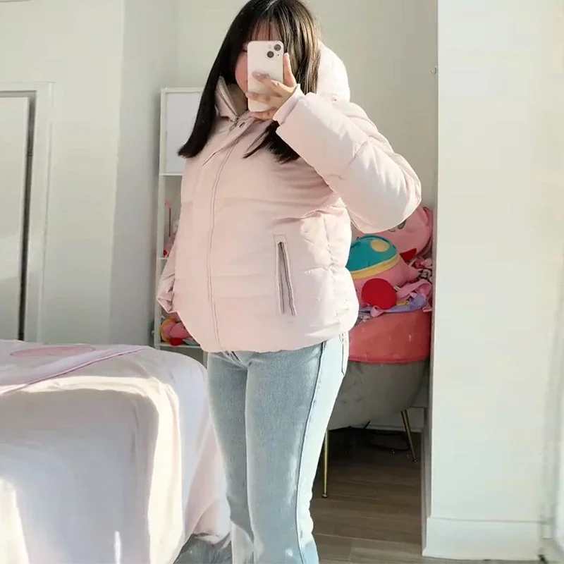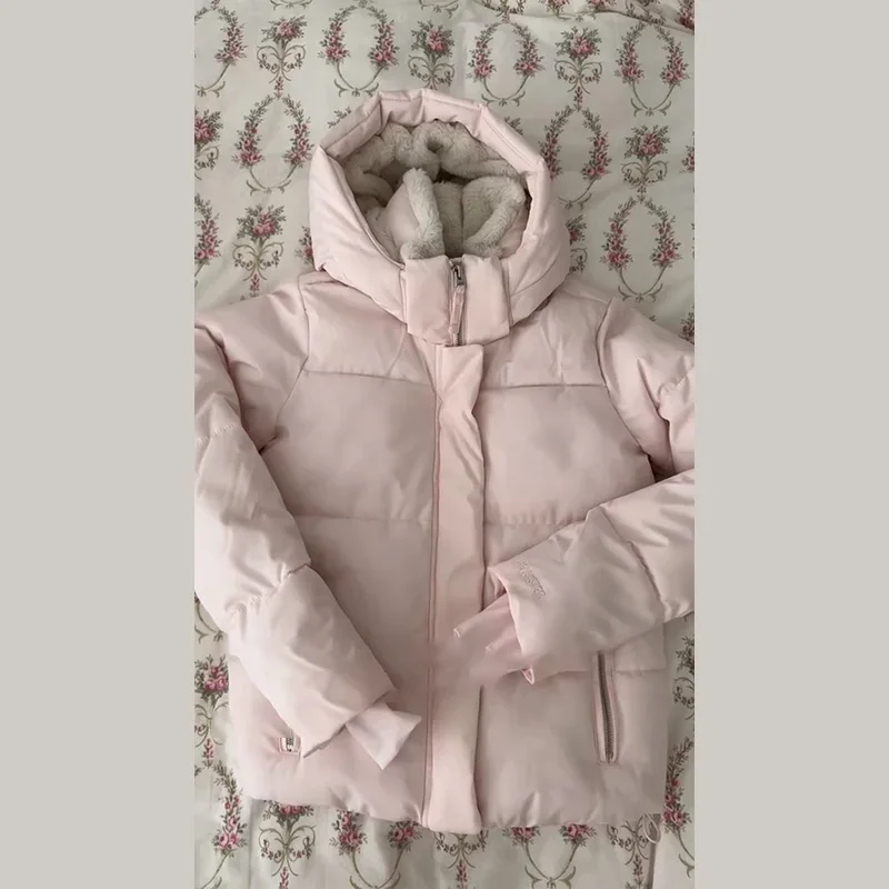 Pink Hooded Women's Jacket Zipper Pockets Inner Faux Fur Warm Solid Female Jackets 2025 Autumn Winter Fashion Lady Outerwears