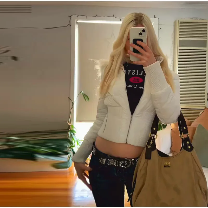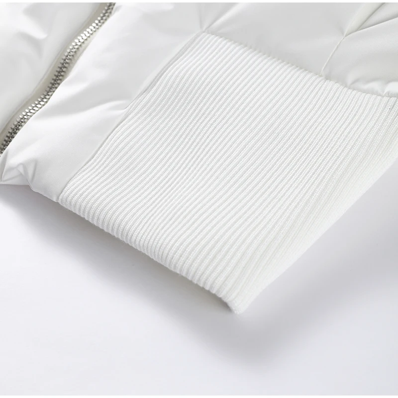 The jacket features a full-opening zipper, offering both style and convenience for various occasions.