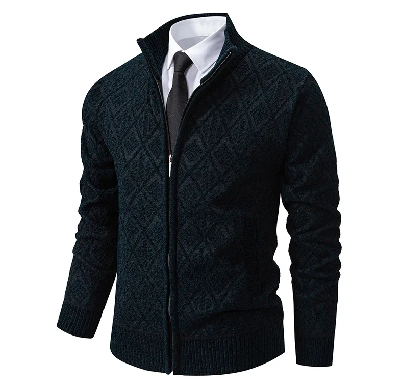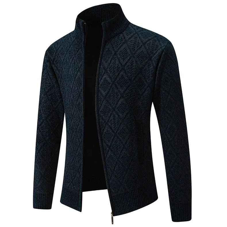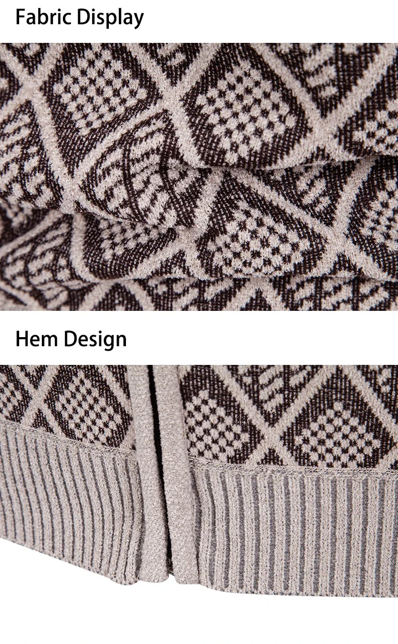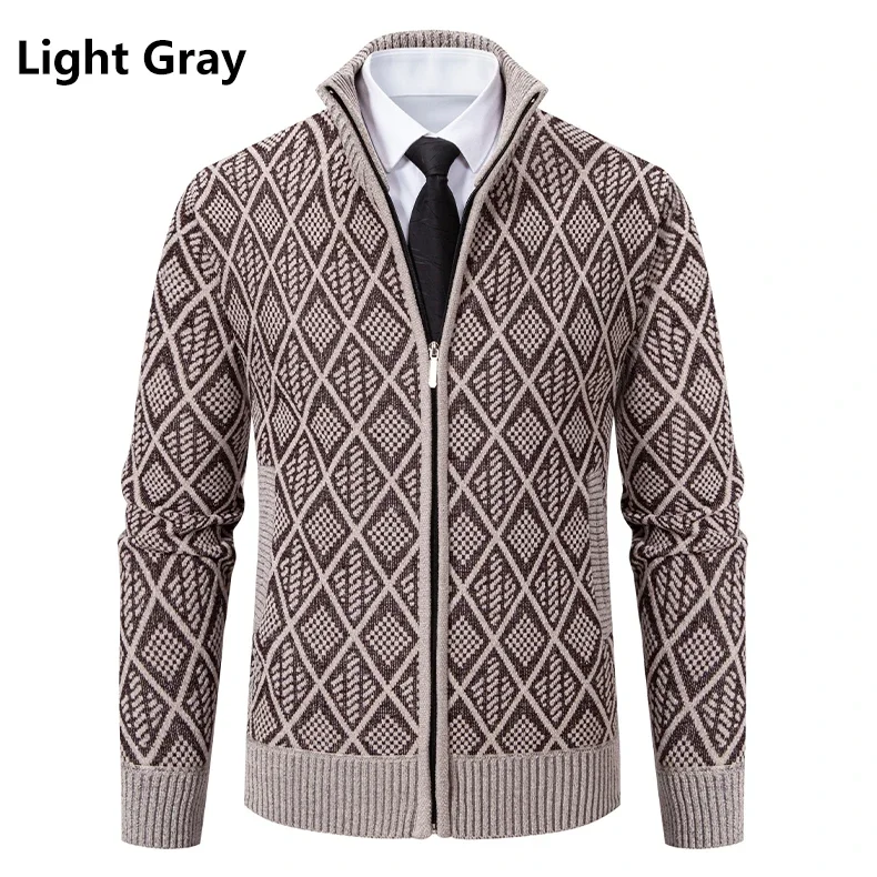 Pop Fashion Sweaters Men Fleece Lined Cardigan Jacket Plaid Retro Sweaters Coat Zipper Up Knit Cardigans Thick Male Outerwear