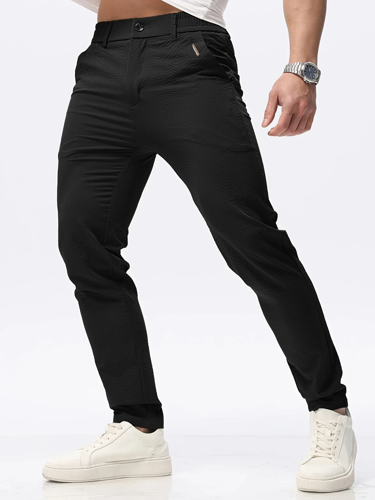 Spring Summer Korean New Male Pants Stretch Solid Black Smart Casual Men's Trousers Office Quick Dry Suit Pants Straight Pants